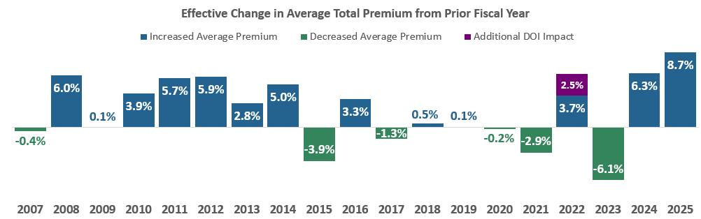 • Pharmacy trends: 7% through FY 2024; reduced by 0.25% each year thereafter.