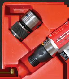 The 2-pc Dead-Blow Heavy Soft-Face Hammer Sets , Nos. CH2DSAAG and CH2DSAAR, from Mac Tools, feature a flat-top design to help stabilize the hammer when standing upright. Each hammer has a solid steel reinforced handle with a textured grip for additional strength and control, and a handle-tohead welded assembly for durability and safety. The set includes a 48 oz. and a 56 oz. dead-blow hammer. The soft face helps to prevent marring. Now available in red and green.