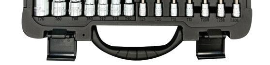 The 23-pc 1/2” Metric Socket Set in Small SFS, No. 302301 , from Sonic Tools , features the Sonic Foam System with each tool ergonomically laid out and securely in place in a chemical-resistant, laser-cut foam inlay. This set comes with a 1/2” 60-toothed quick-release ratchet, a 125mm and 250mm 1/2” extension, a 1/2” universal joint, a 3/8” x 1/2” adapter, and 18-1/2” 6-pt sockets ranging from 8mm to 32mm. The sockets and ratchets are made from chrome vanadium steel and come with Sonic Tools’ lifetime warranty.