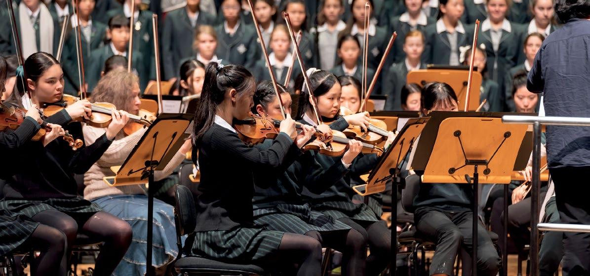After being put on hold for two years, the MLC Spring Concert returned to rapturous applause. Pictured (L-R): Year 11 students Rebekah Lui and Lilly Brett perform as part of the MLC Marching Band.