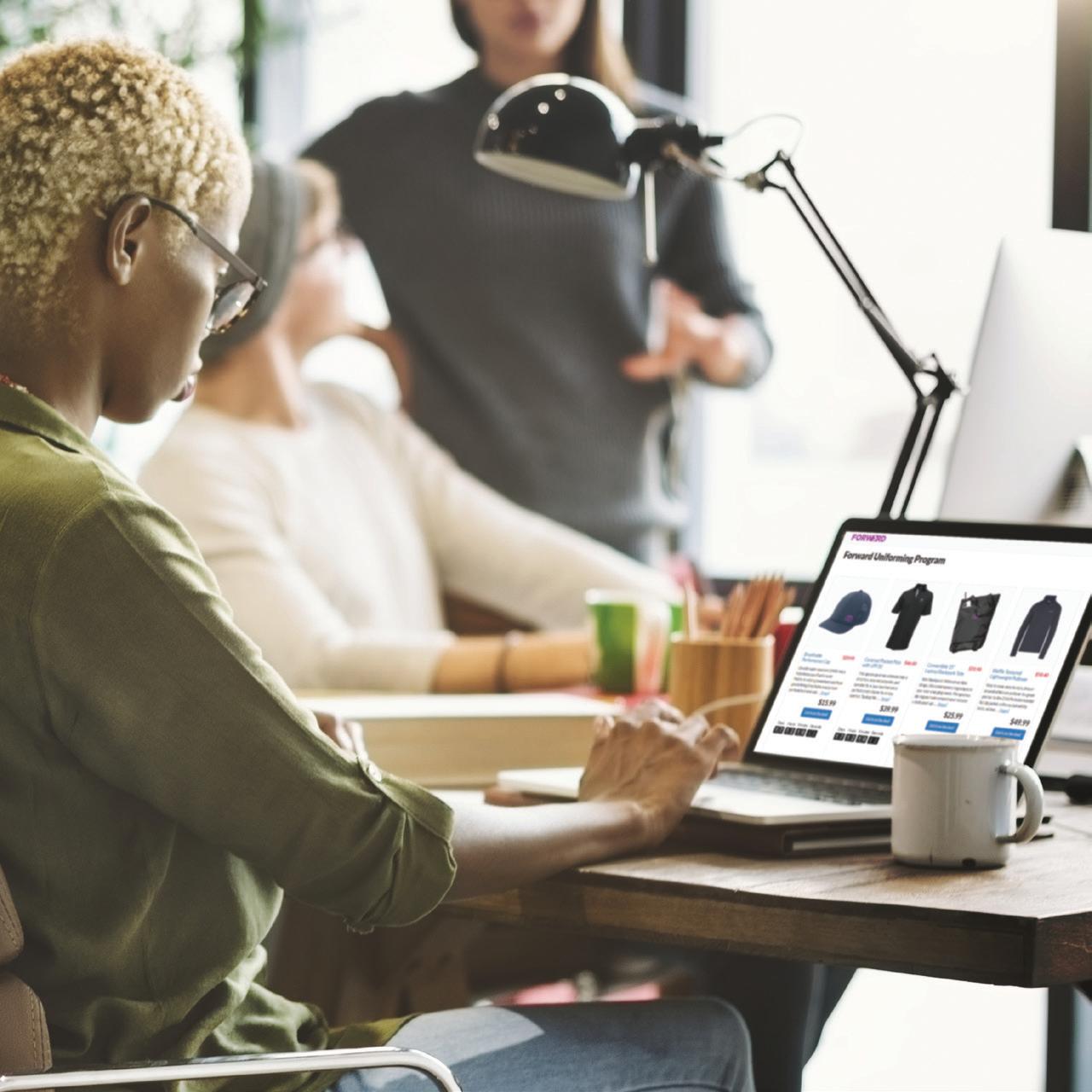 We specialize in three different options for uniforming programs: On Demand, In Stock/ Inventoried, and 100% Custom. With various advantages and unique considerations for each, your Brand Consultant can help walk you through what would be the best fit for your goals and needs.