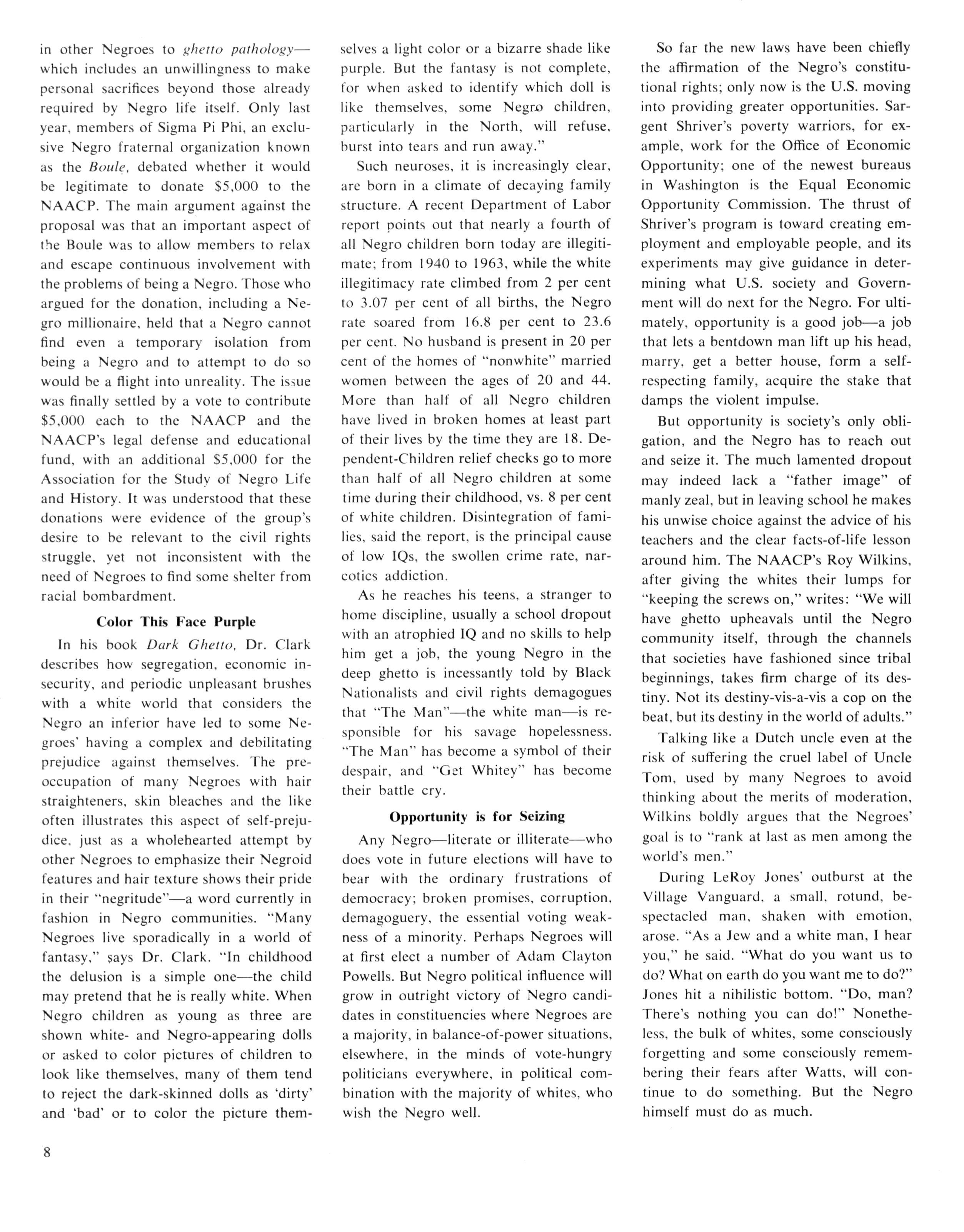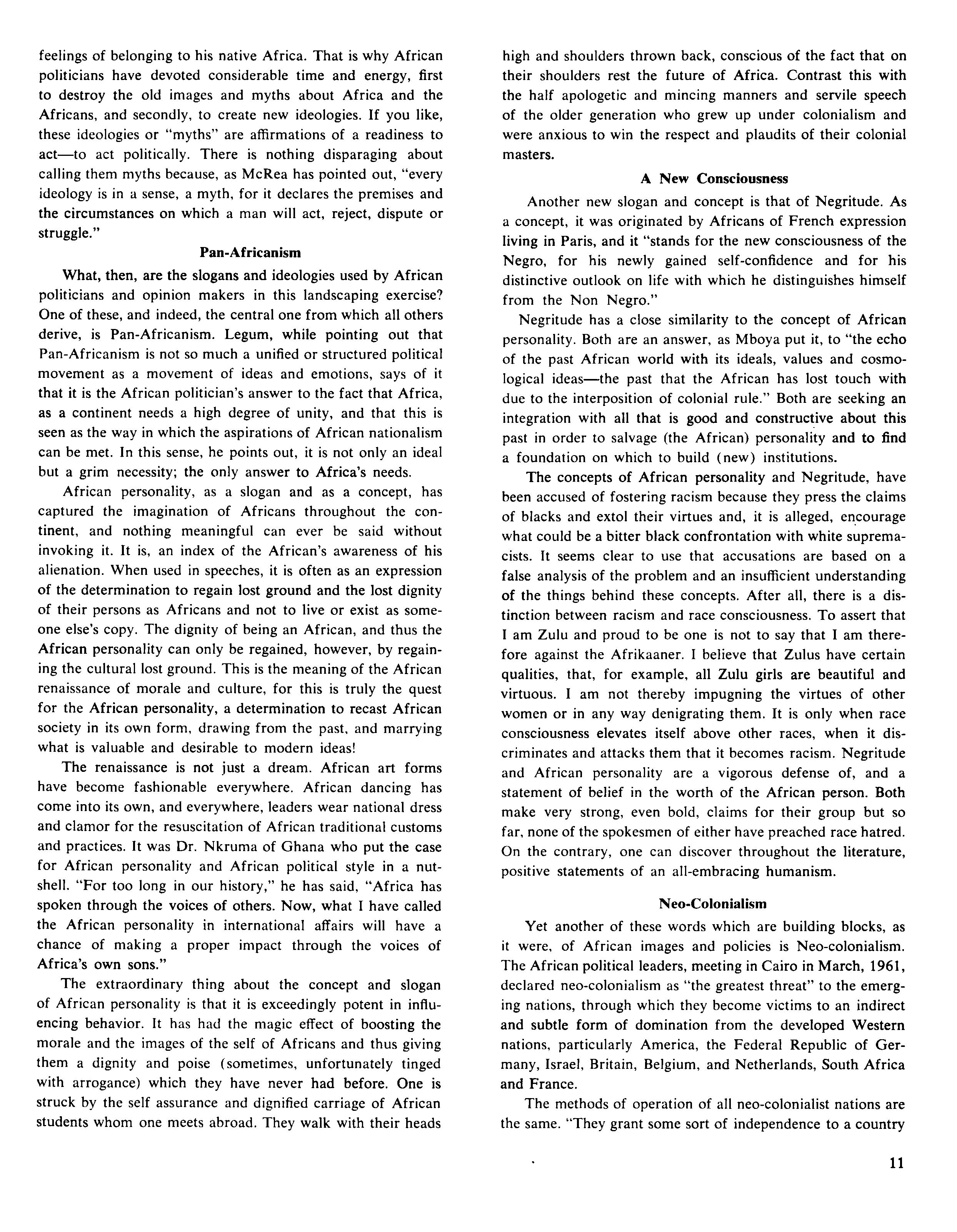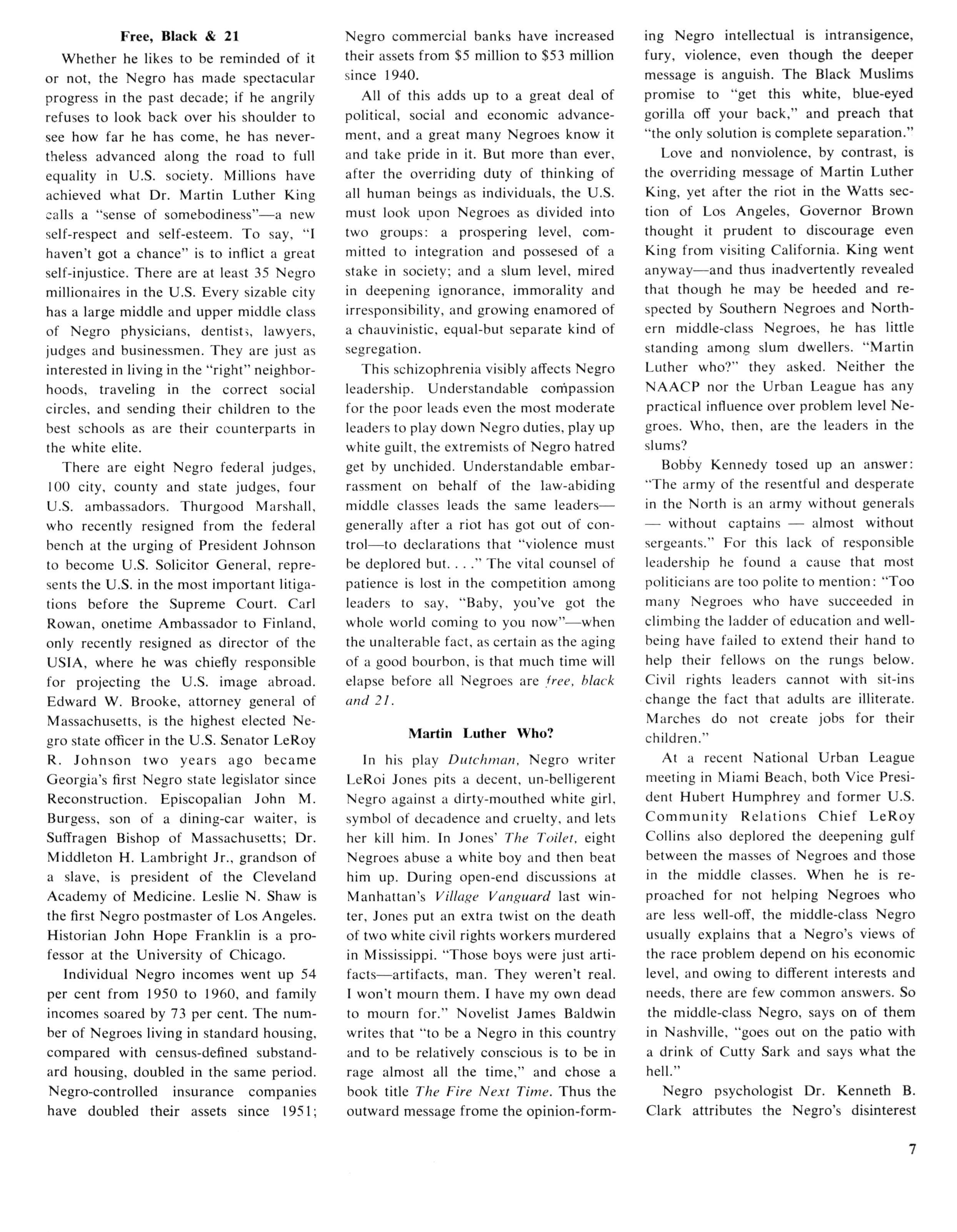 Following Mr Rogers article is a highly articulate editorial on the Negro After Watts — what next? It is reprinted from the September issue of the Voice of Missions, a publication of the AME Church, to which we offer our thanks Africa is very much in the news today Perhaps there is an understanding of the situation in the Republic of South Africa or Rhodesia; but how many actually understand the thinking of the African when he speaks of neo-colonialism or imperialism or Negritude? Dr. Absalom L. Vilakazi, author of The Voices of Africa and Its Message, is professor of African Studies at American University School of International Service, Washington, D.C His article is condensed from a speech he delivered in October at the Sixth World Order Study Conference of the National Council of Churches, at St. Louis, Mo.