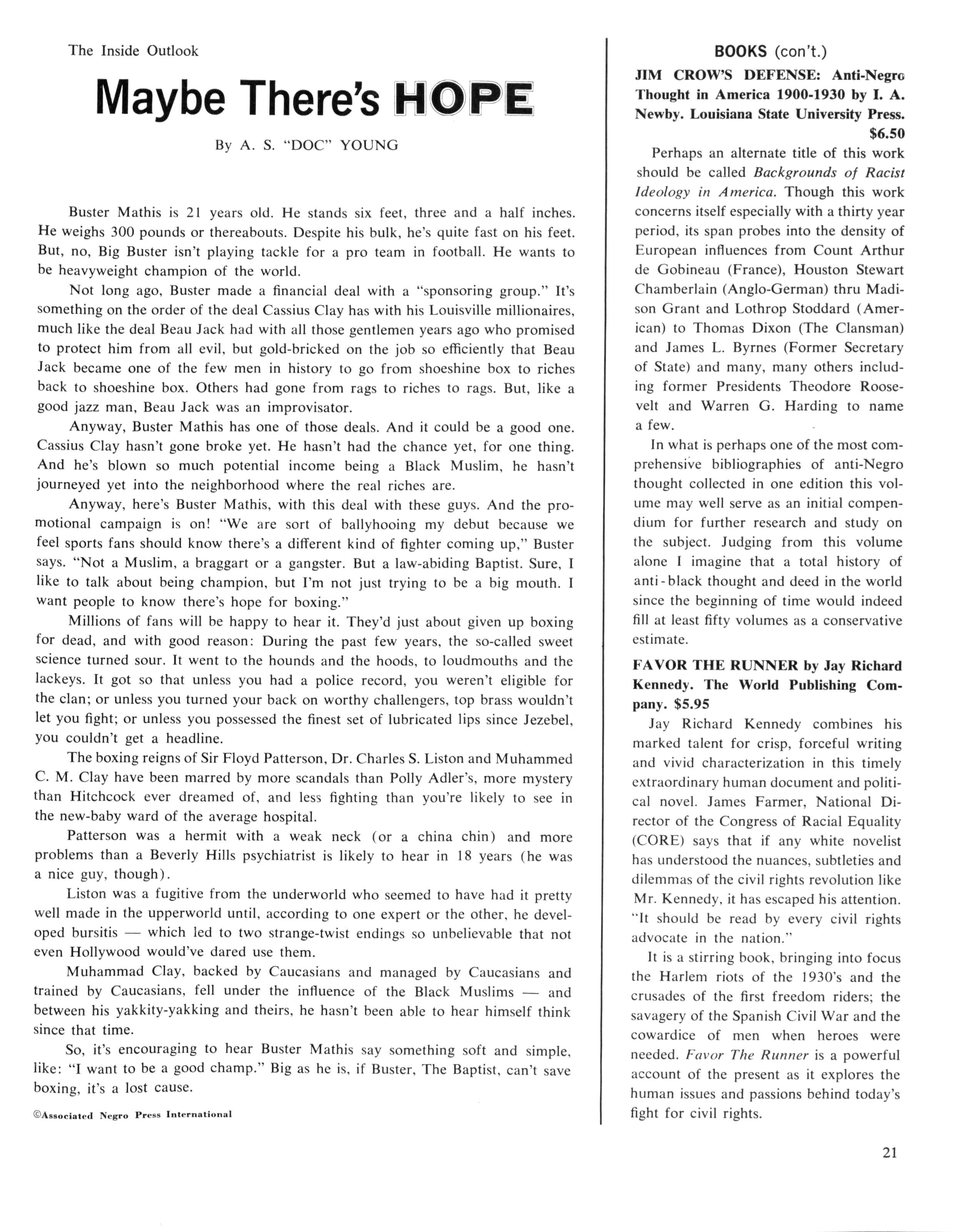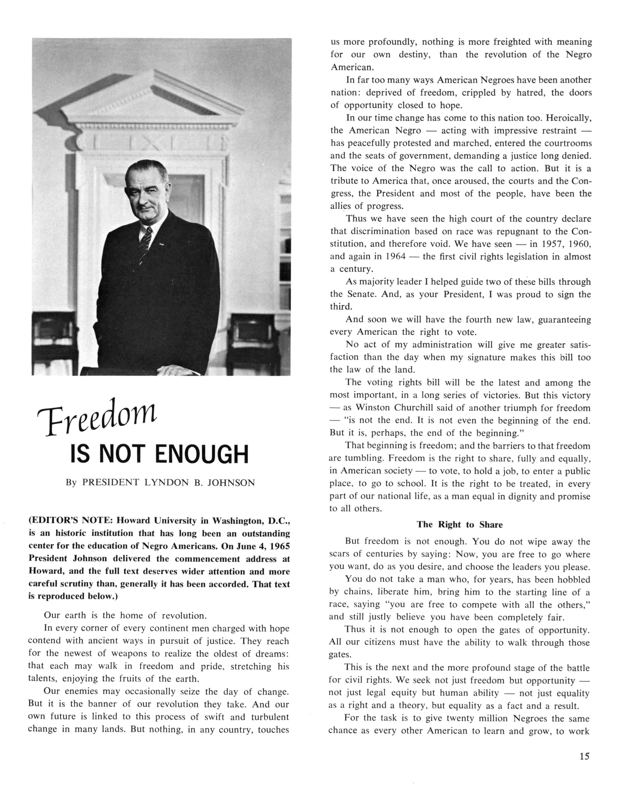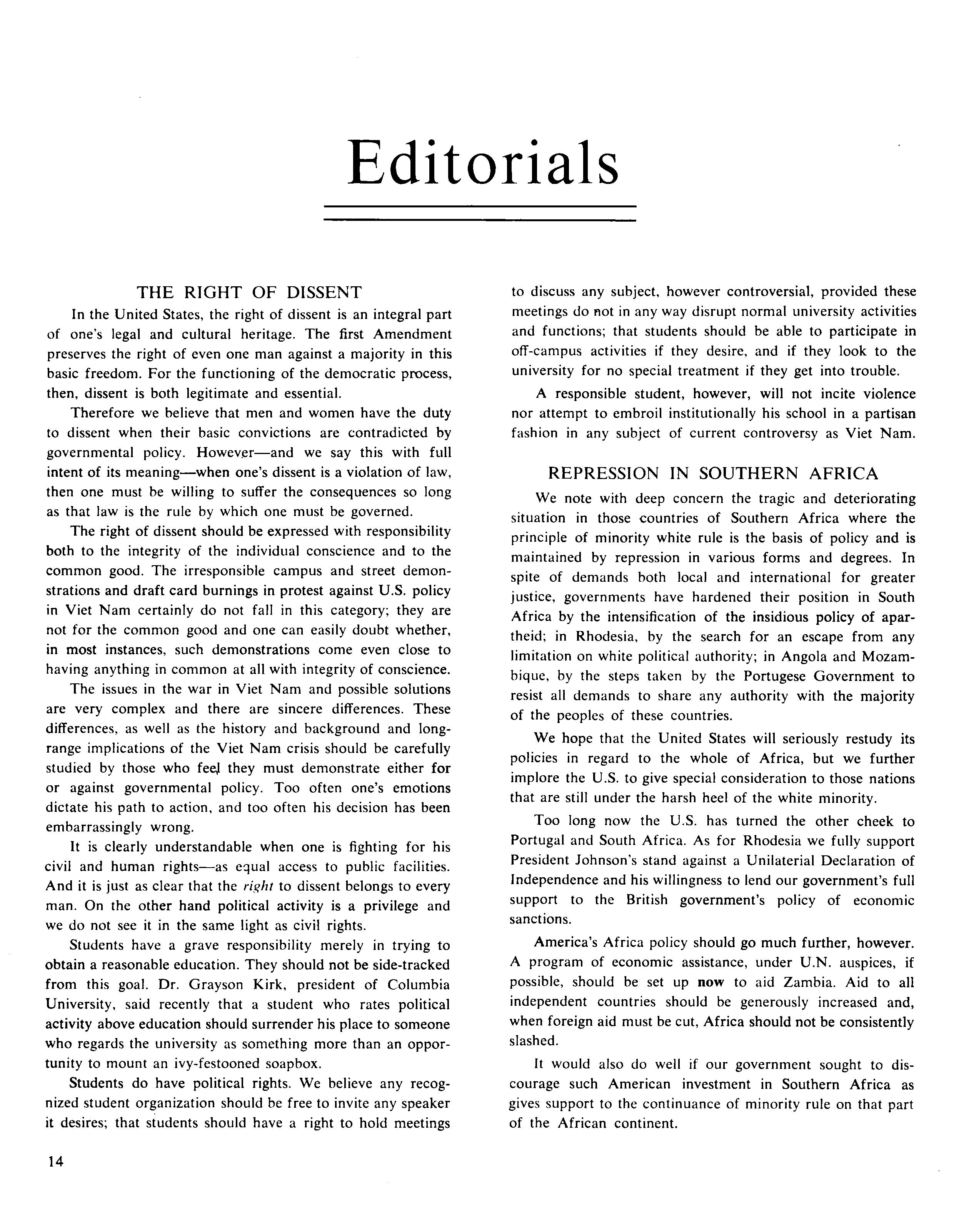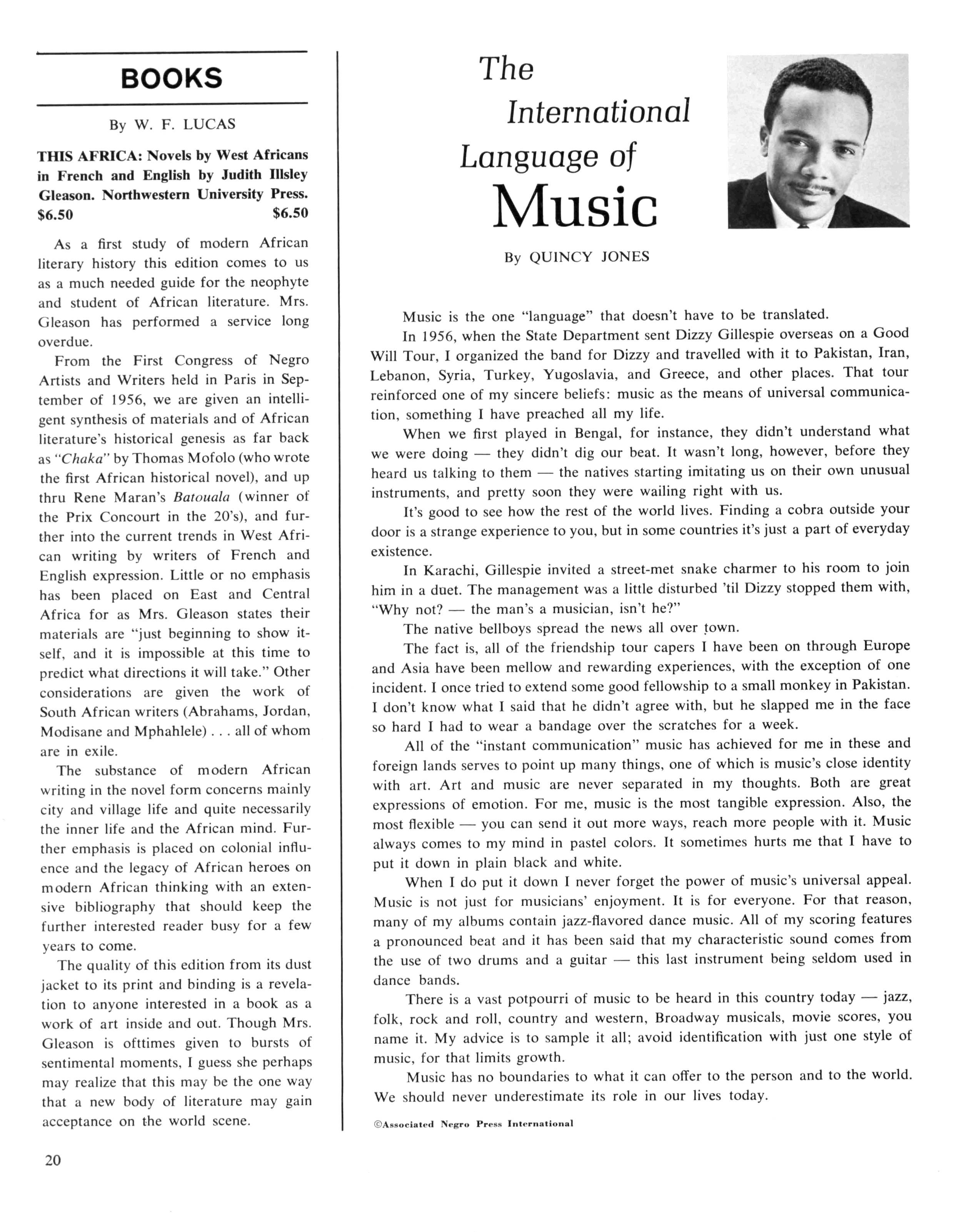 Following Mr Rogers article is a highly articulate editorial on the Negro After Watts — what next? It is reprinted from the September issue of the Voice of Missions, a publication of the AME Church, to which we offer our thanks Africa is very much in the news today Perhaps there is an understanding of the situation in the Republic of South Africa or Rhodesia; but how many actually understand the thinking of the African when he speaks of neo-colonialism or imperialism or Negritude? Dr. Absalom L. Vilakazi, author of The Voices of Africa and Its Message, is professor of African Studies at American University School of International Service, Washington, D.C His article is condensed from a speech he delivered in October at the Sixth World Order Study Conference of the National Council of Churches, at St. Louis, Mo.