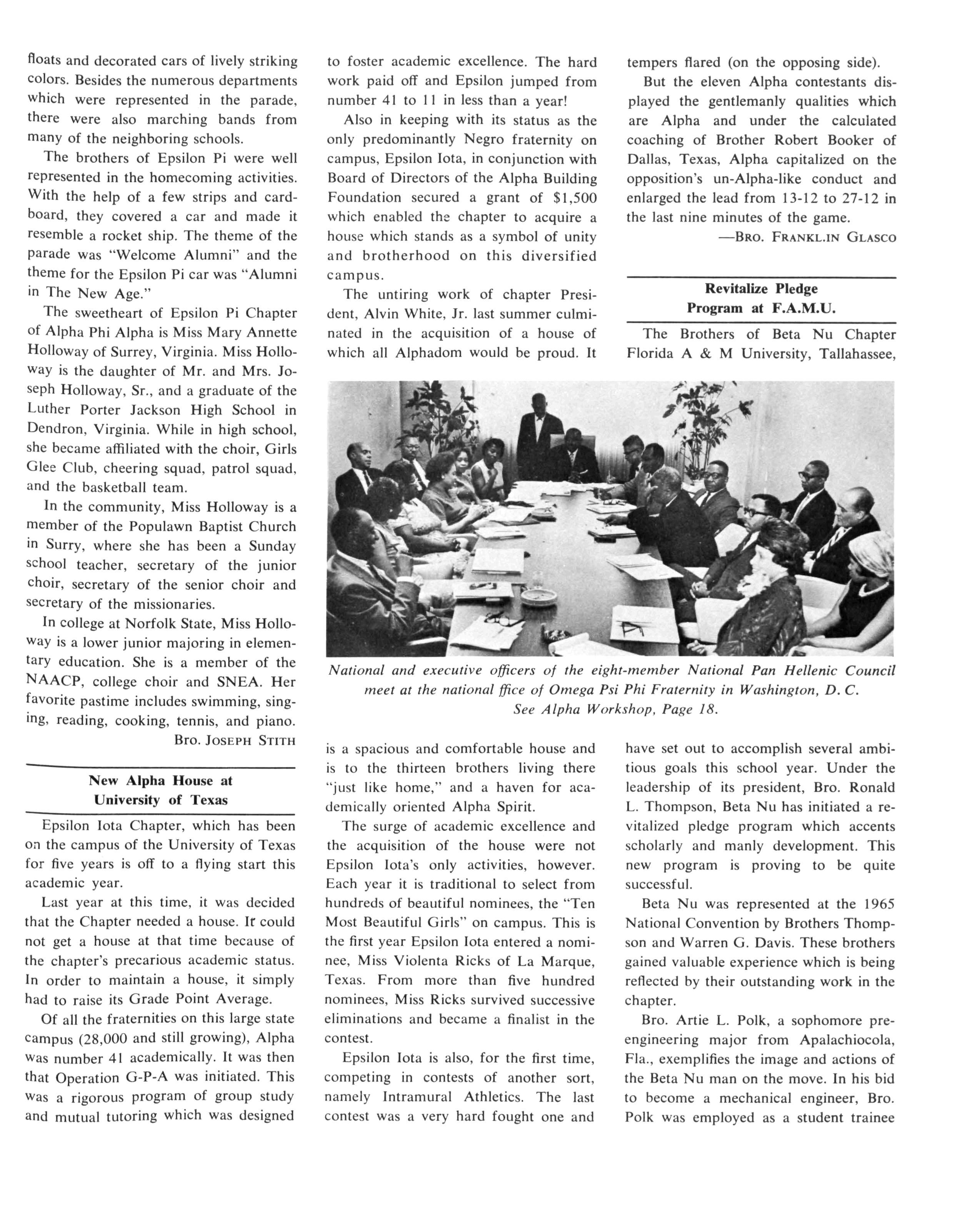 Beta Nu was represented at the 1965 National Convention by Brothers Thompson and Warren G Davis These brothers gained valuable experience which is being reflected by their outstanding work in the chapter