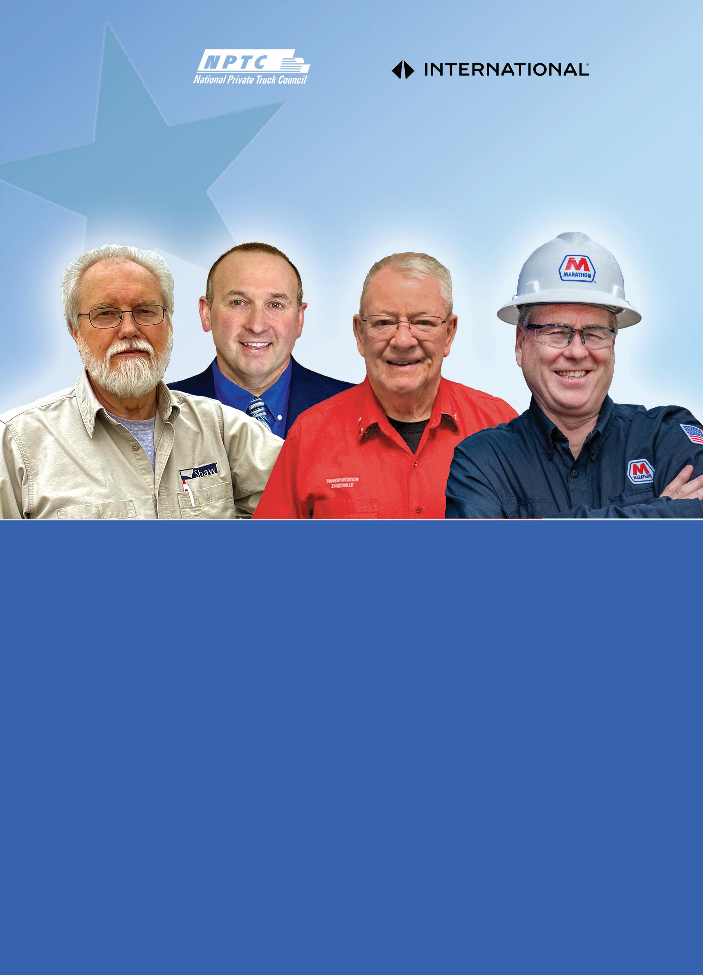 THE NATIONAL PRIVATE Truck Council has inducted four top private fleet truck drivers into its Driver Hall of Fame each year since 1987. At May’s NPTC annual conference, James “JD” Chasteen, Shaw Industries Group, Dalton, Georgia; Scott “Scottie” Edwards, Primo Brands Corp., Portland, Maine; Kenny White, AutoZone, Zanesville, Ohio; and Donald “Todd” Young, Marathon Petroleum Co., Columbus, Ohio, were honored as the “best of the best” truck drivers in the industry.