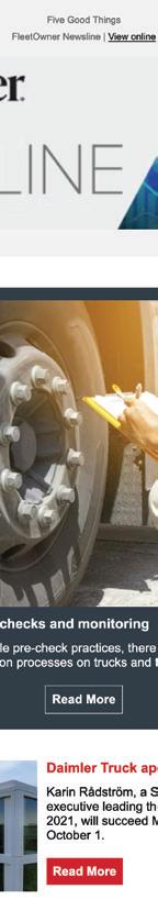 Delivered to your inbox, FleetOwner newsletters provide regular industry news and event updates, and breaking news alerts. Manage your email subscriptions at FleetOwner.com/subscribe.