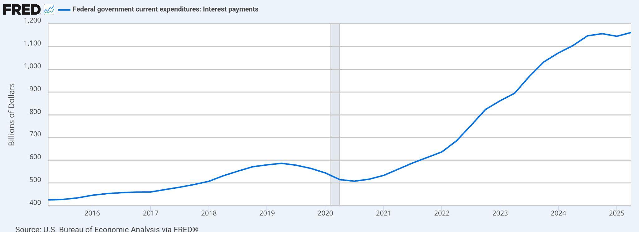 圖十五:美國聯邦政府利息支出 ——累積債務負擔