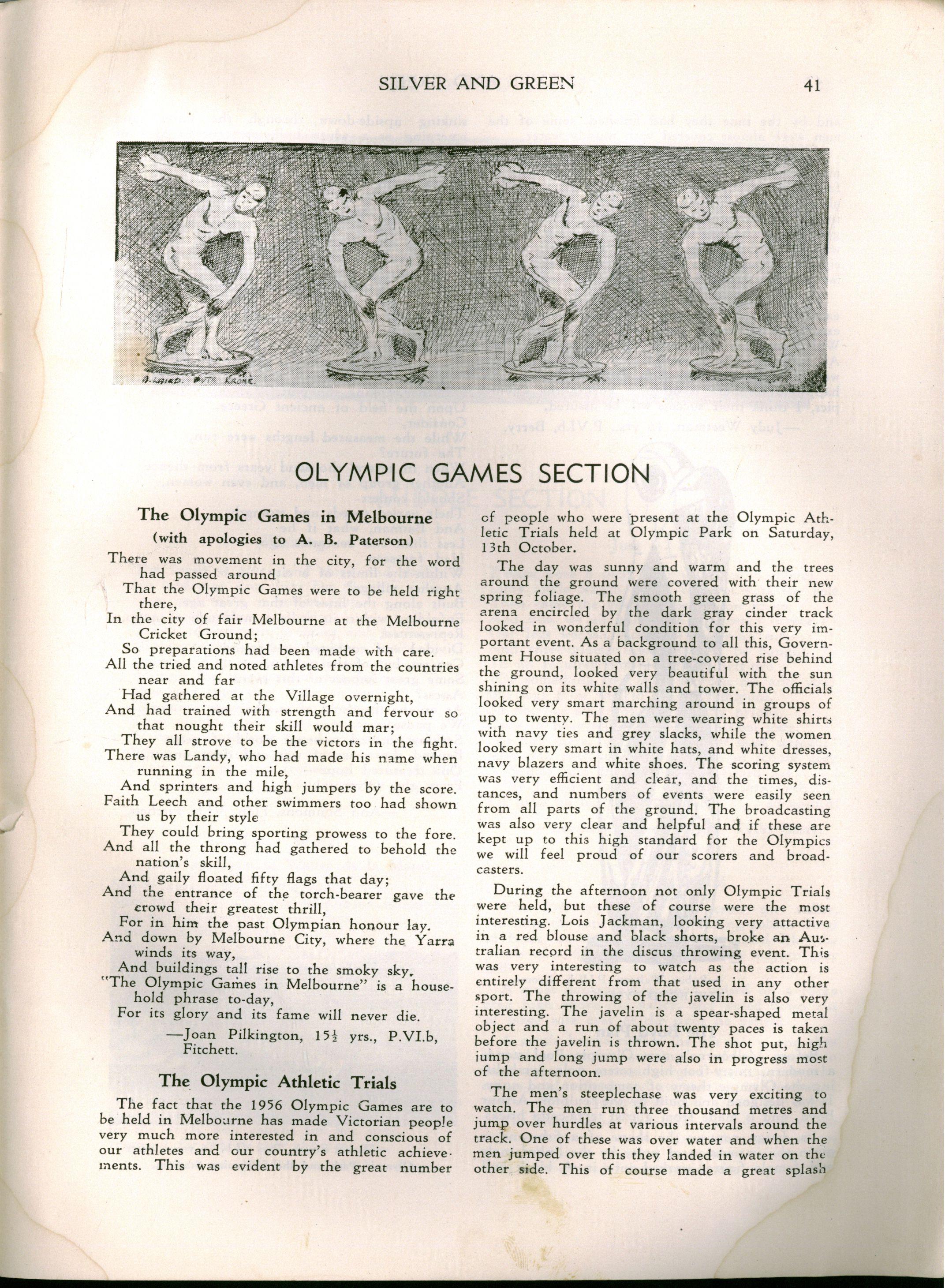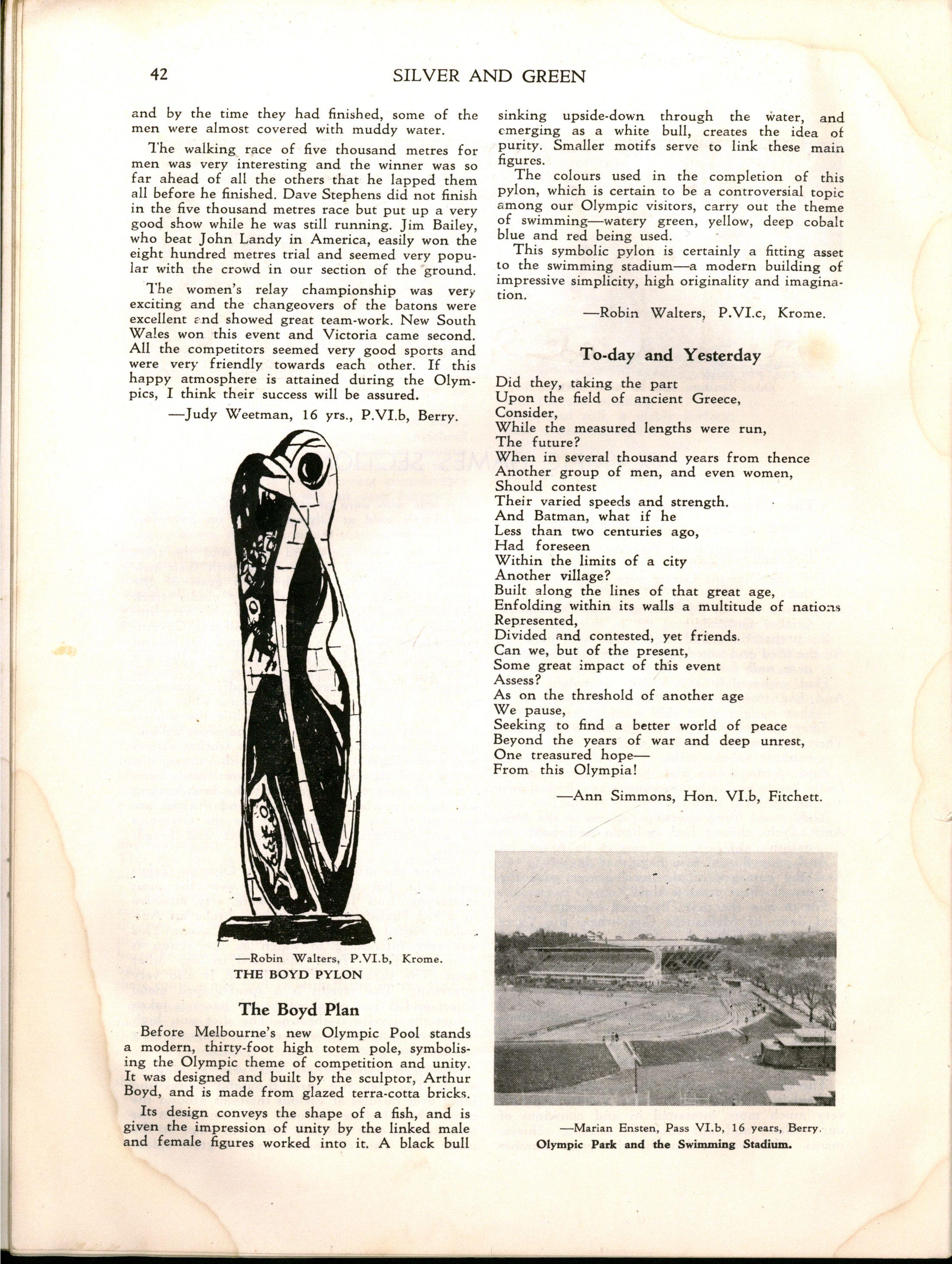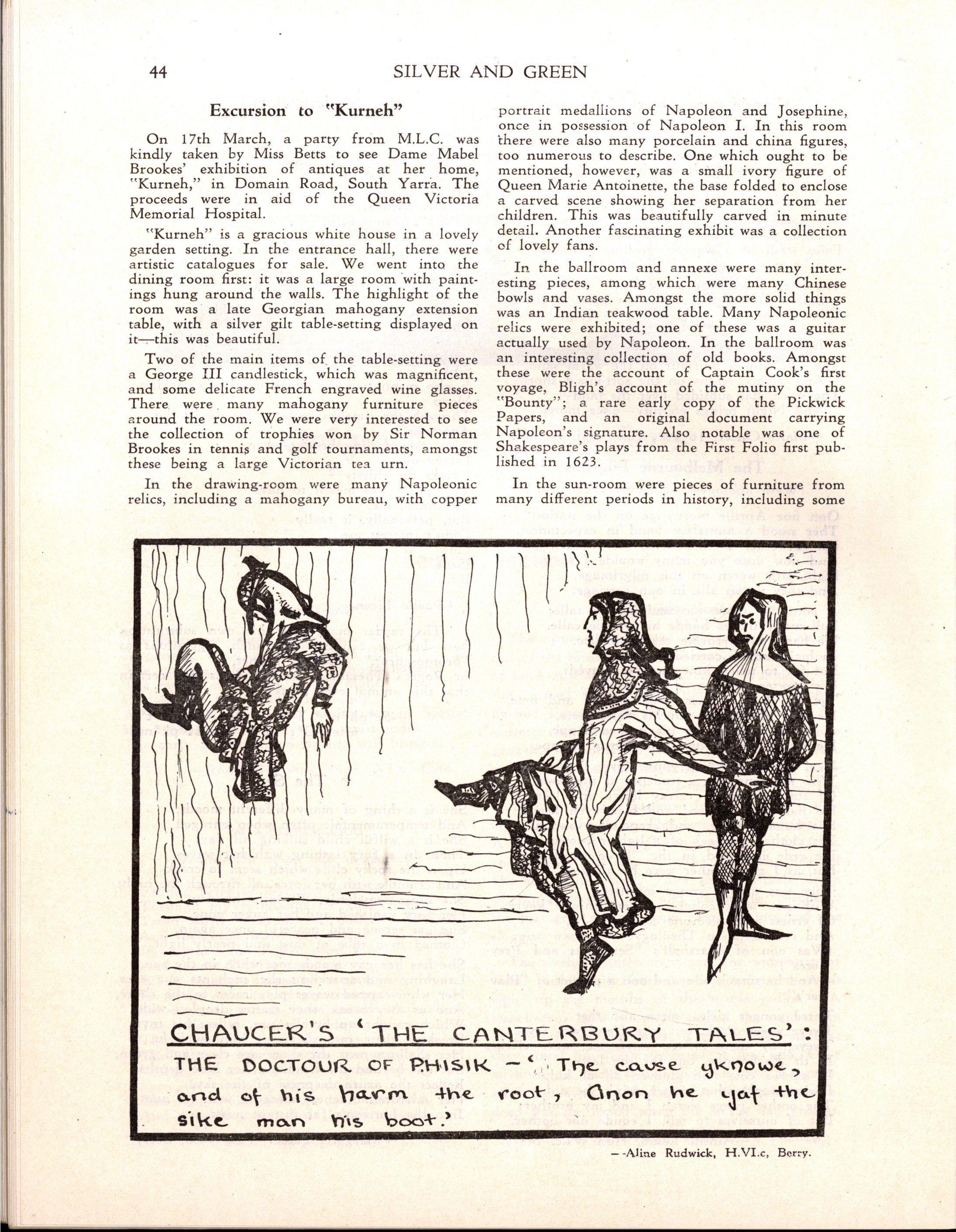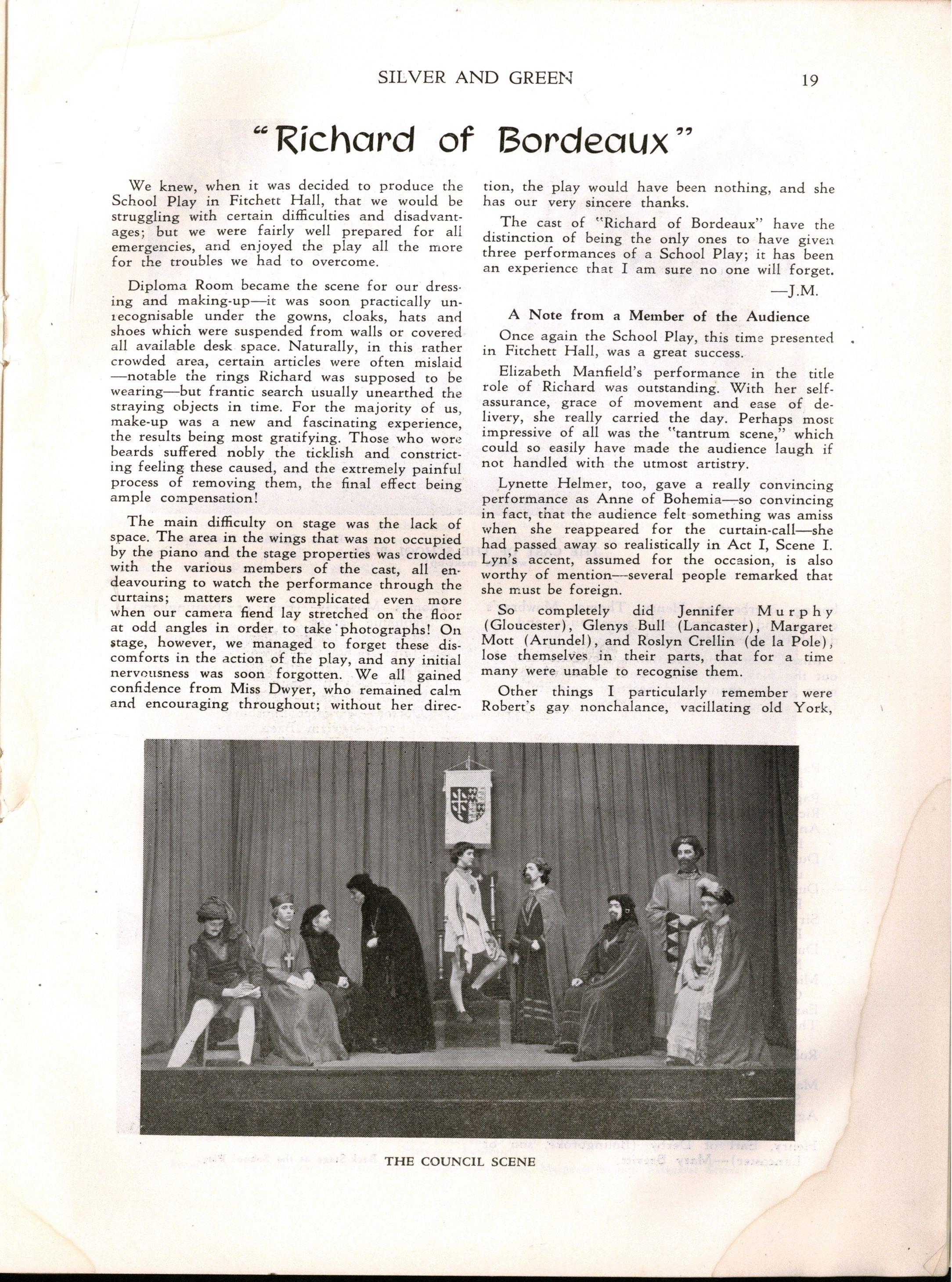 However, despite the necessity for curtailing the programme Speech Day was a great success Mrs H E Bolte, the wife of the Premier of Victoria, and an Old Collegian, presented the prizes and later entertained us with some delightful reminiscences of her schooldays at M.L.C