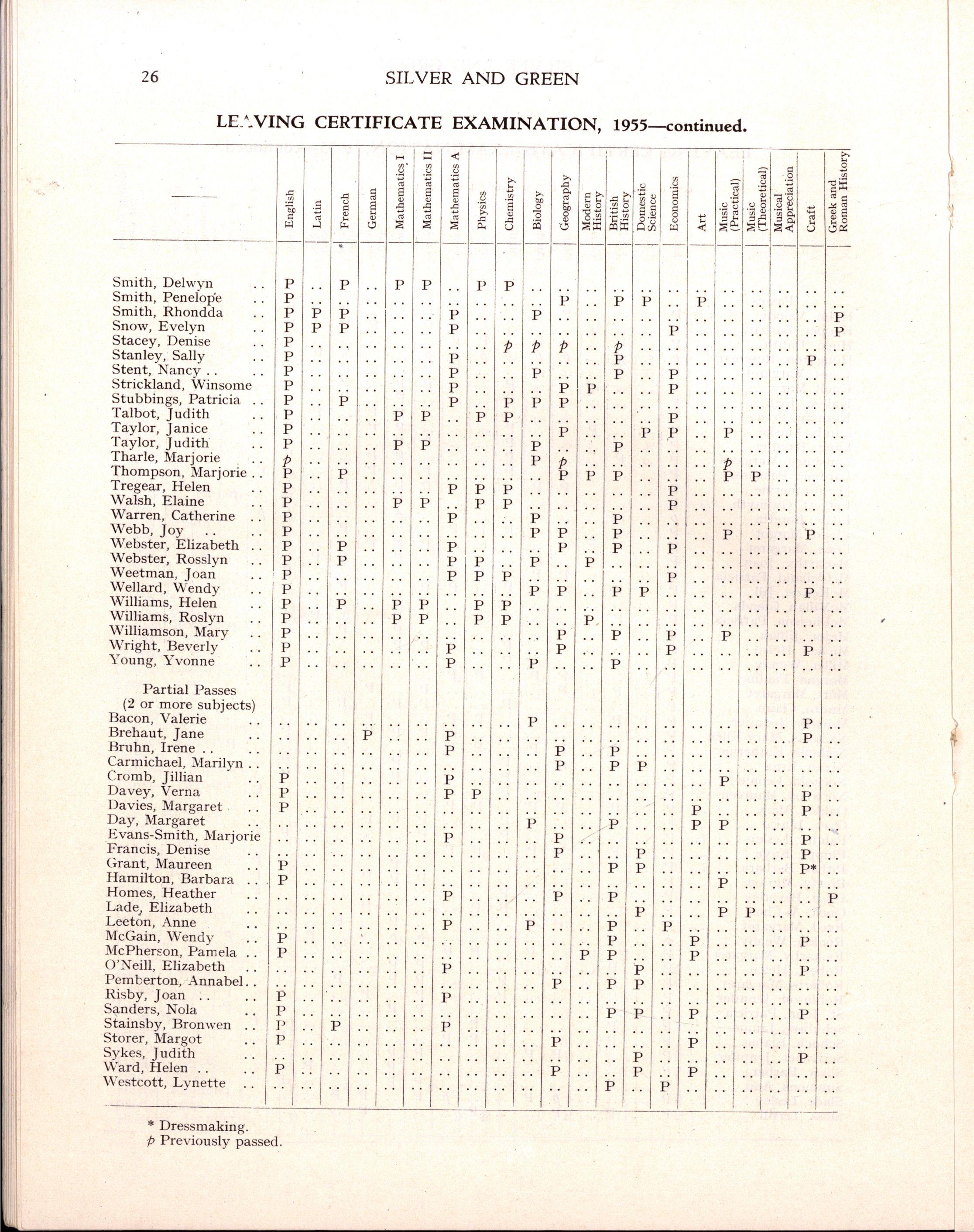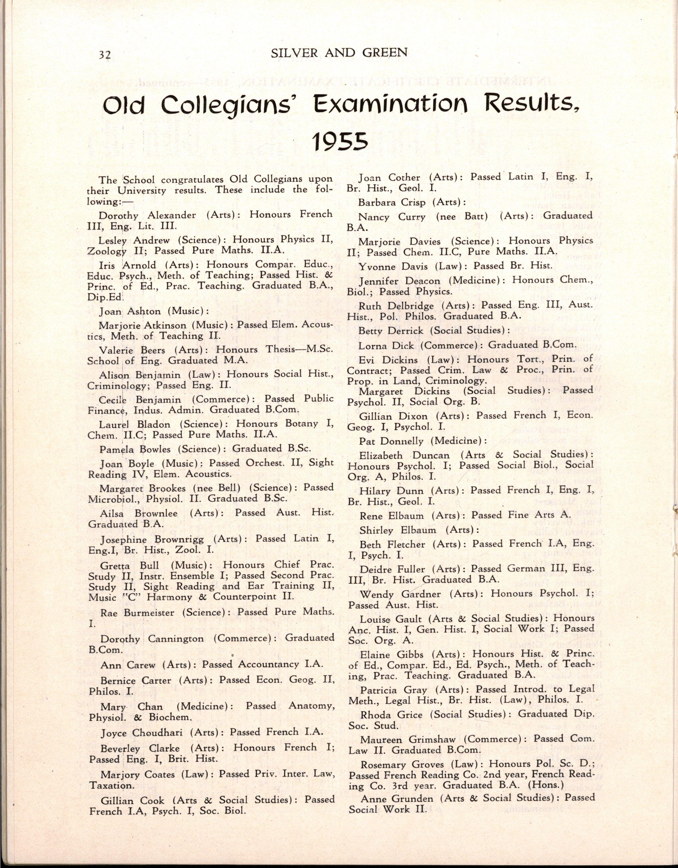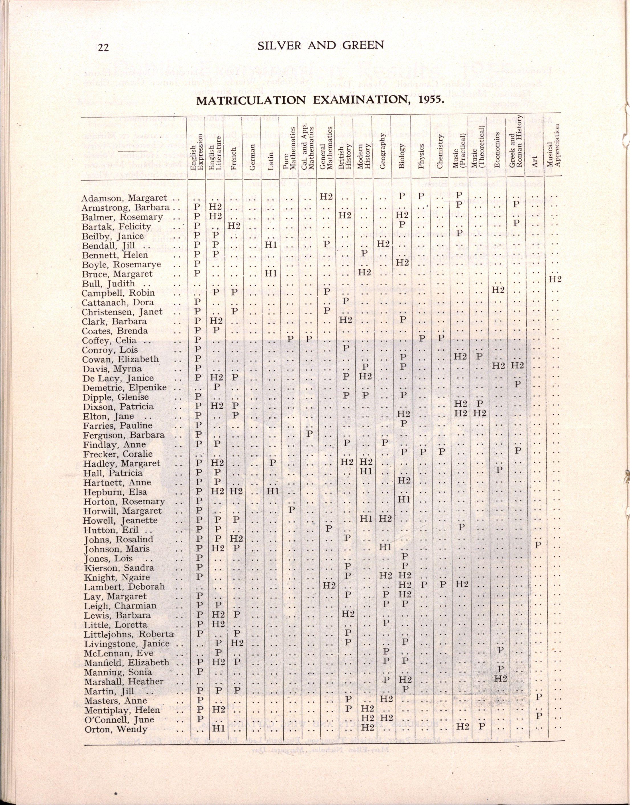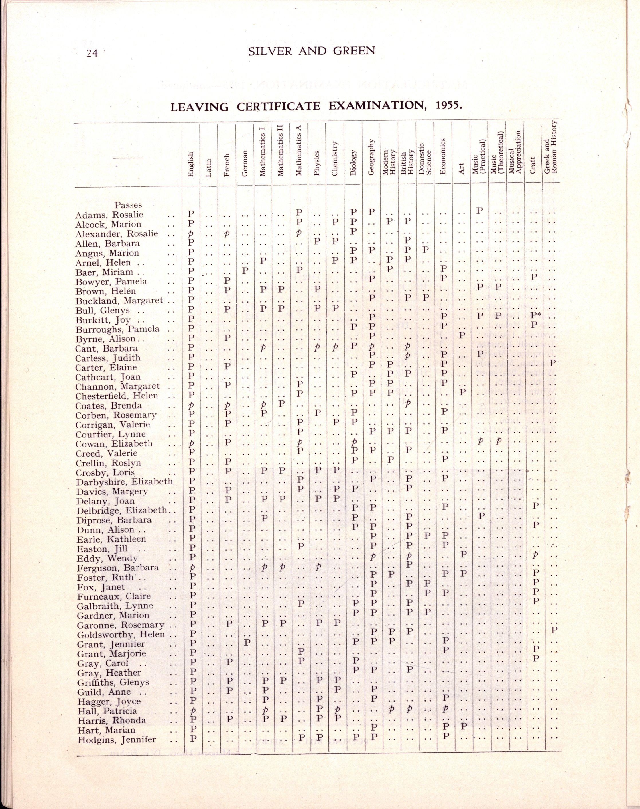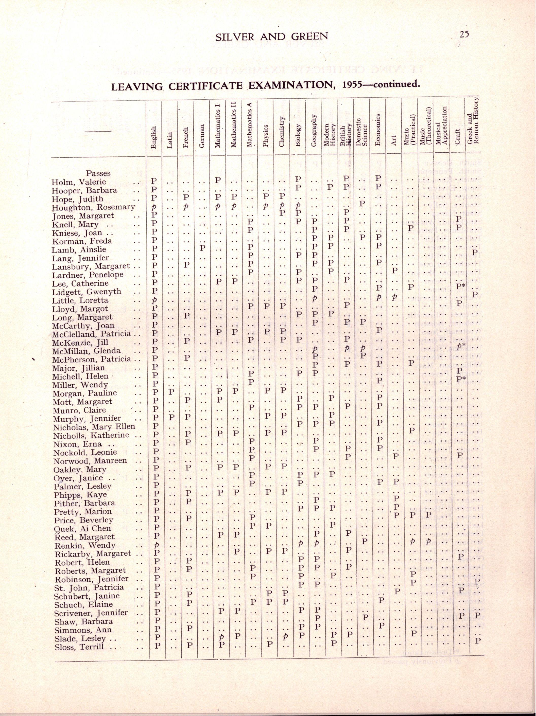 The following girls in Hon VI, Pass VI and Diploma Forms left at the end of 1955:—