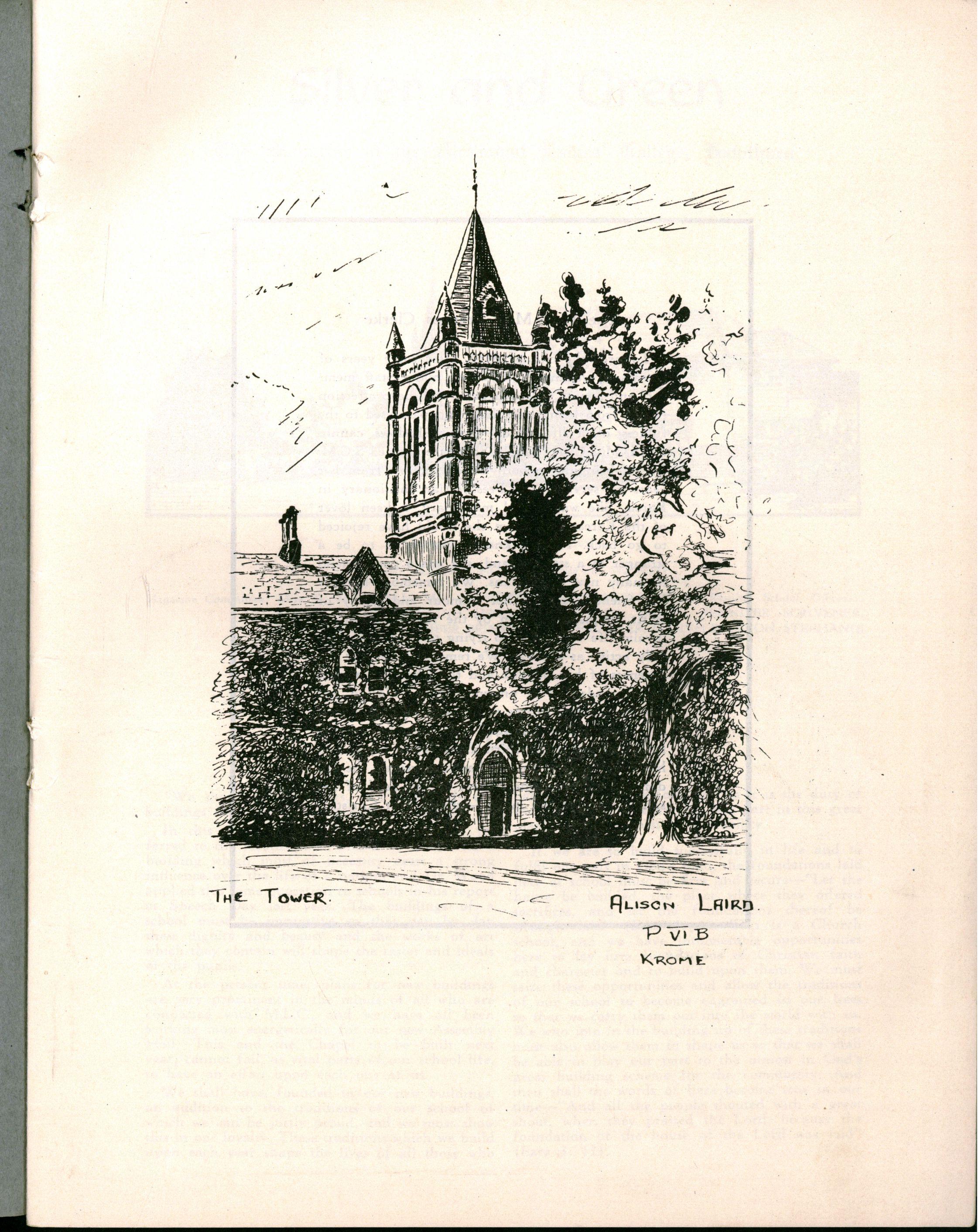 If we are to build successfully in life and to fulfil our part in God's plan, the foundations laid here at school must be firm and secure—"Let the house be builded, the place where they offered sacrifices, and let the foundations thereof be strongly laid" (Ezra 6: 3) This is a Church school, and we have innumerable opportunities here to lay firm foundations of Christian faith and character and to build upon them. W e must seize these opportunities and allow the traditions of our school to become engrained in our lives so that we carry them out into the world with us. W e who join in the building up of these traditions must also allow them to shape us so that we shall be able to play our part to the utmost in God's great building scheme for the community And then shall the words of Ezra become true in our t i me —"An d all the people shouted with a great shout, when they praised the Lord, because the foundation of the house of the Lord was laid" (Ezra 3: 11)