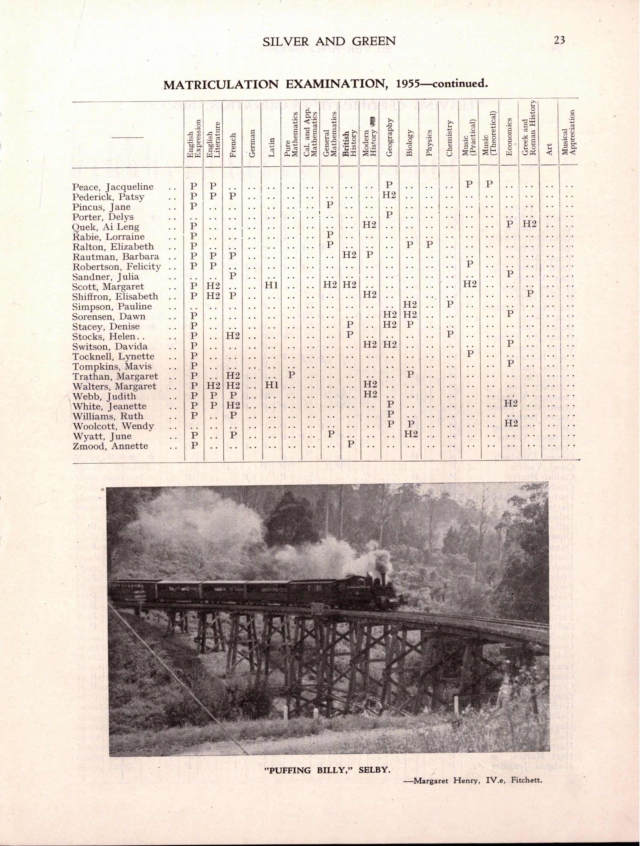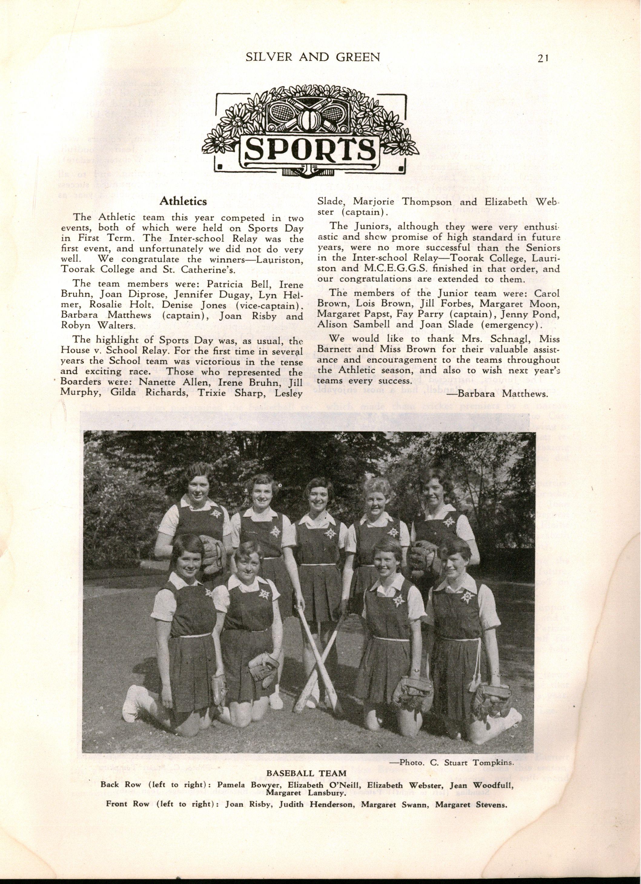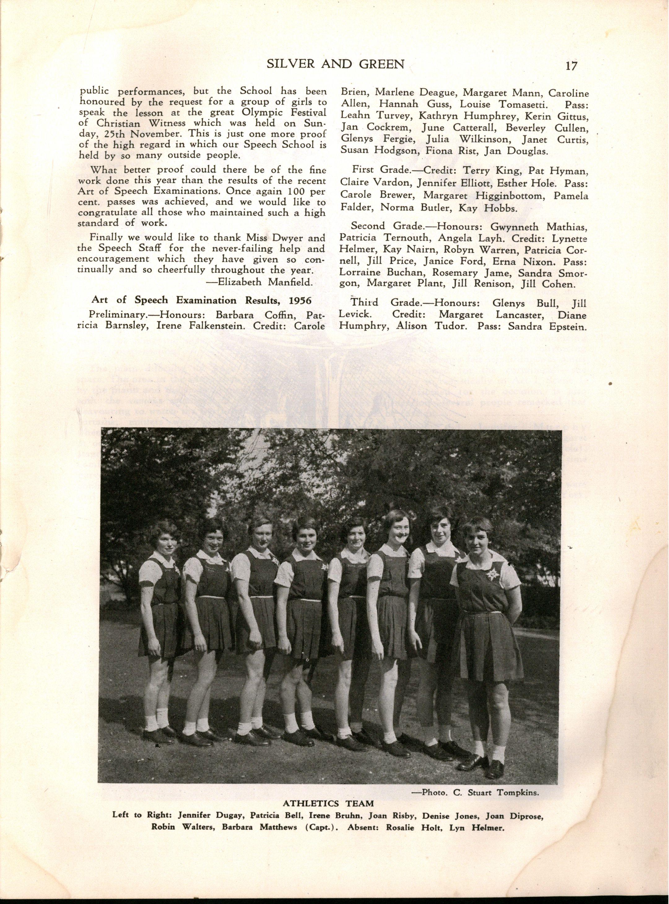 Pass Vl.d : Margaret Buckland, Marilyn Carmichael, Lynne Courtier, Kathleen Earle, Barbara Fenton, Ruth Foster, Claire Furneaux, Maureen Grant, Marian Hart, Freda Korman, Margot Lloyd, Wendy Miller, Joan McCarthy, Beverley Price, Penelope Smith, Barbara Shaw, Patricia St John, Janice Taylor, Helen Ward, Catherine Warren, Lynette Westcott, Joyce Williams