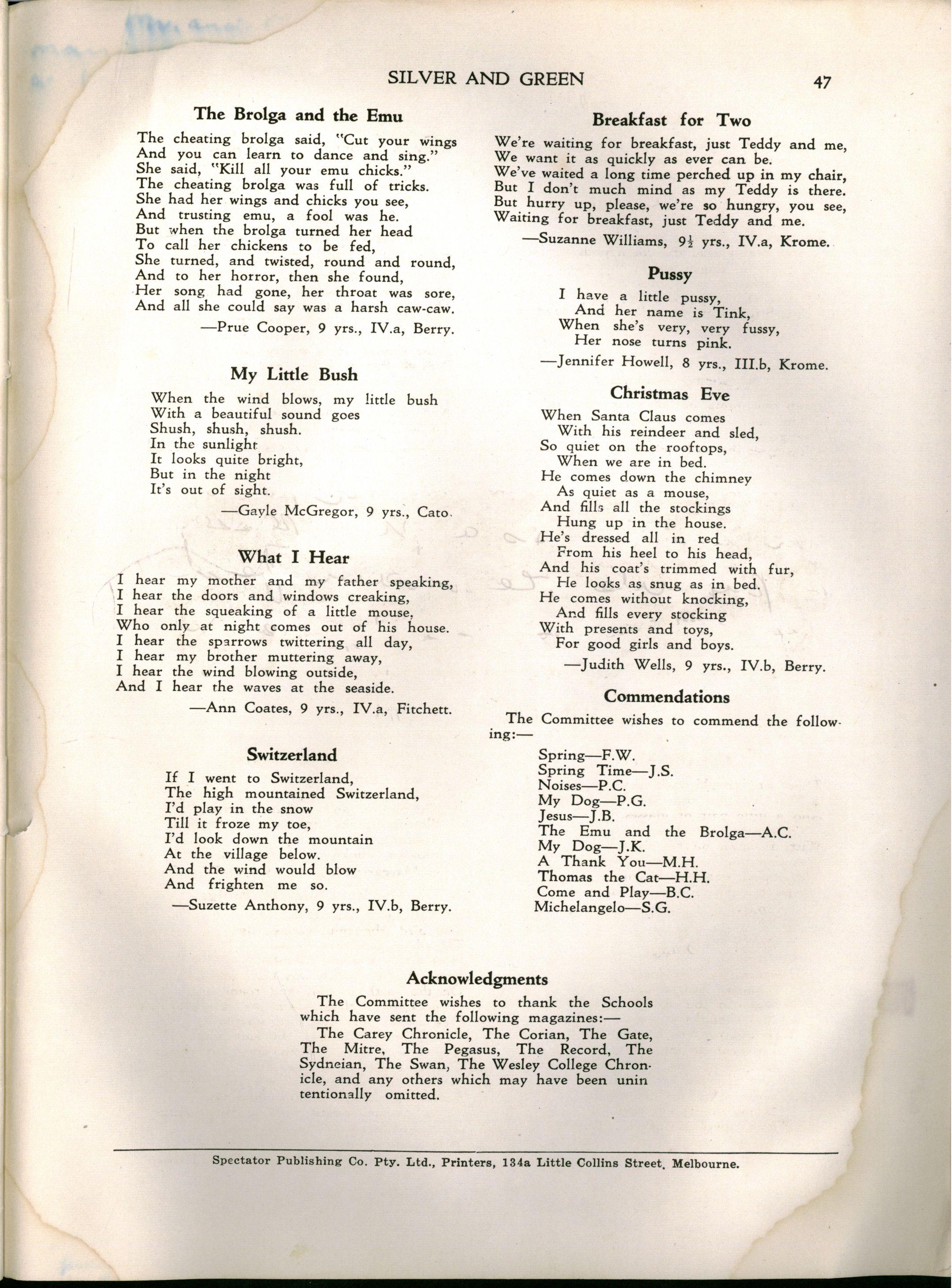 Th e Committee wishes to thank the Schools which have sent the following magazines:— The Carey Chronicle, Th e Corian, Th e Gate, Th e Mitre, Th e Pegasus, Th e Record, Th e Sydneian, Th e Swan, Th e Wesley College Chronicle, and any others which may have been unin tentionally omitted