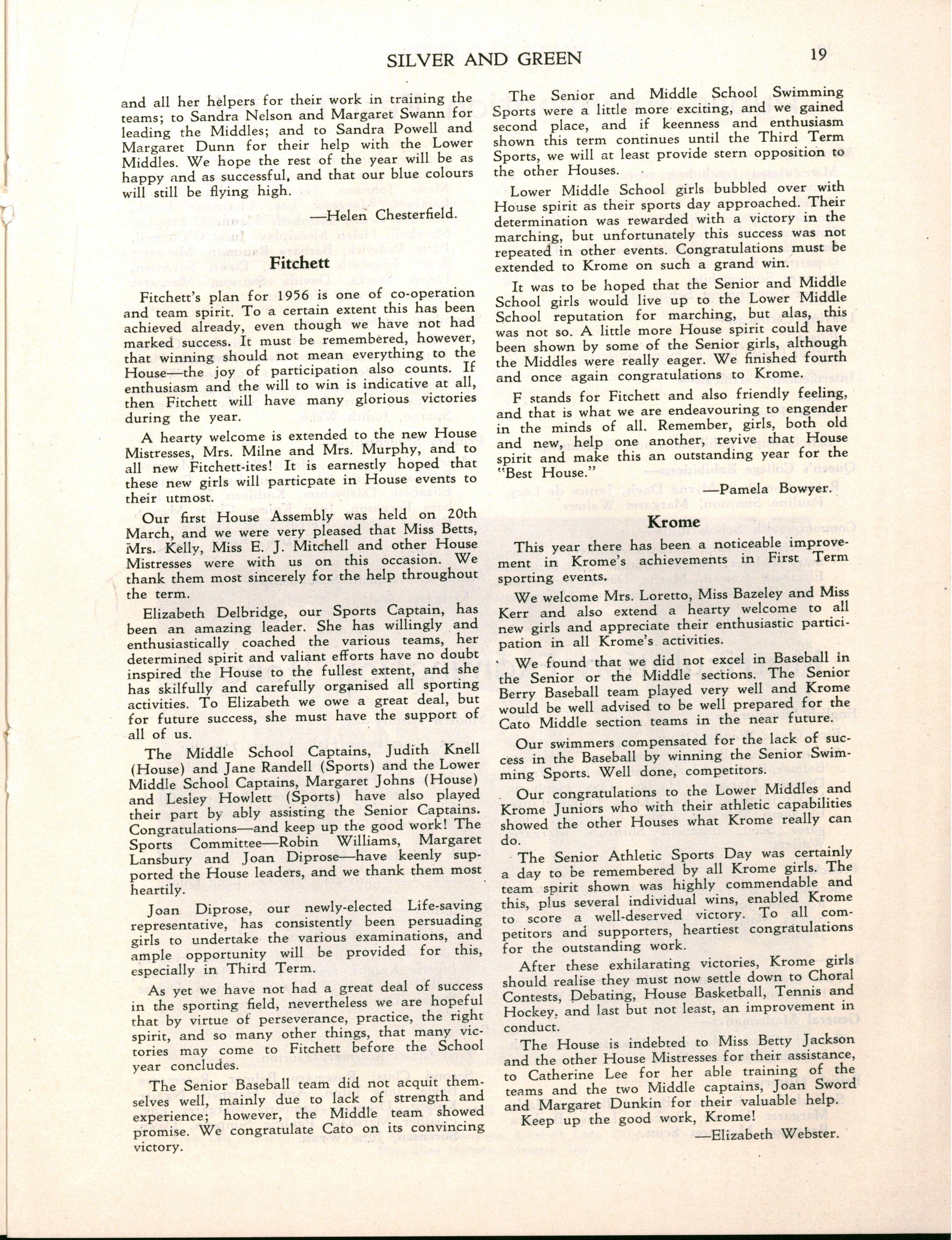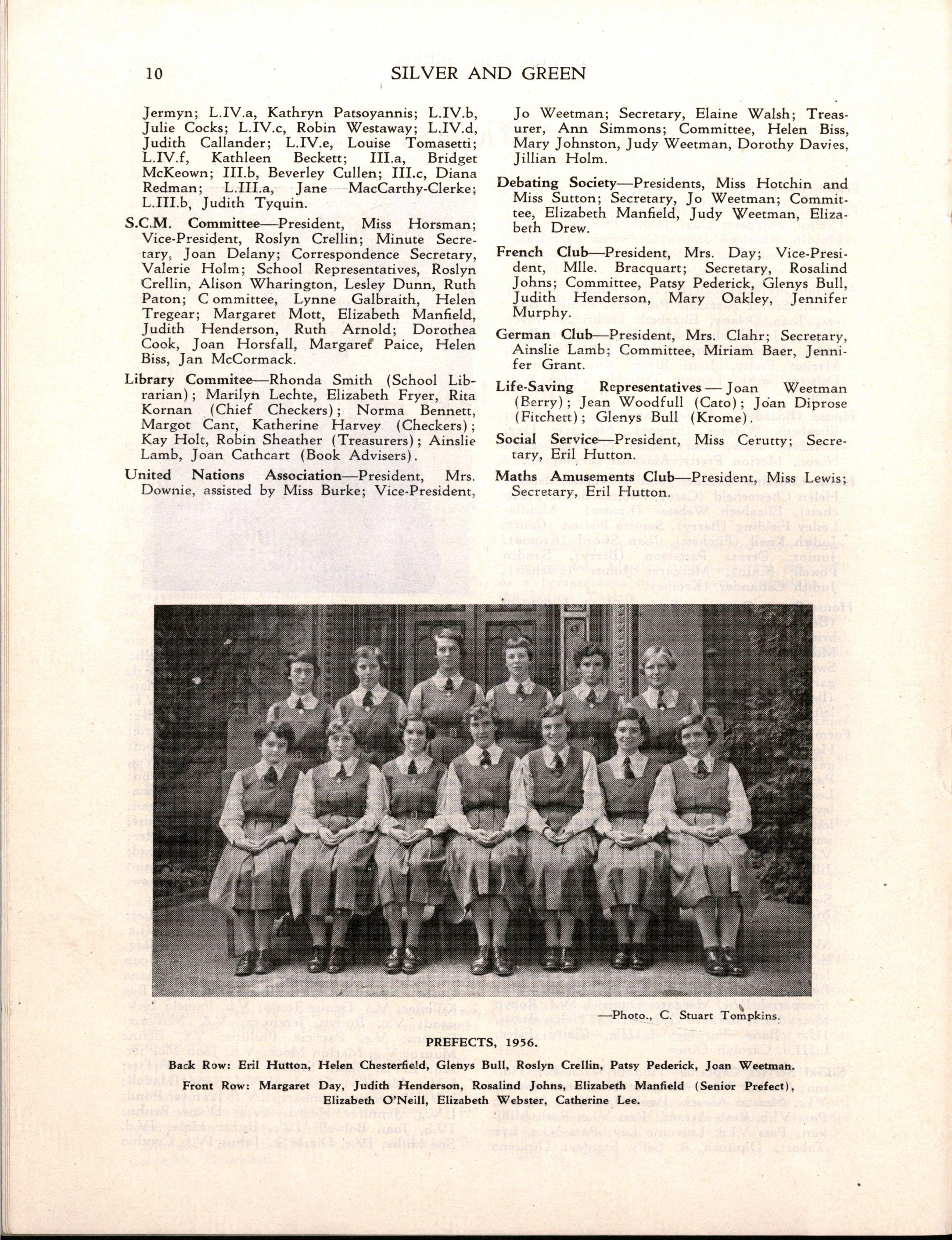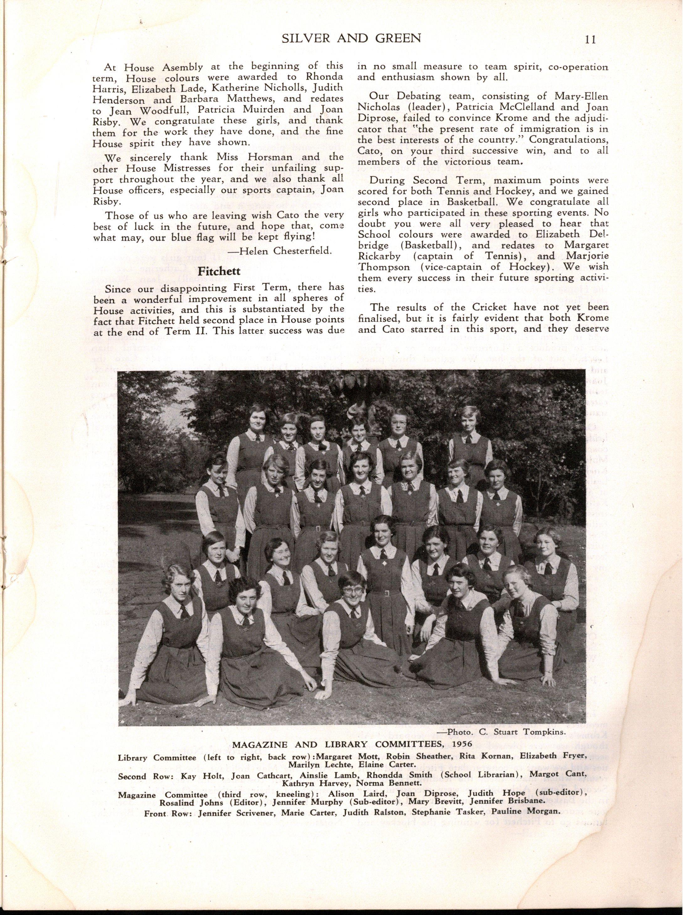Magazine Committee: Miss L MITCHELL, Miss M BETTS Miss E HUG O (Exam Results, School Officers), AINSLIE LAMB, PAULINE MORGAN RHONDD A SMITH, JENNIFER SCRIVENER, MAR Y BREVITT, JENNIFER BRISBANE MARIE CARTER, JUDIT H RALSTON STEPHANIE TASKF.R,