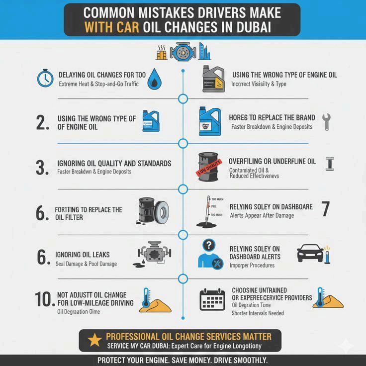 Dubai’s climate, traffic patterns, and long driving distances place extra stress on vehicle engines. While a car oil change may seem like a simple routine task, many drivers unknowingly make mistakes that reduce engine life, affect performance, and increase