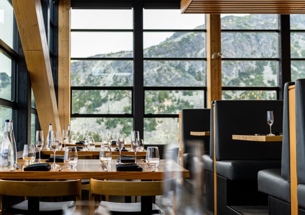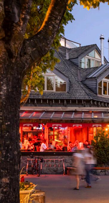 Entre una cumbre y otra, la góndola Peak 2 Peak conecta ambas montañas con vistas que justifican por sí solas el trayecto. Desde lo alto, la jornada continúa en Christine’s on Blackcomb, donde la pausa del mediodía se convierte en un ritual: cocina canadiense con- temporánea, ingredientes locales y panorámi- cas que integran el almuerzo al relato alpino. Desde aquí, el regreso puede hacerse esquiando o en góndola, cerrando un círculo natural entre acción y contemplación. Al caer la tarde, la energía se traslada al centro del pueblo. Boutiques cuidadosamente seleccionadas, cafés, bares y restaurantes acom- pañan el ritmo hasta bien entrada la noche. Garibaldi Lift Co. se posiciona de manera natural como un punto de encuentro del aprèsski, con un ambiente relajado que equilibra vitalidad y confort, platillos pensados para compartir y una coctelería precisa que ma ca la transición entre la montaña y la noche. Para una cena en un espacio icónico, Bearfoot Bistro sigue siendo un clásico imperdible: alta cocina, una cava de referencia internacional, el ritual del sabrage con espada napoleónica y la visita al célebre Grey Goose Ice Room, donde el frío se convierte en parte del ritual. La escena gastronómica de Whistler sorprende por su solidez y diversidad. Wild Blue desta- ca con una propuesta sofisticada centrada en