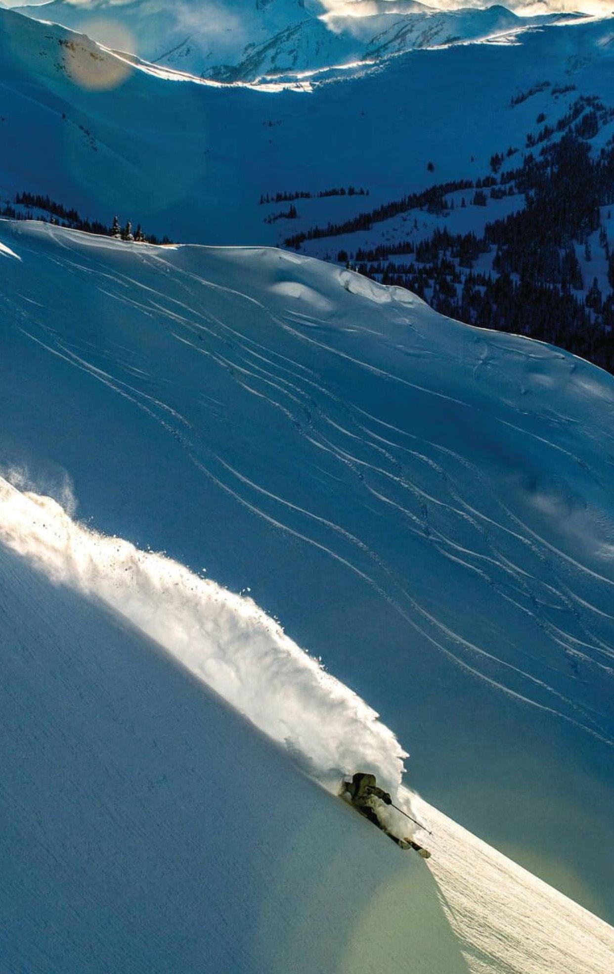 panorámicos en helicóptero con Blackcomb Helicopters amplían el horizonte a través de un recorrido aéreo que sobrevuela picos nevados, glaciares, lagos alpinos y valles remotos, hasta aterrizar directamente sobre el hielo. El silencio, la escala del entorno y la sensación de aislamiento absoluto convierten este momento en una vivencia profundamente conmo- vedora. Más que una actividad, es una pausa suspendida en el tiempo que redefine la manera de mirar la montaña y permanece en la memoria mucho después del regreso. Todo sucede sin fricciones. La logística acompaña sin robar protagonismo: el acceso a las pistas es ágil, el equipo se gestiona con fa- cilidad y cada transición del hotel a la mon- taña, de una cumbre a otra- ocurre con una precisión casi imperceptible. El Epic Pass funciona como un aliado clave, ofreciendo acceso continuo no sólo a Whistler Blackcomb, sino a una red global de destinos, favorecienvdo la libertad, la flexibilidad y el uso inteligente del tiempo.