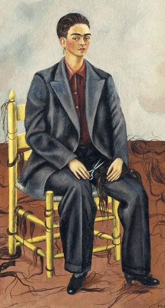 Tras su divorcio con Diego Rivera, la artista pintó este autorretrato como una declaración de independencia. En la obra aparece sentada en una silla, usando un traje masculino, con el pelo recién cortado y las tijeras en la mano. A su alre dedor hay mechones de pelo esparcidos, y arri ba, en la parte superior, se puede leer: “Mira que si te quise, fue por el pelo. Ahora que estás pelo na, ya no te quiero”.