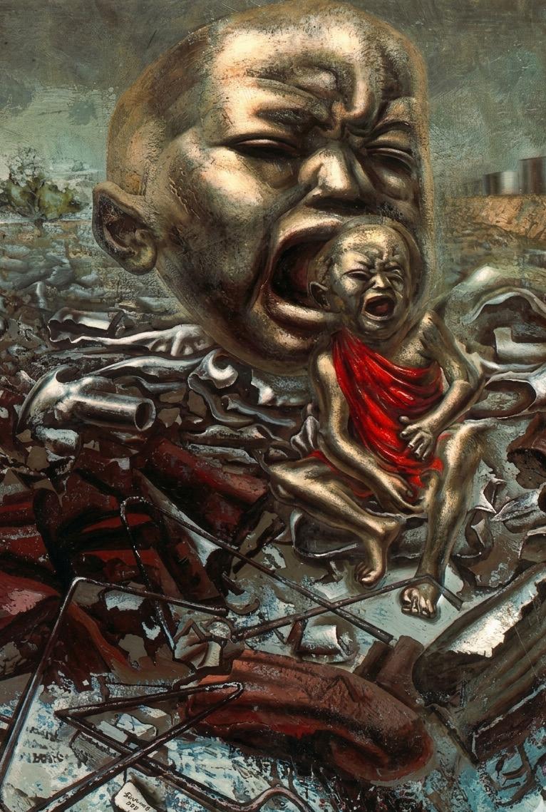 Fue realizada durante el periodo de la Guerra Civil española, y en él se ilustra un grito en contra del conflicto y el sufrimiento hu- mano a través de un bebé entre ruinas y fragmentos de metal. El artista pintó la obra tras participar en este conflicto del lado de los republicanos, por lo que se puede ver su compromiso a su causa, combinado el surrealismo y el expresionismo, pero con una perspectiva forzada. Fue una de las primeras obras latinoamericanas modernas en ingresar a la colección permanente del MoMA, por lo que se le considera todo un suceso artístico.