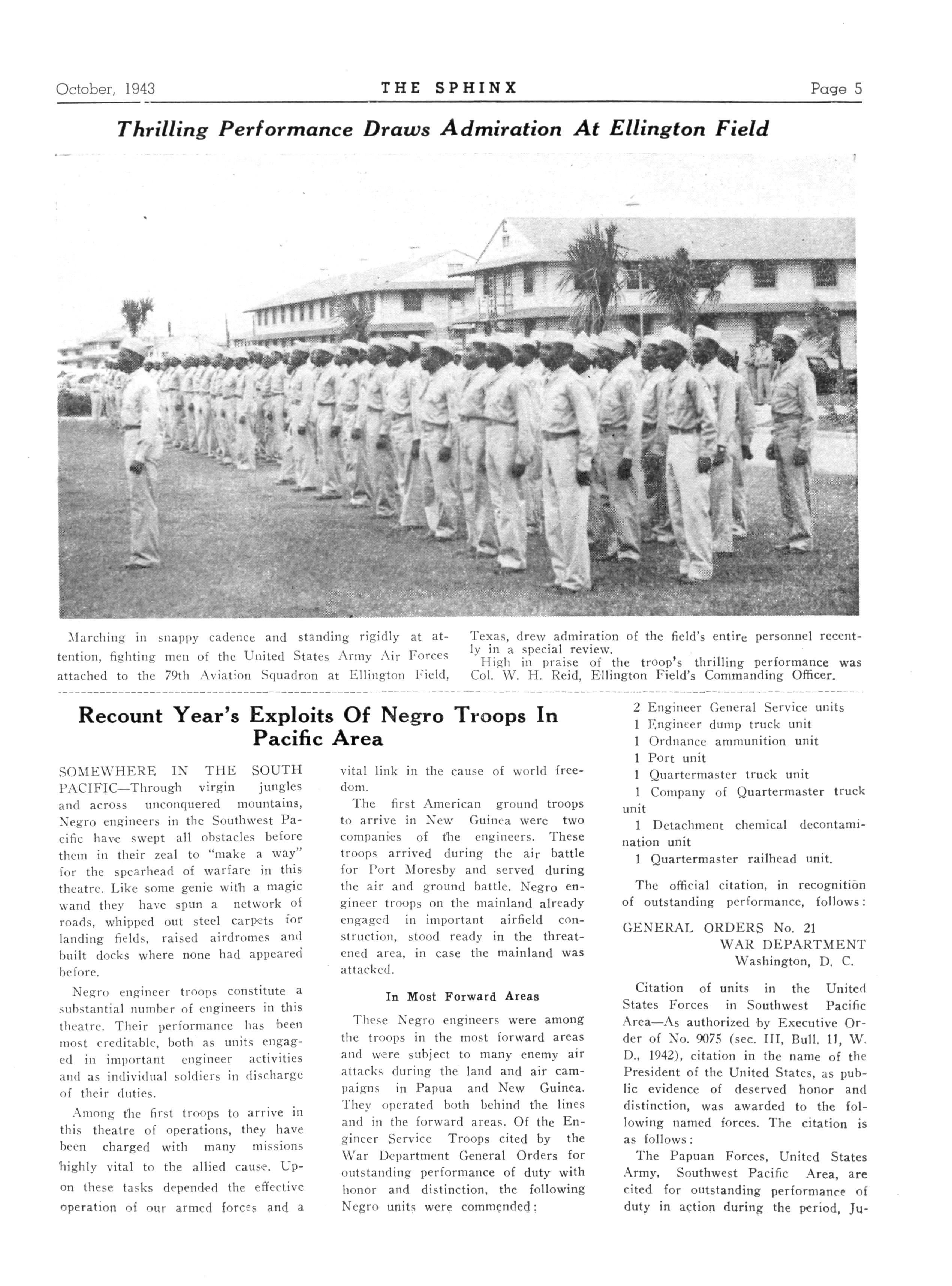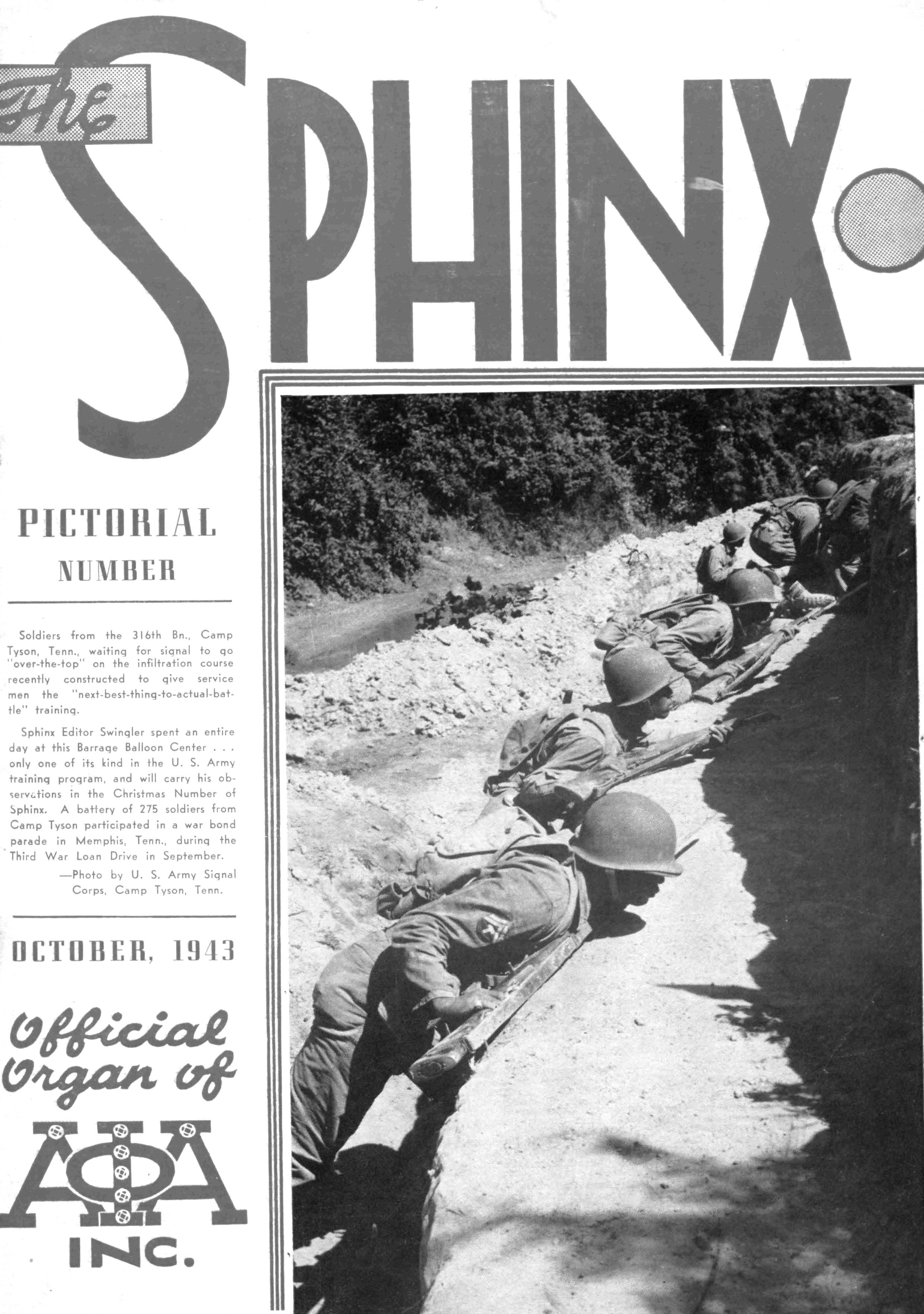 Sphinx Editor Swinqler spent an entire day at this Barraqe Balloon Center only one of its kind In the U S Army traininq proqram, and will carry his observetions in the Christmas Number of Sphinx A battery of 275 soldiers from Camp Tyson participated in a war bond parade in Memphis, Tenn., durinq the Third War Loan Drive in September