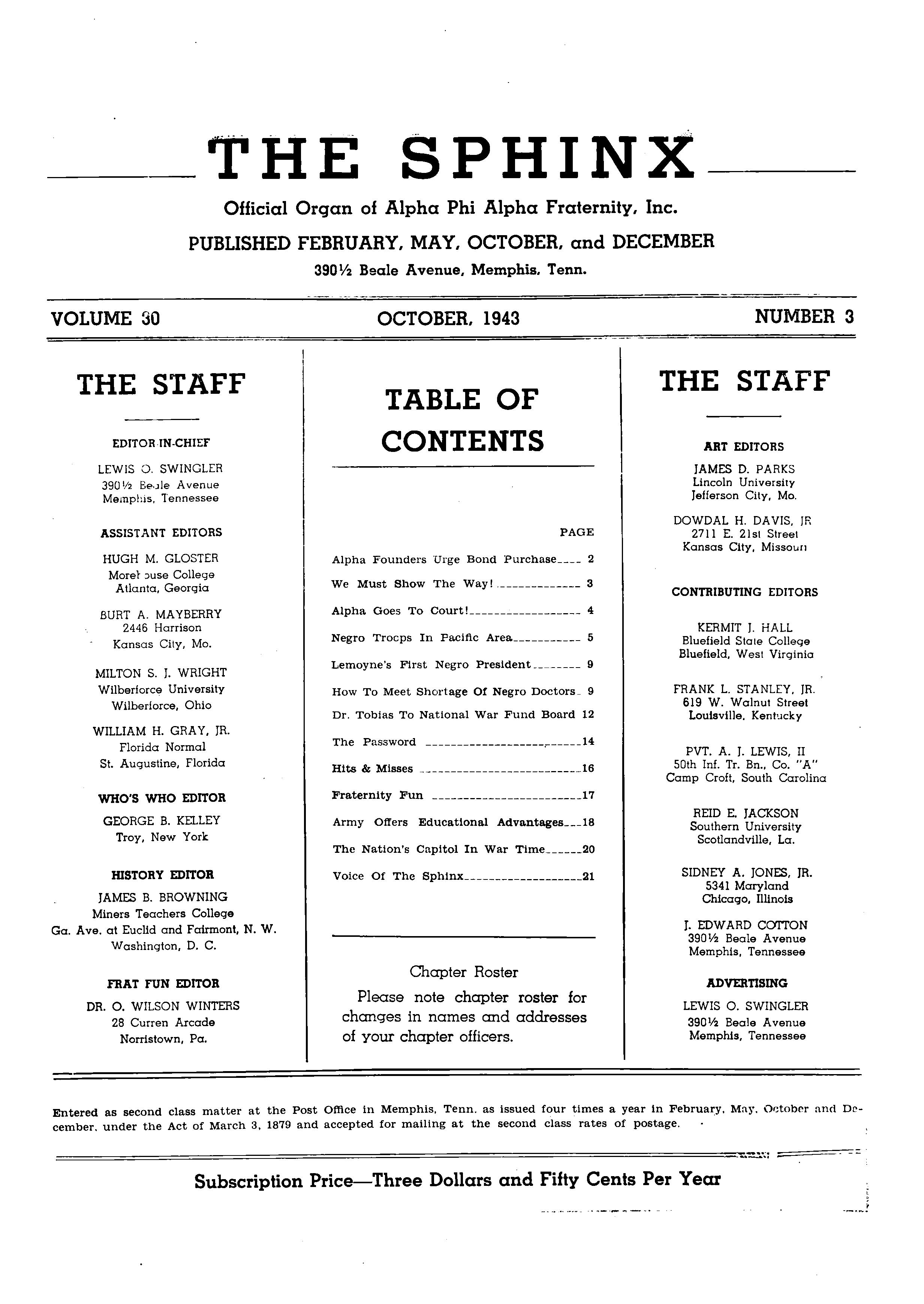 The SPHINX | Fall October 1943 | Volume 30 | Number 3 194303003