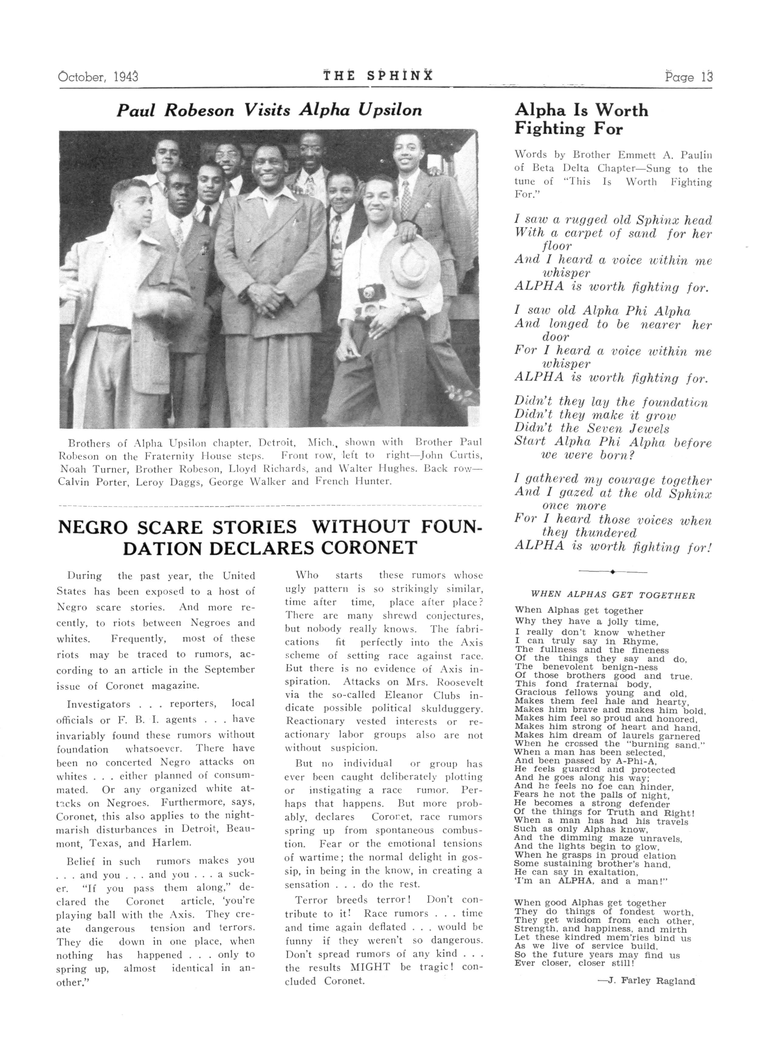 ALPHA PSI—Lincoln University, Jefferson City Mo • President, Alphonse E. Ellis, Allen Hall, Lincoln Unlversitv Secretary, William McCoy, Allen Hall, Lincoln University