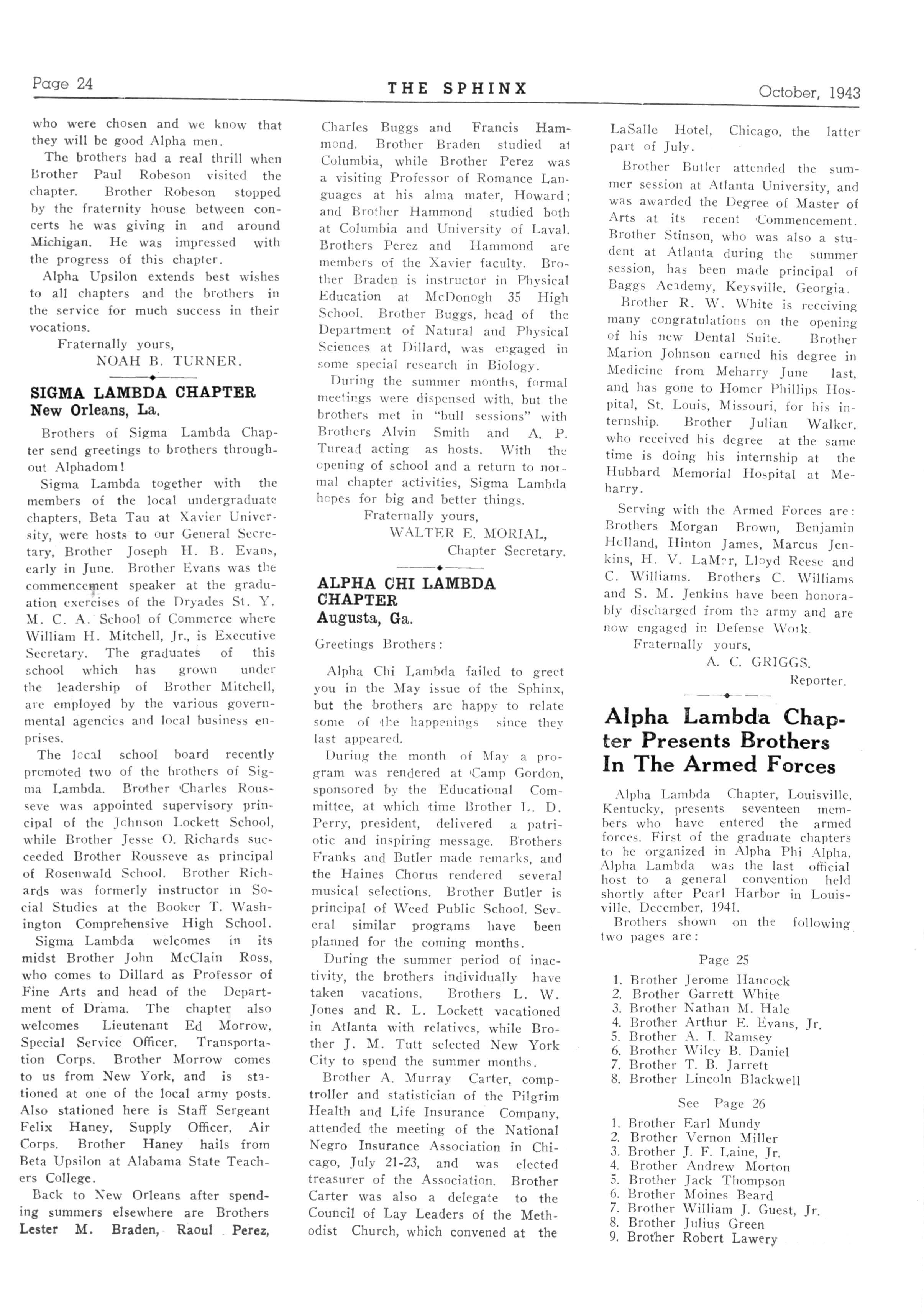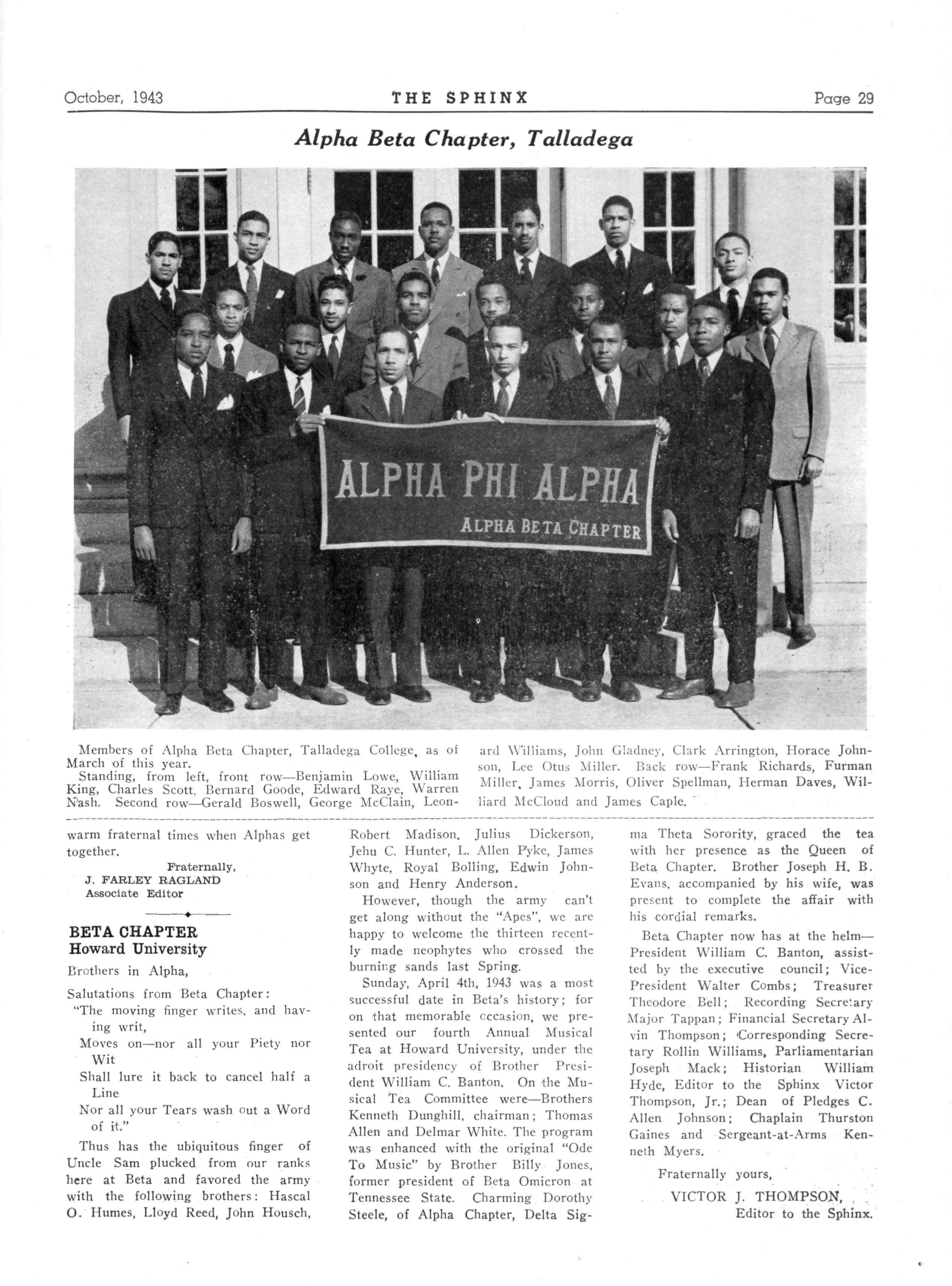 24 ALPHA BETA—Talladega College, Talladega, Ala.; President Horace Johnson; Secretary, William King, Talladega College.