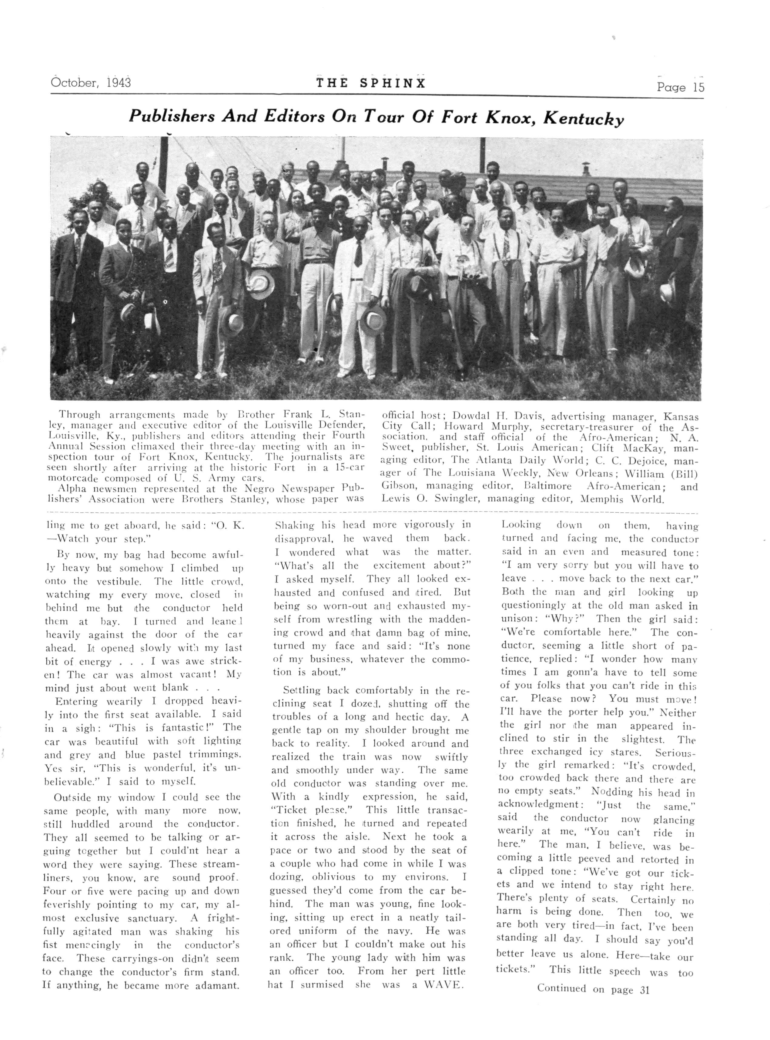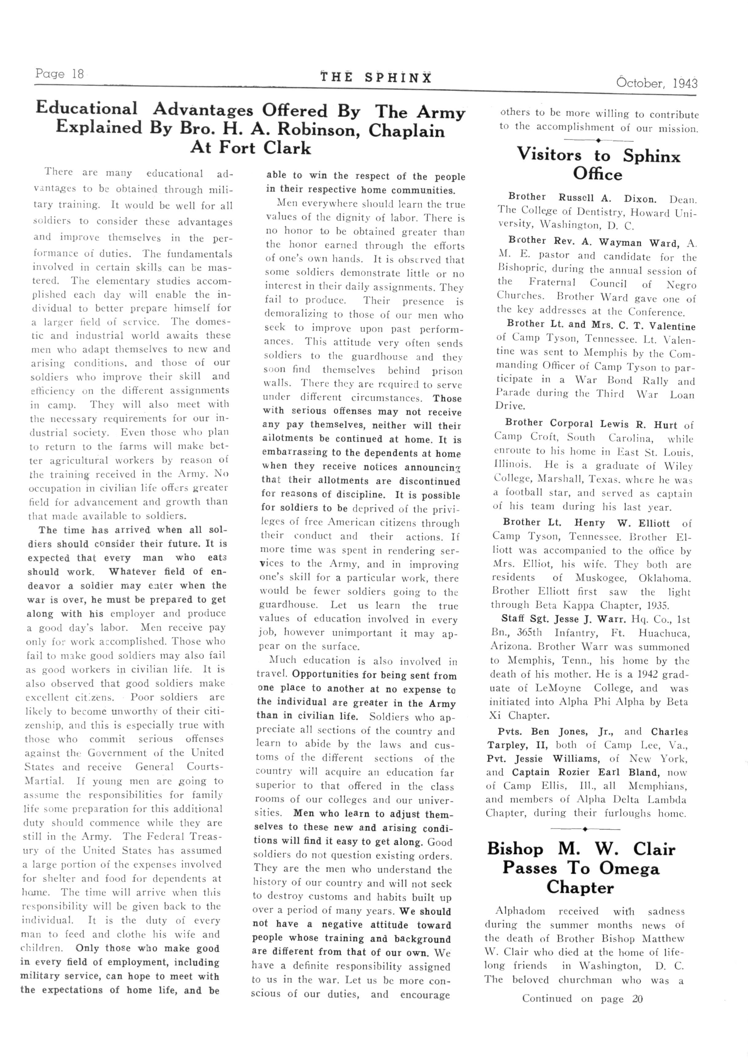 LEWIS O.SWINGLEB Editor of the Sphinx 390 Va Beale Avenue, Memphis, Tennessee