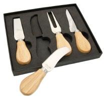 4 veidu nerūsējošā tērauda naži ar koka rokturi, melnā dāvanu kastē.
