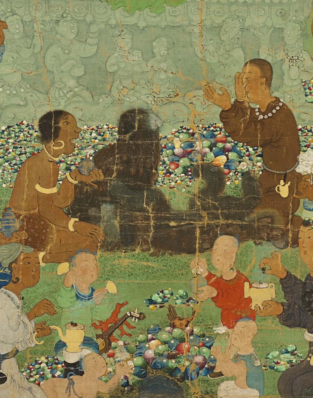 Tara is depicted in lalitasana, the royal ease posture, with her right leg pendant, a pose imbued with both elegance and compassionate authority. As the Great Saviouress, she embodies the bodhisattva’s readiness to descend into the world to alleviate suffering.