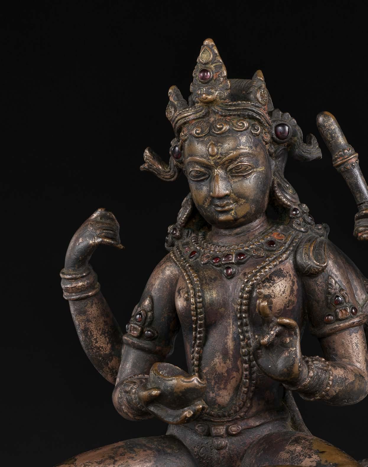 This rare and expressive bronze encapsulates the devotional spirit, technical precision, and cross-regional aesthetic influences that flourished in Kashmir and the western Himalayas during the 11th century.