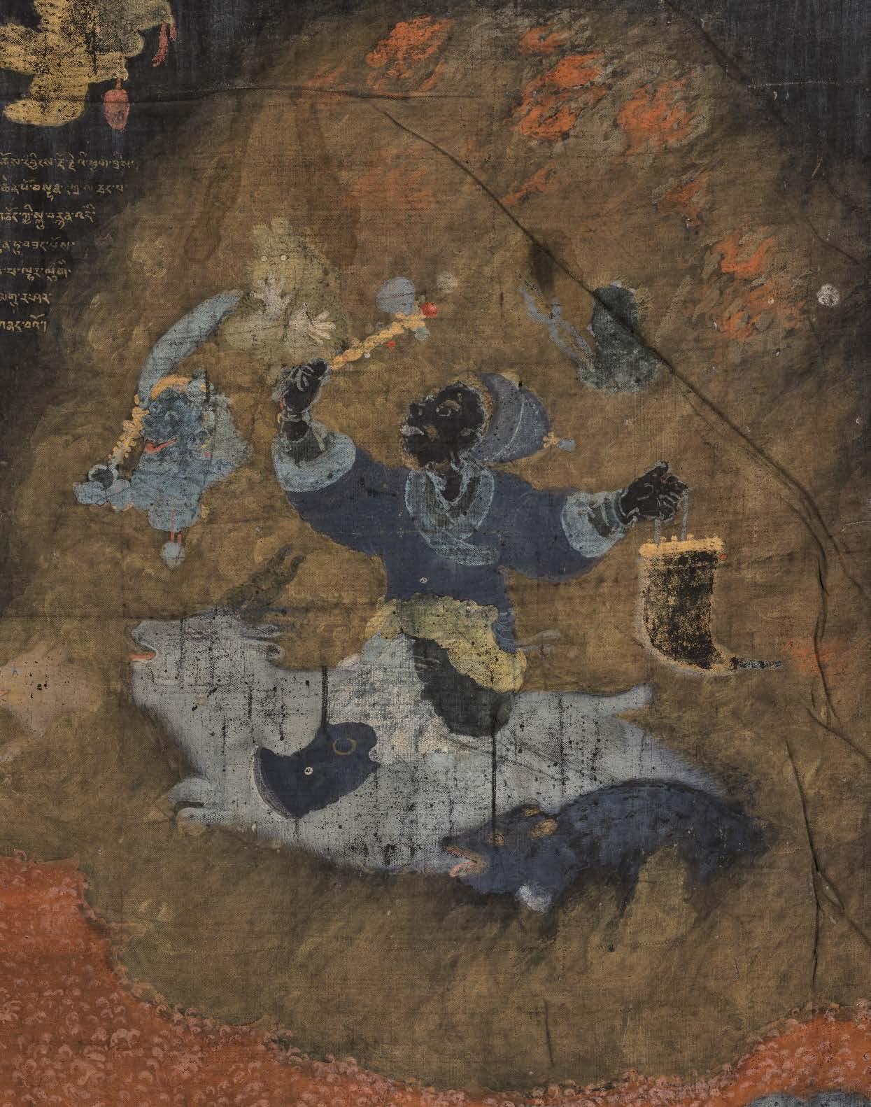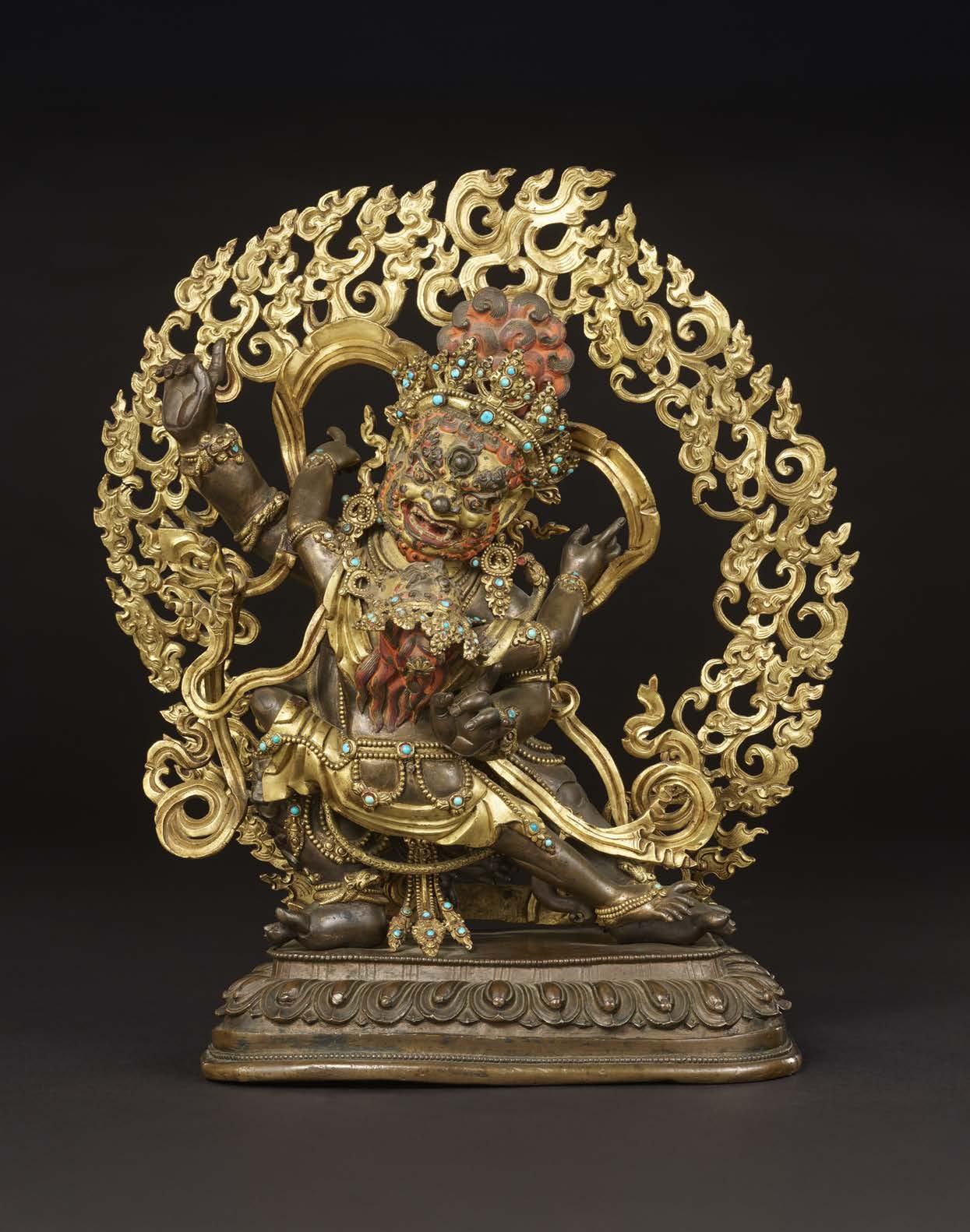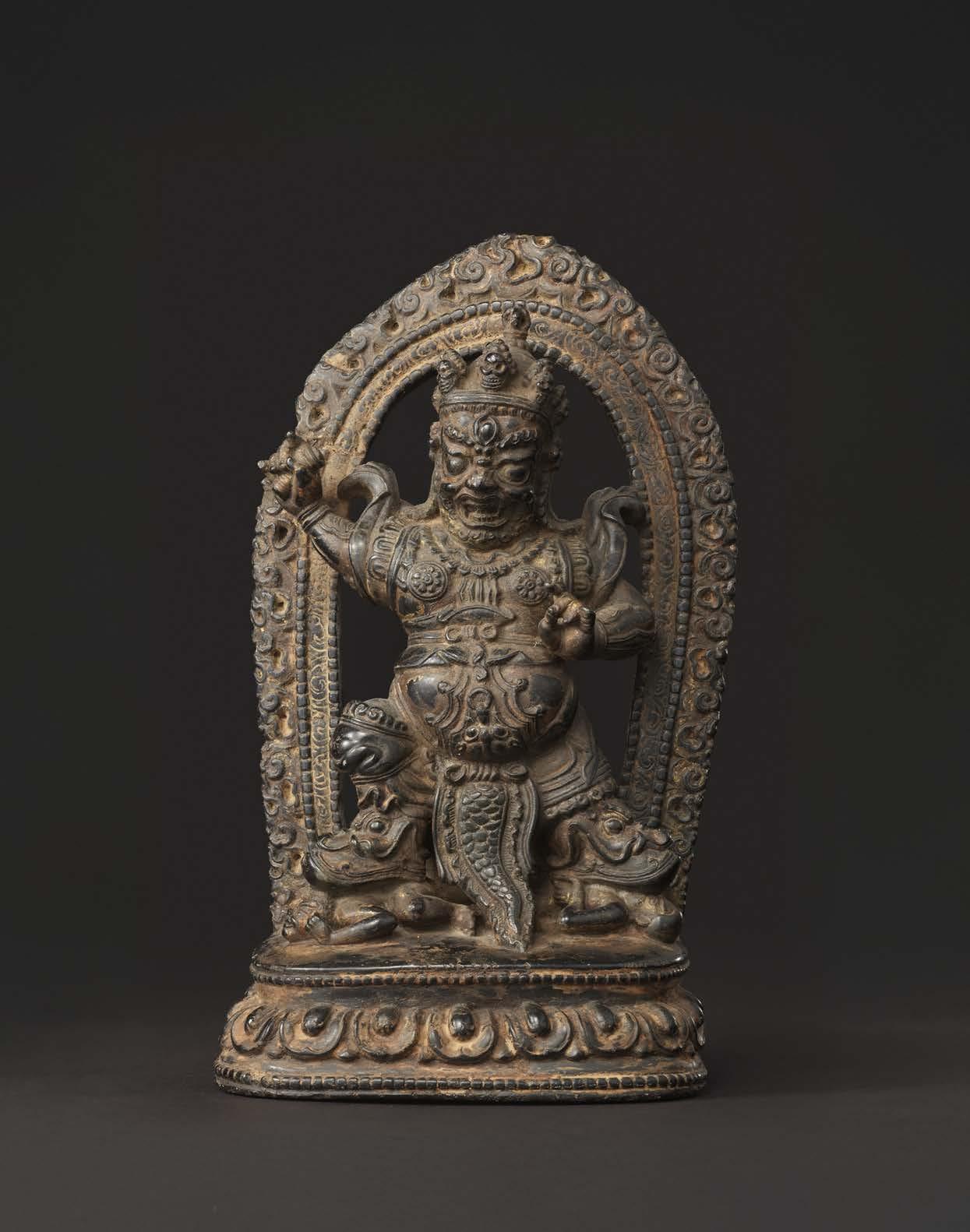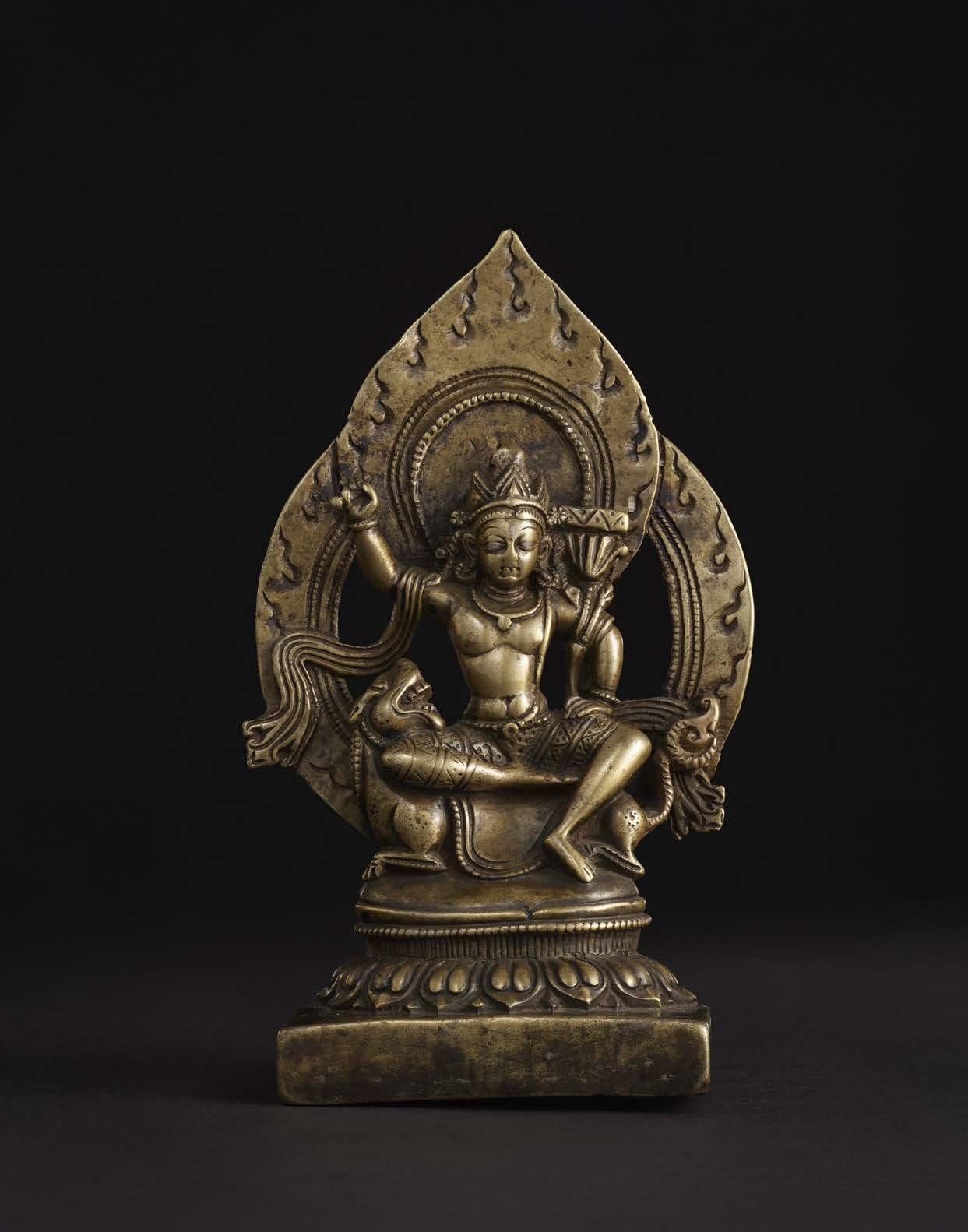 Yet, it is the present figure’s exceptional mount, the animated lion that distinguishes it within this well-documented corpus. The integration of mount and deity into a cohesive and lively composition demonstrates the sculptor’s ingenuity outside the typically codified constraints of the monastic atelier.