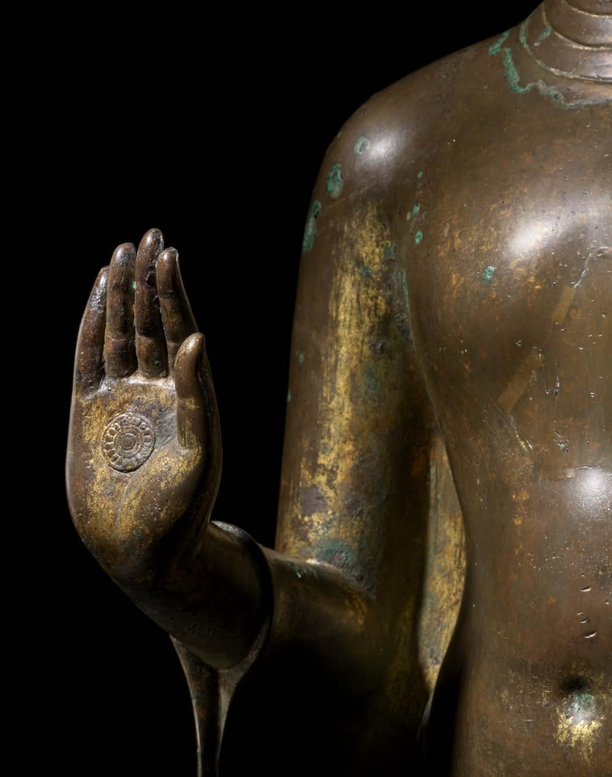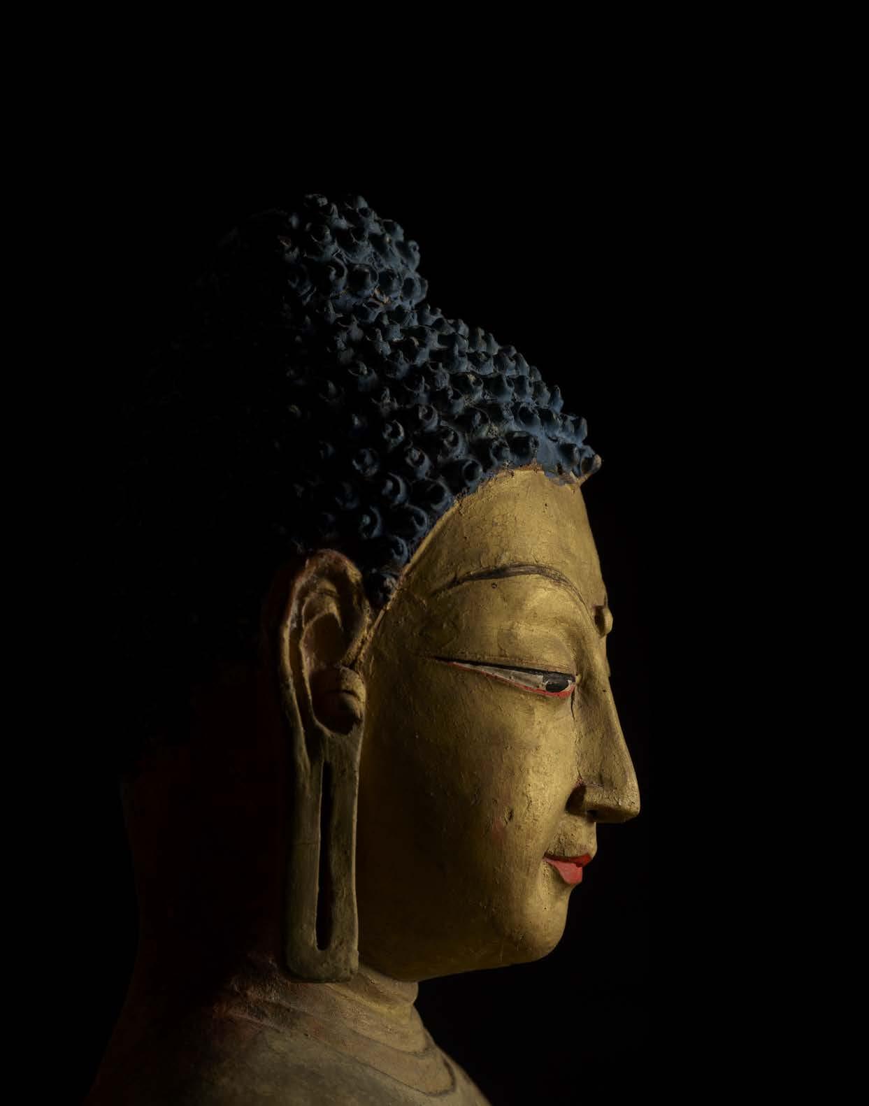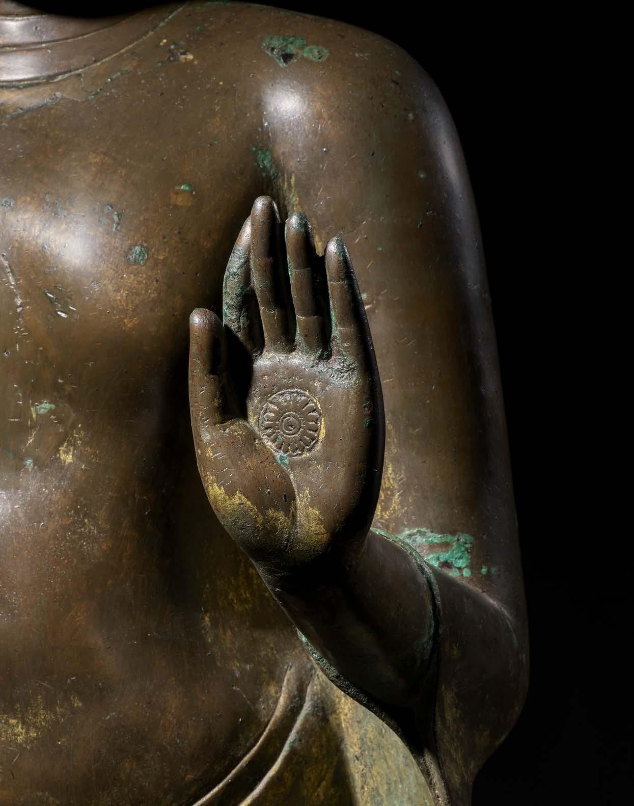 Signs of prolonged ritual use are evident in the softening of the facial features, torso, and hands, the key touch points of veneration over generations of worship. These marks of devotion serve as a moving testimony to the sculpture’s long life as a sacred object, rather than a static work of art.