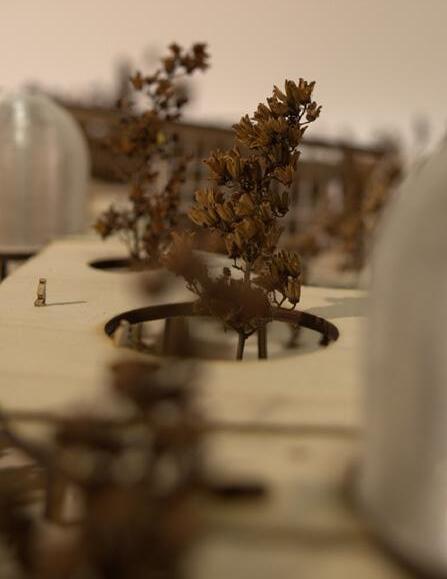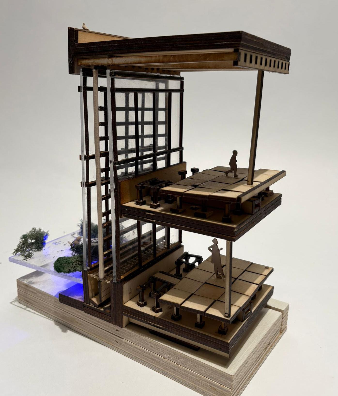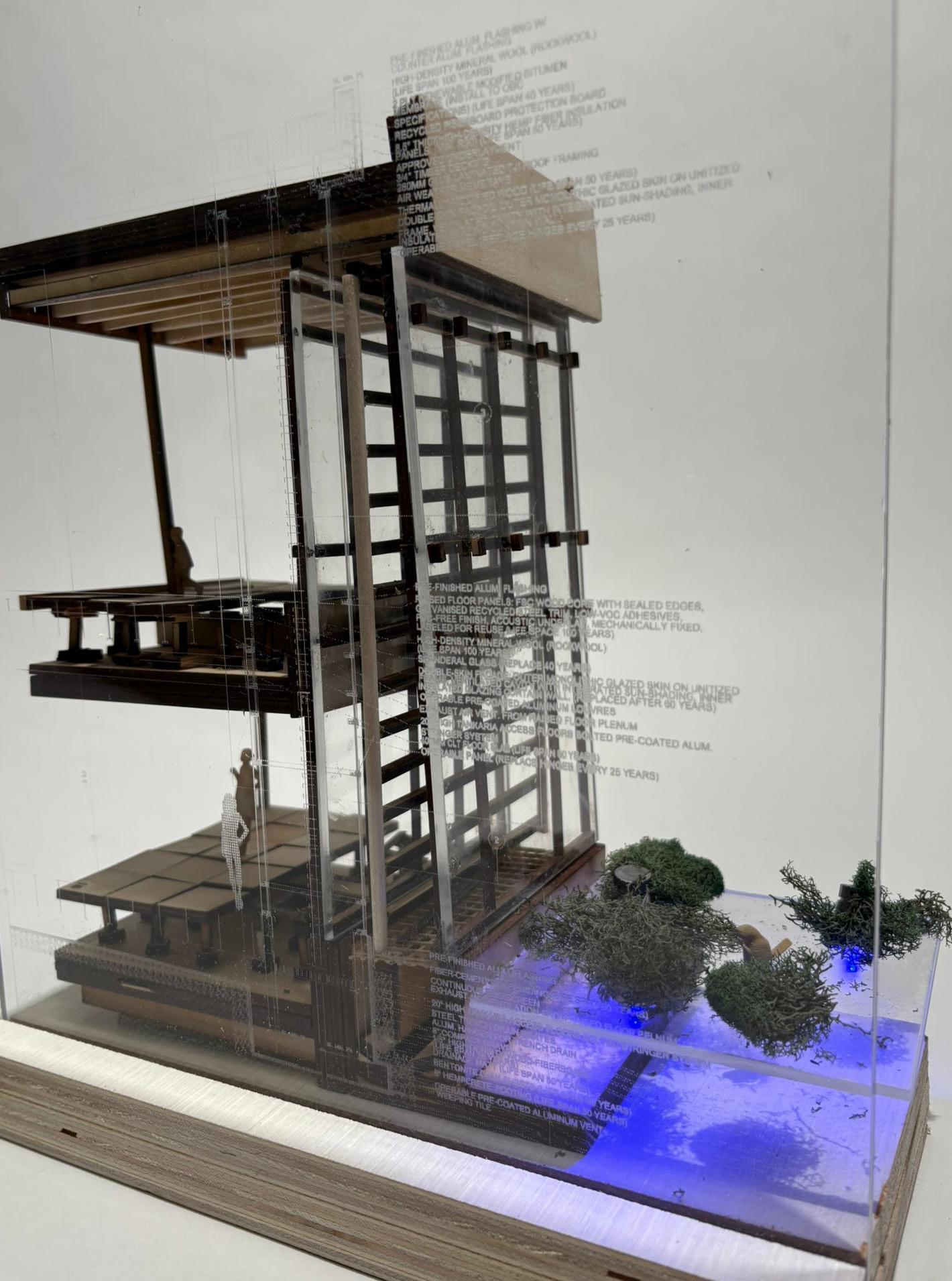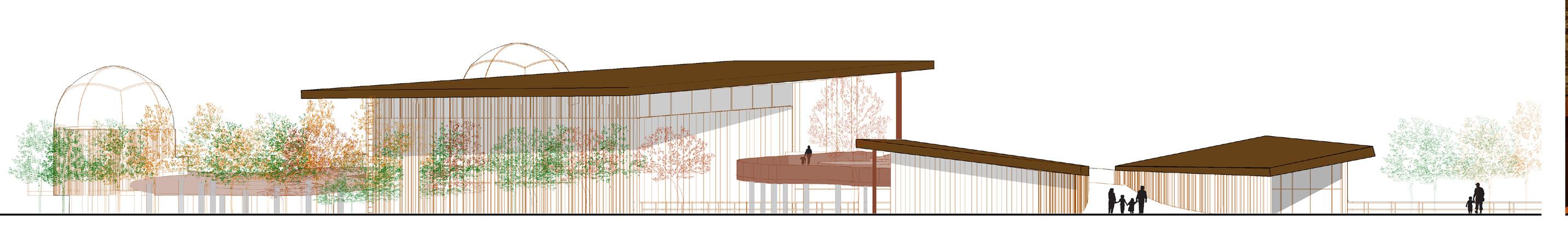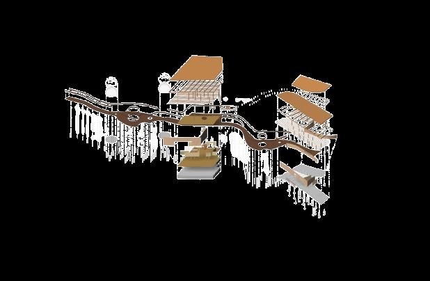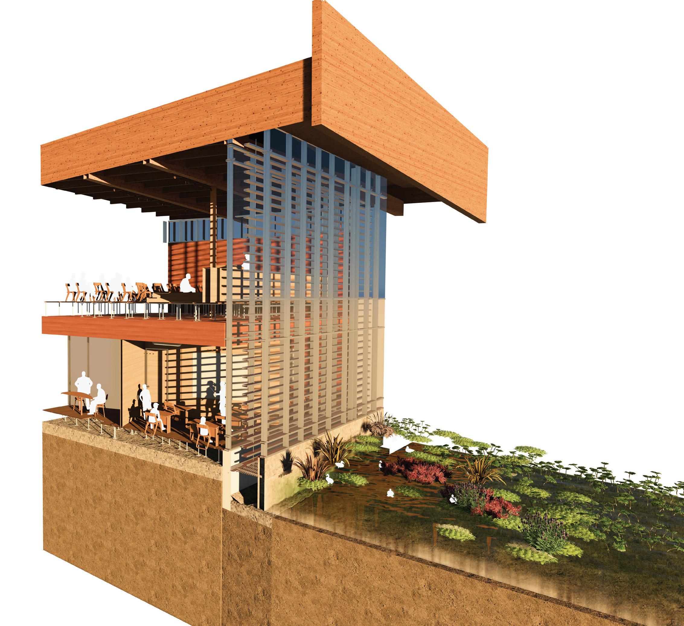 1,000 m² Research & Education Centre at Mer Bleue Bog, designed through a Rights of Nature framework. Elevated timber & glulam on concretehemp piles preserves hydrology. Perforated ramps & boardwalks allow interaction without intrusion. Biogenic materials, passive systems (solar orientation, operable louvers, geothermal), 92% carbon reduction, 95 kWh/ m²·year—architecture that is technically rigorous and ecologically responsible.