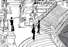 This scene focuses on the intimate scale of urban life within dense environments. The narrow alley and layered lighting create a transition between public movement and private atmosphere, suggesting how cities are experienced not only through grand forms but also through moments of quiet enclosure. I aimed to study how warm and cool light define depth, rhythm, and direction, and how architecture frames movement and pause within constrained spaces.