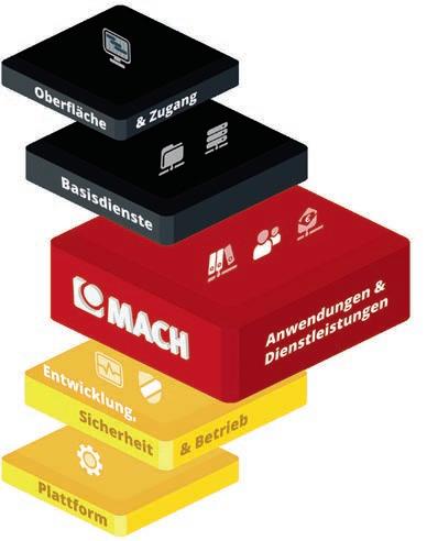 MACH richtet seine Lösungen konsequentandenPrinzipiendesDeutschland-Stacksaus:Offenheit,Nachnutzbarkeit, Interoperabilität und föderale Anschlussfähigkeit. Statt isolierter Einzellösungen entstehen modulare Bausteine, die sich klar in die StackArchitektureinordnenlassen–vorallem in die Schichten Anwendungen