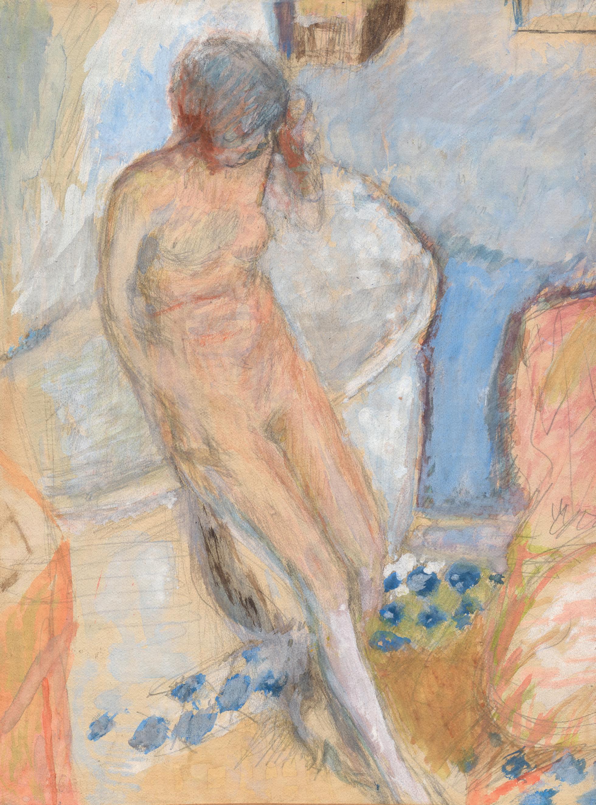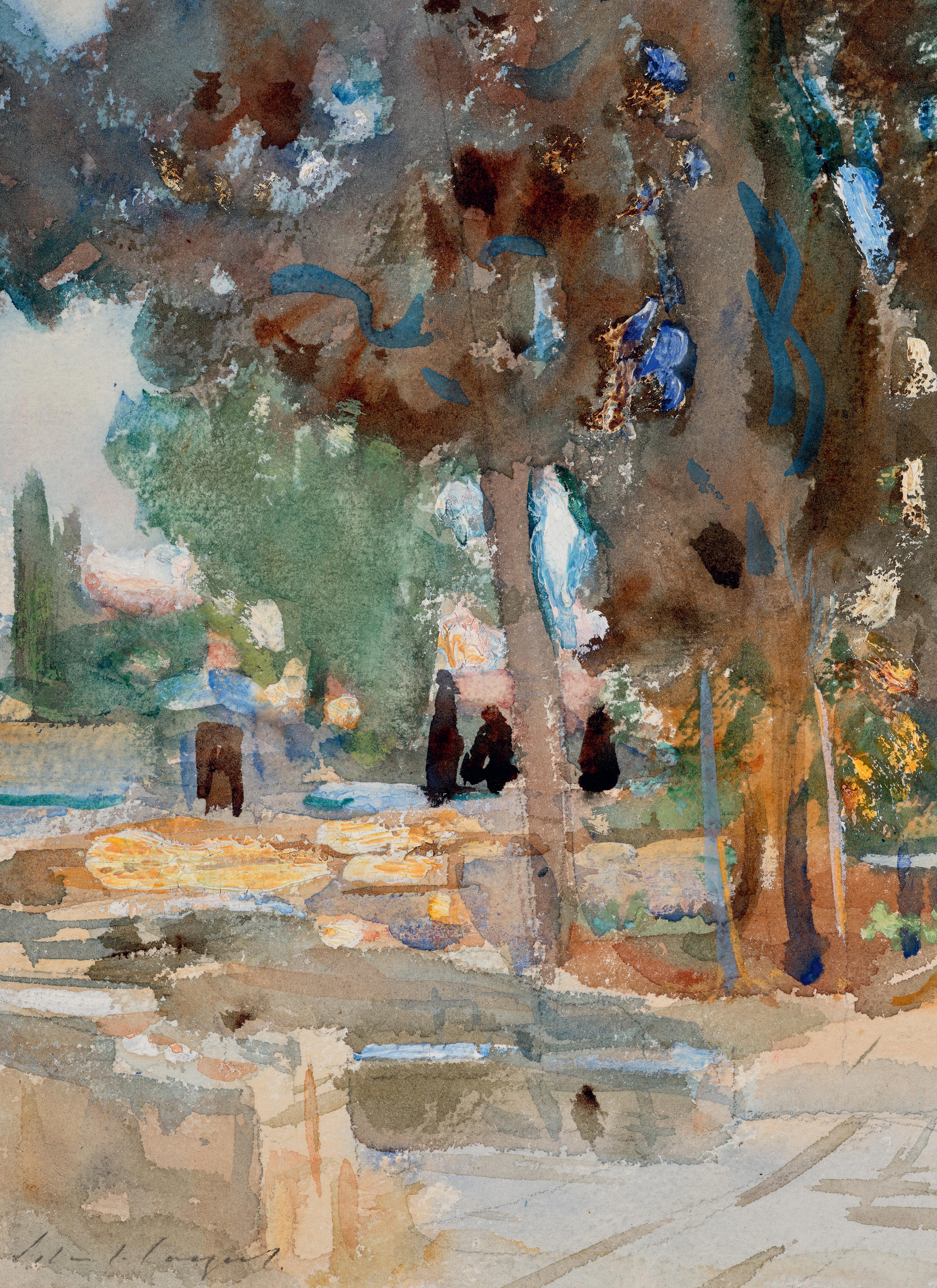 Aquarelle sur papier contrecollé sur carton, 36,2 x 34 cm.