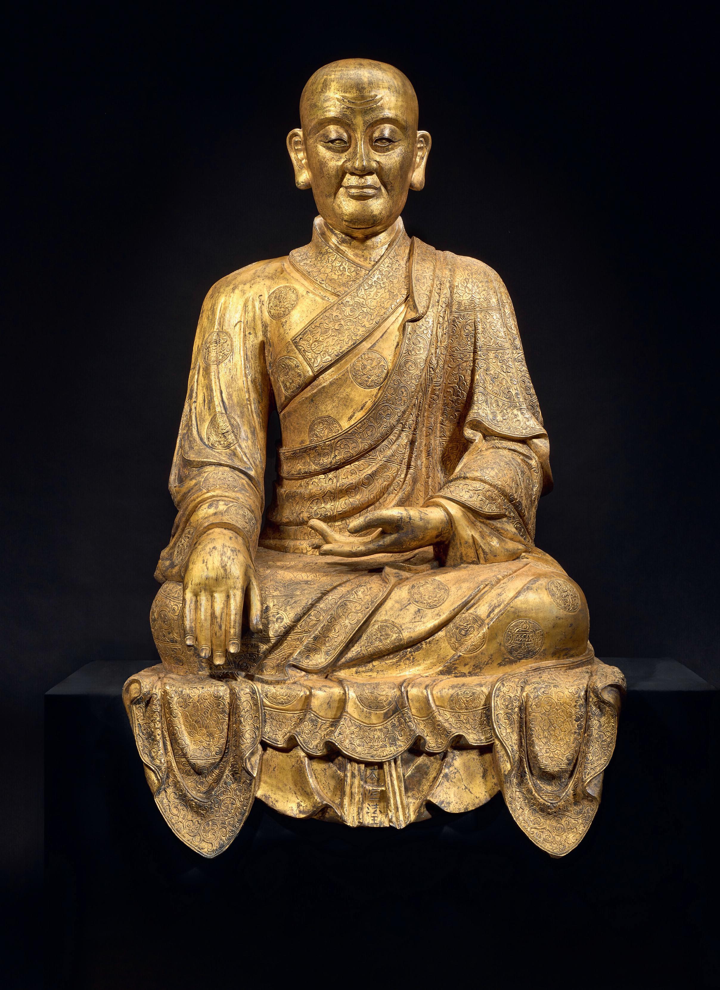 STATUE MONUMENTALE IMPÉRIALE EN BRONZE DORÉ D’UN MAÎTRE DE LA LIGNÉE DES KARMAPA