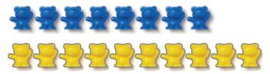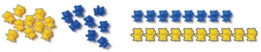 Data contexts provide natural opportunities for counting. Students collect data by answering questions, sorting sets, and making observations. They create bar graphs, picture graphs, and tally charts to visually represent the data. As students count to find totals and visually compare quantities, they recognize that linear organizations are useful. Students compare what they see using language such as more than, fewer than, and equal to, and represent these statements numerically using the symbols >, <, and =. Number paths and tally marks provide students opportunities for counting on from 5.