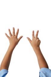 Now students count on to find totals for expressions (e.g., 4 + 6) rather than for sets of countable objects. Because the parts are no longer presented as sets of objects that can be counted, students must hold the first addend in mind and count on the second addend by tracking with fingers. Students experiment with counting on from both numbers by using a number path to determine the efficiency of starting with the larger addend. Recognizing this efficiency and knowing that starting with either addend results in the same total, students begin to find totals by strategically counting on from the larger part. Students also look for patterns when adding 0 and 1.