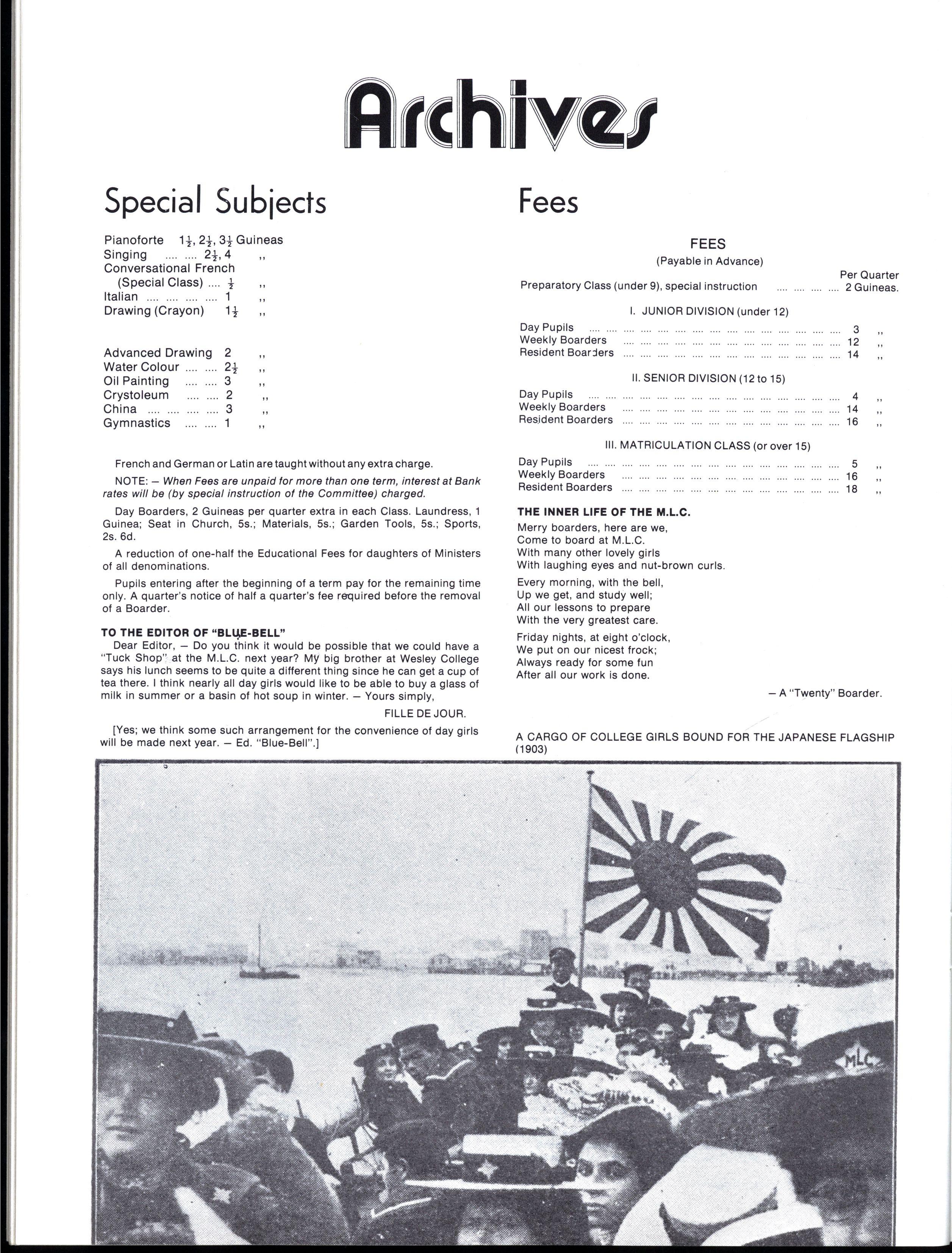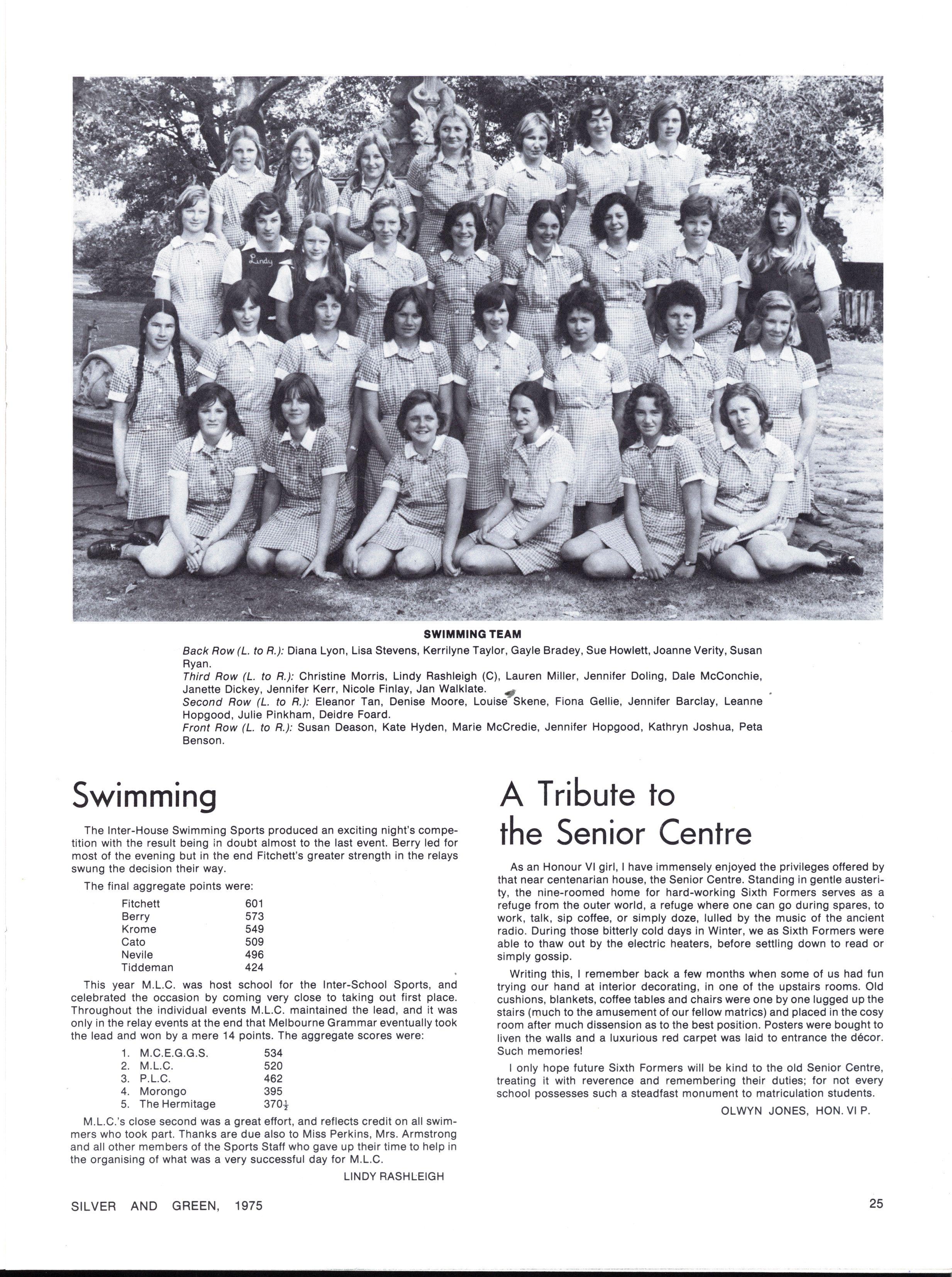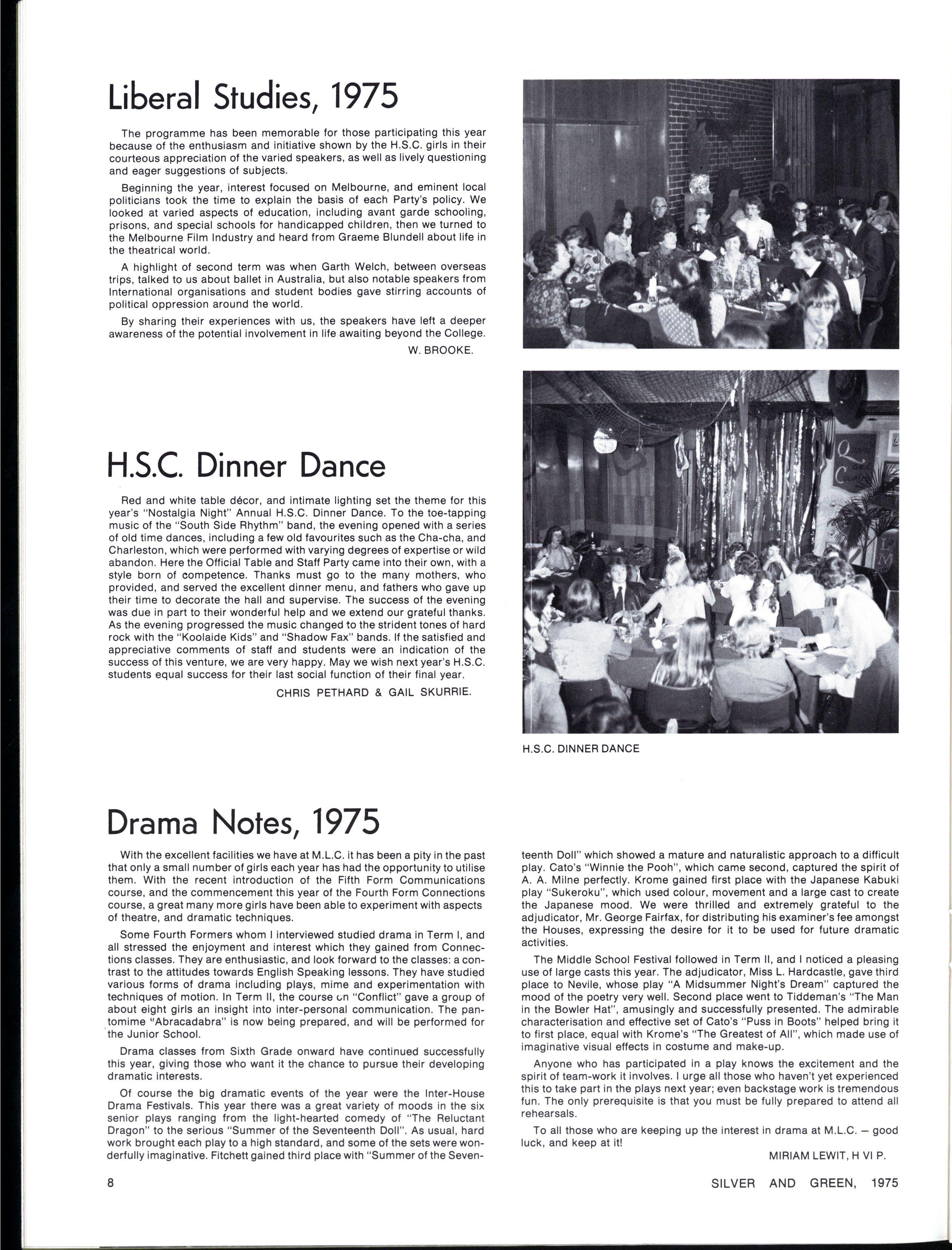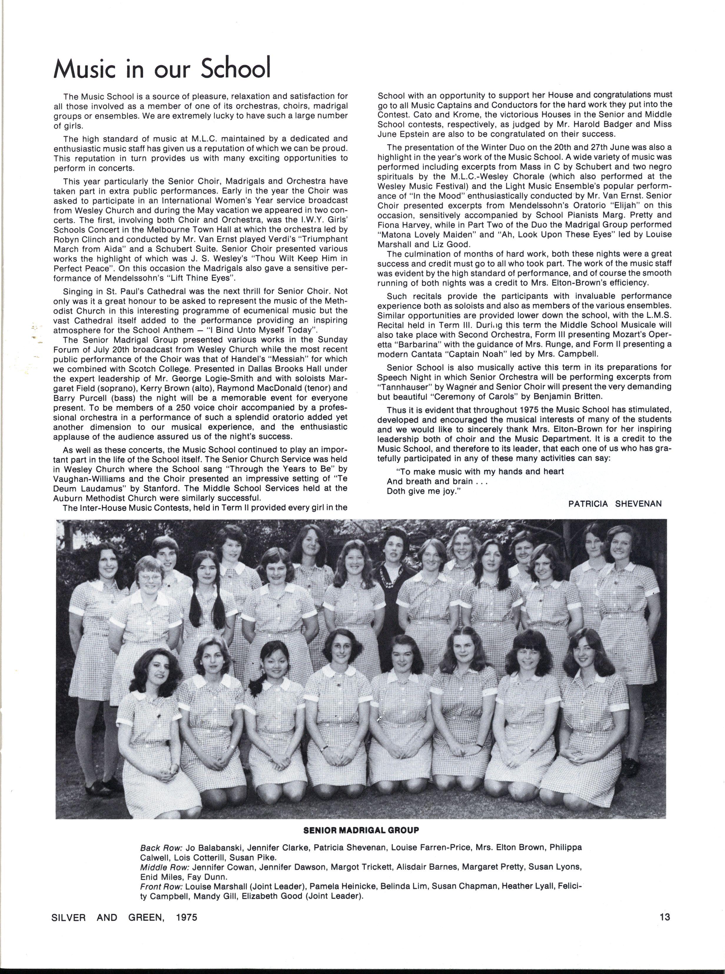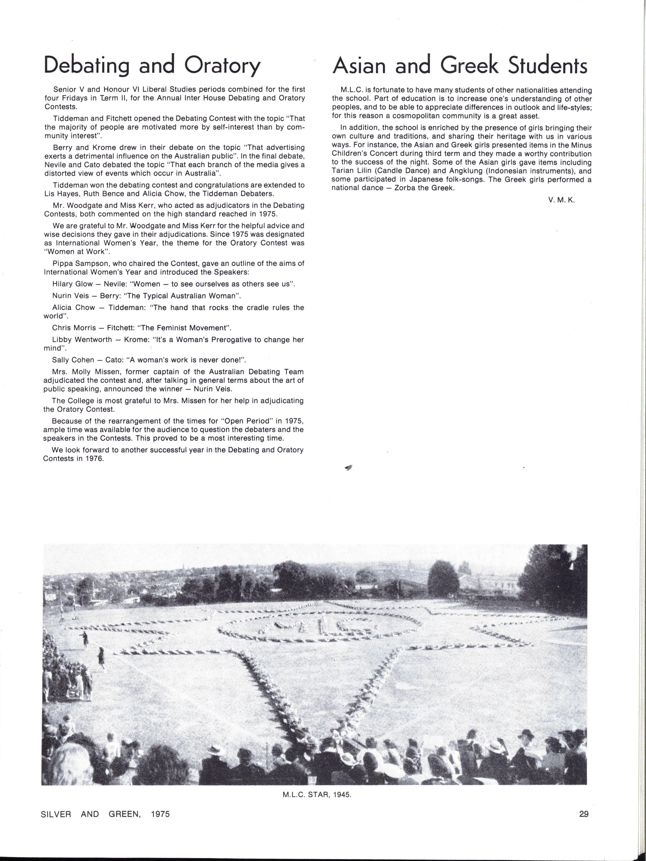 The diversity of interests and personalities one encounters in a school of M.L.C.'s numbers, gives one a quite realistic view of oneself in relation to the general community, and those all important competitive standards of one's peer group If nothing else, M.L.C. teaches the arts of survival and tolerance, which will help to ease the pain of transition from school into later life