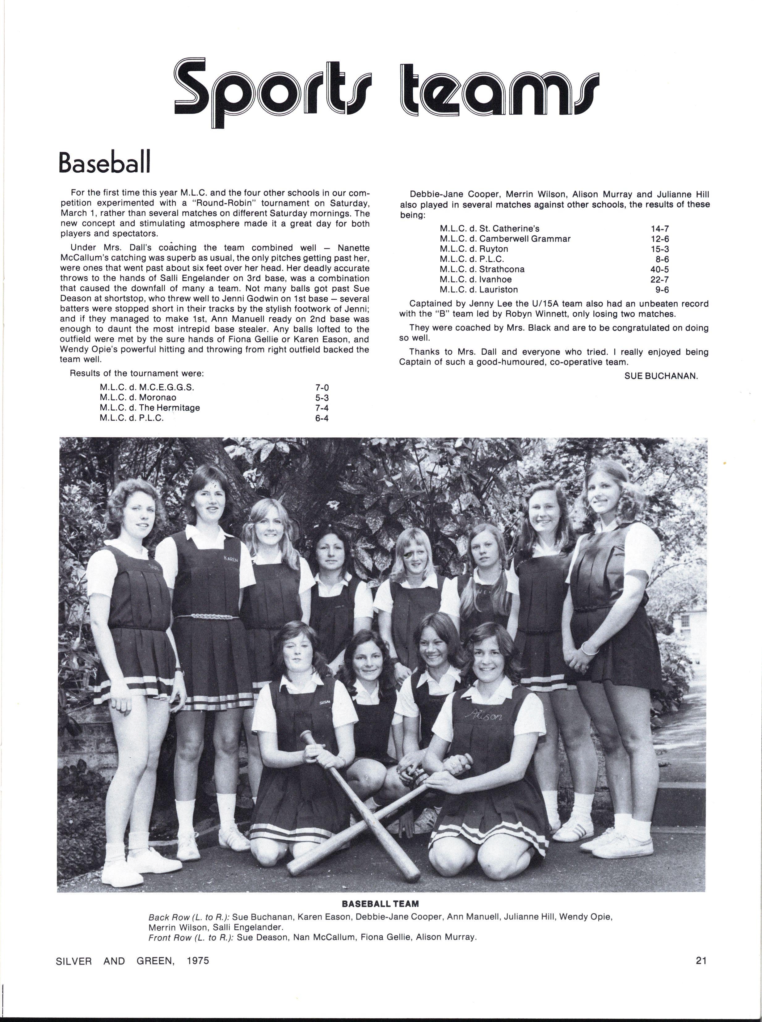 Julia Douglas Lanna Dawkins Susan Hansford Barbara Heath Jennifer Miller, Catherine McPherson, Kay Newman, Caroline Sidebottom, Robyn Sutcliffe, Fiona Trigg, Margaret Welsford