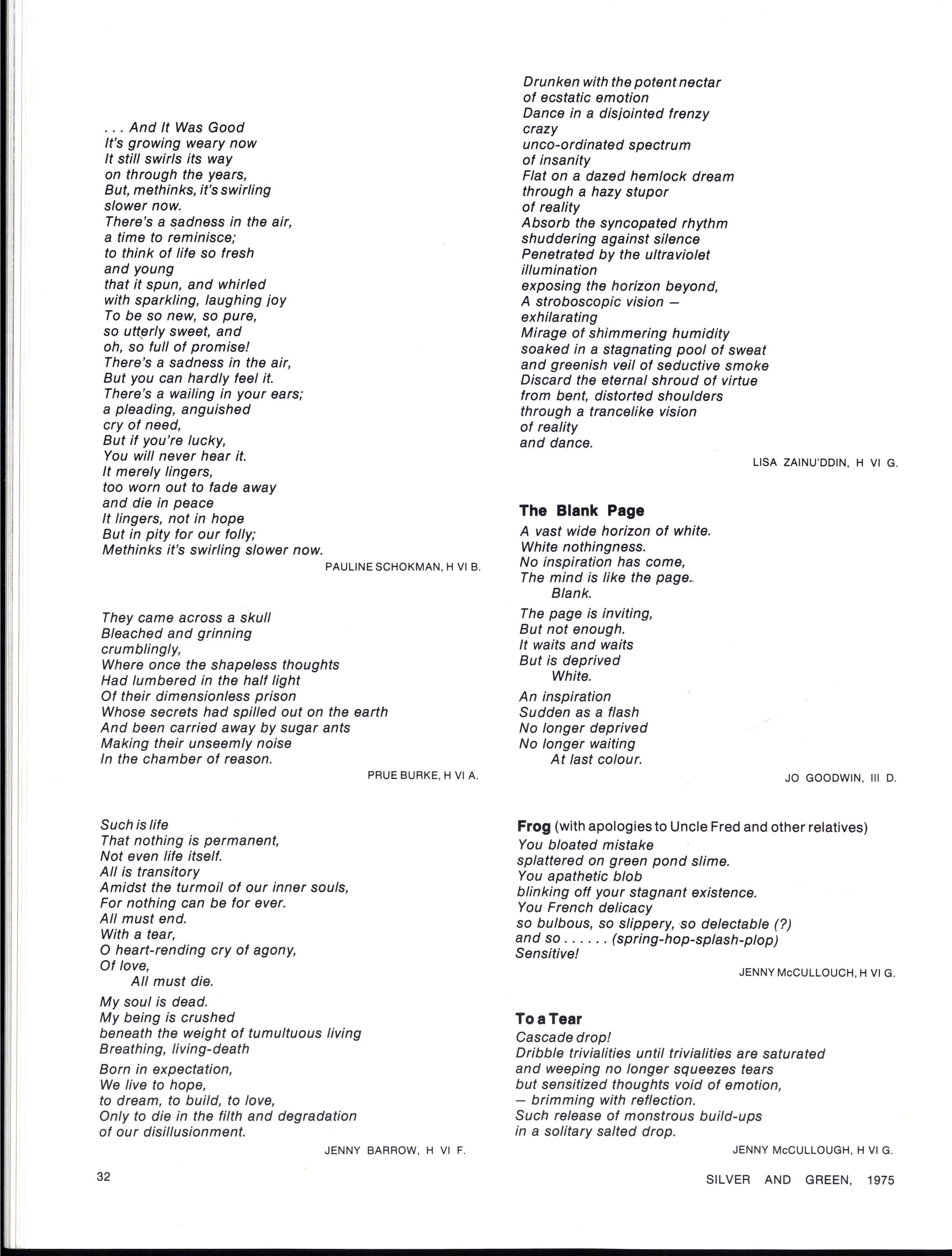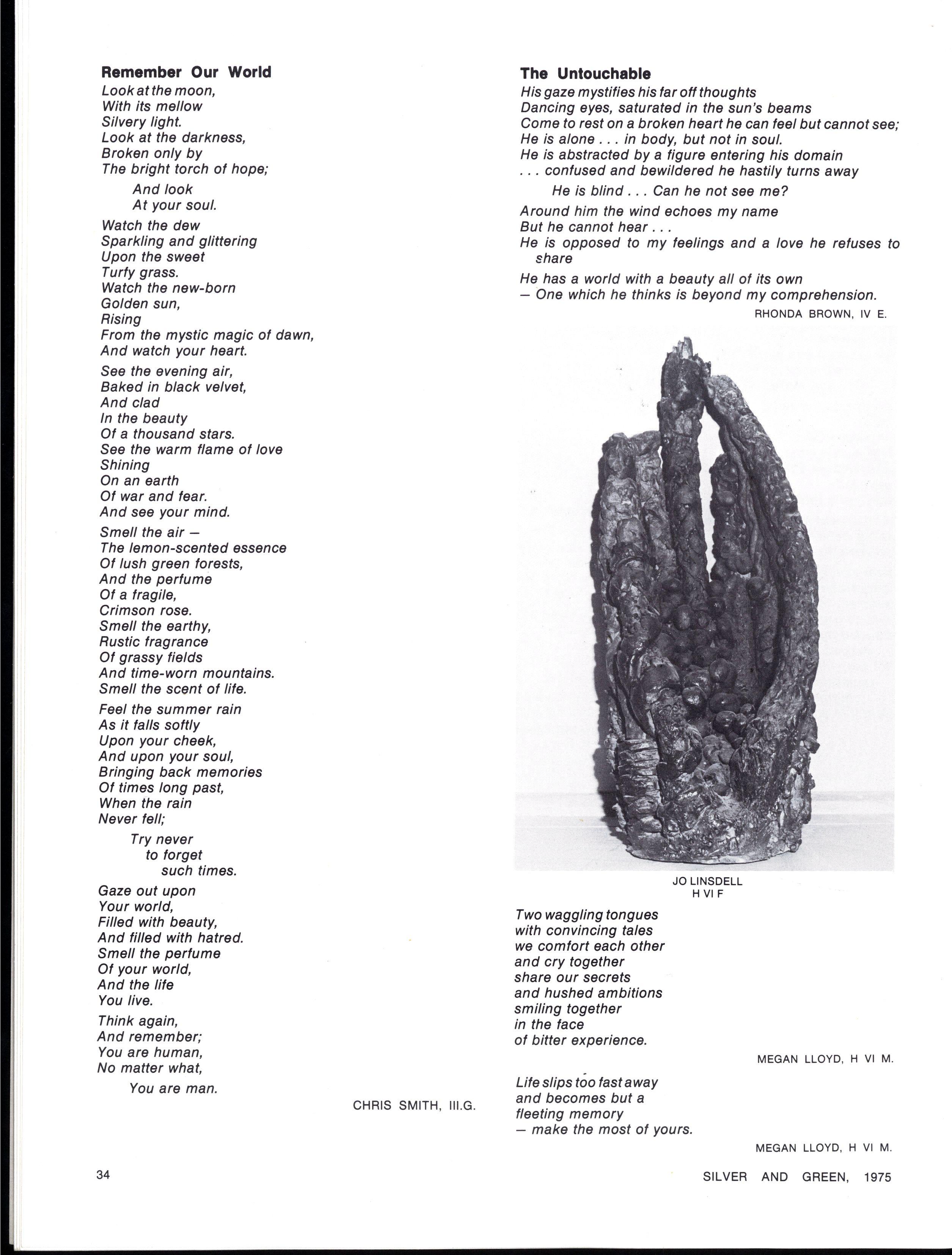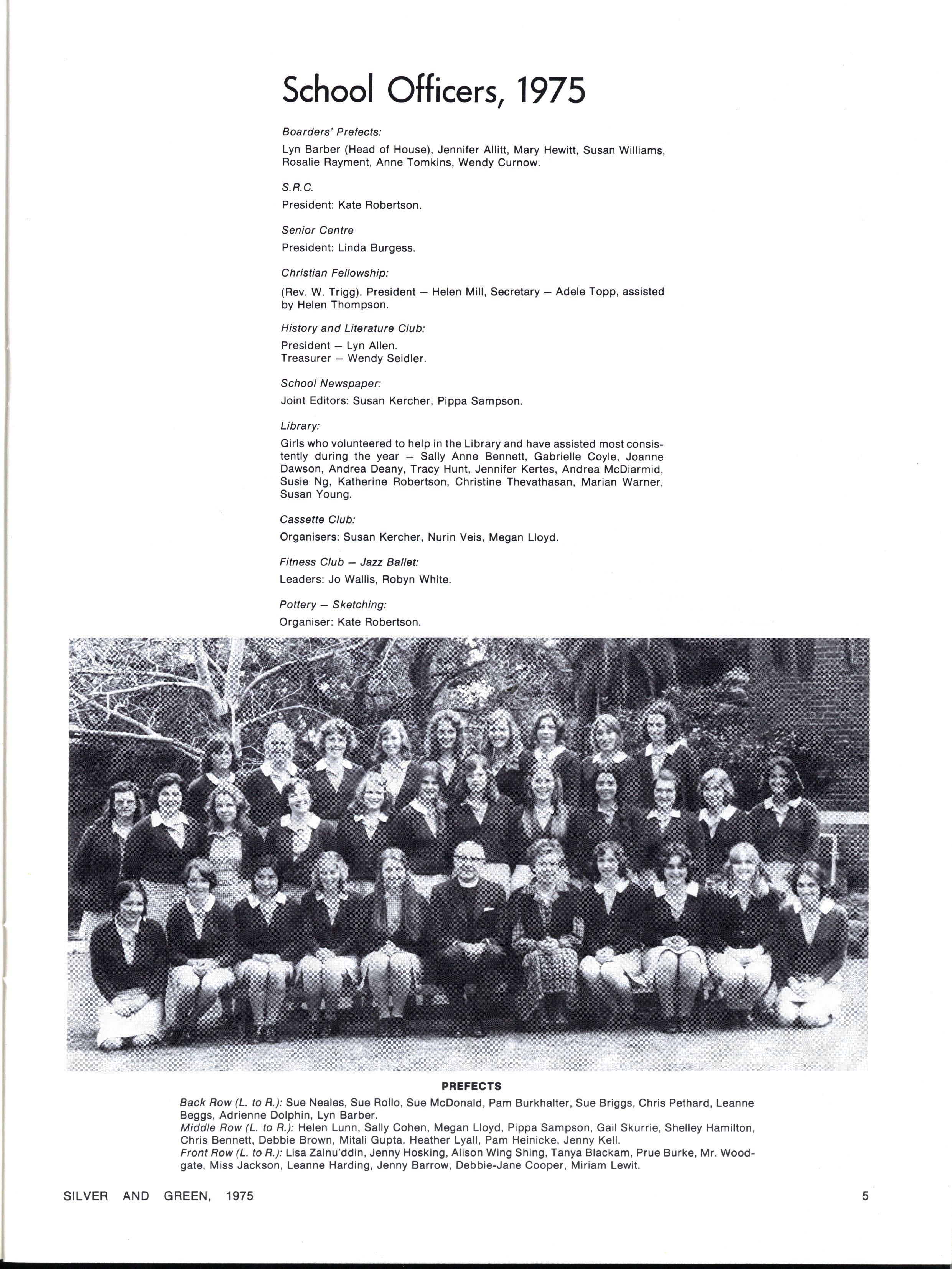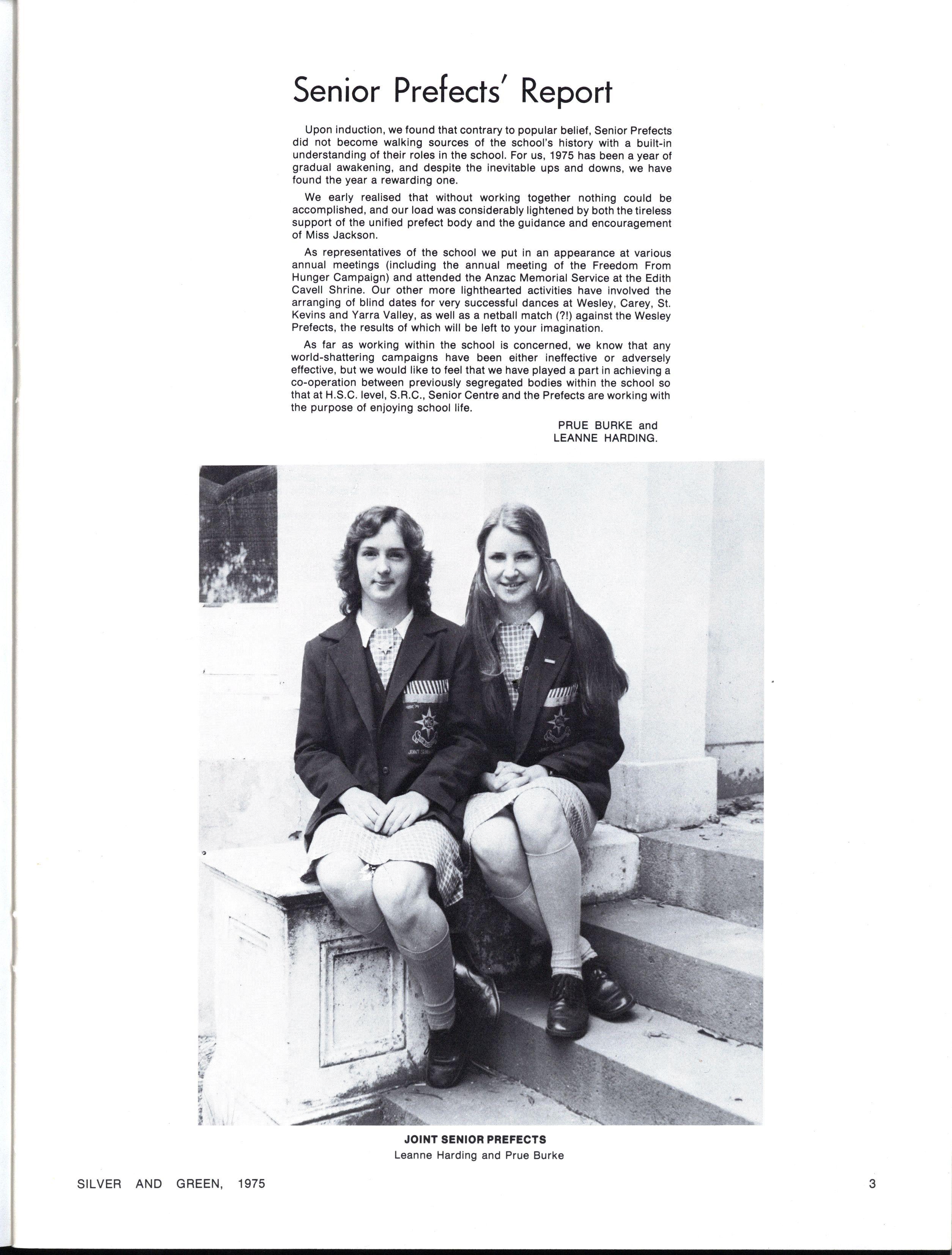 Upon induction, we found that contrary to popular belief, Senior Prefects did not become walking sources of the school's history with a built-in understanding of their roles in the school For us 1975 has been a year of gradual awakening, and despite the inevitable ups and downs, we have found the year a rewarding one
