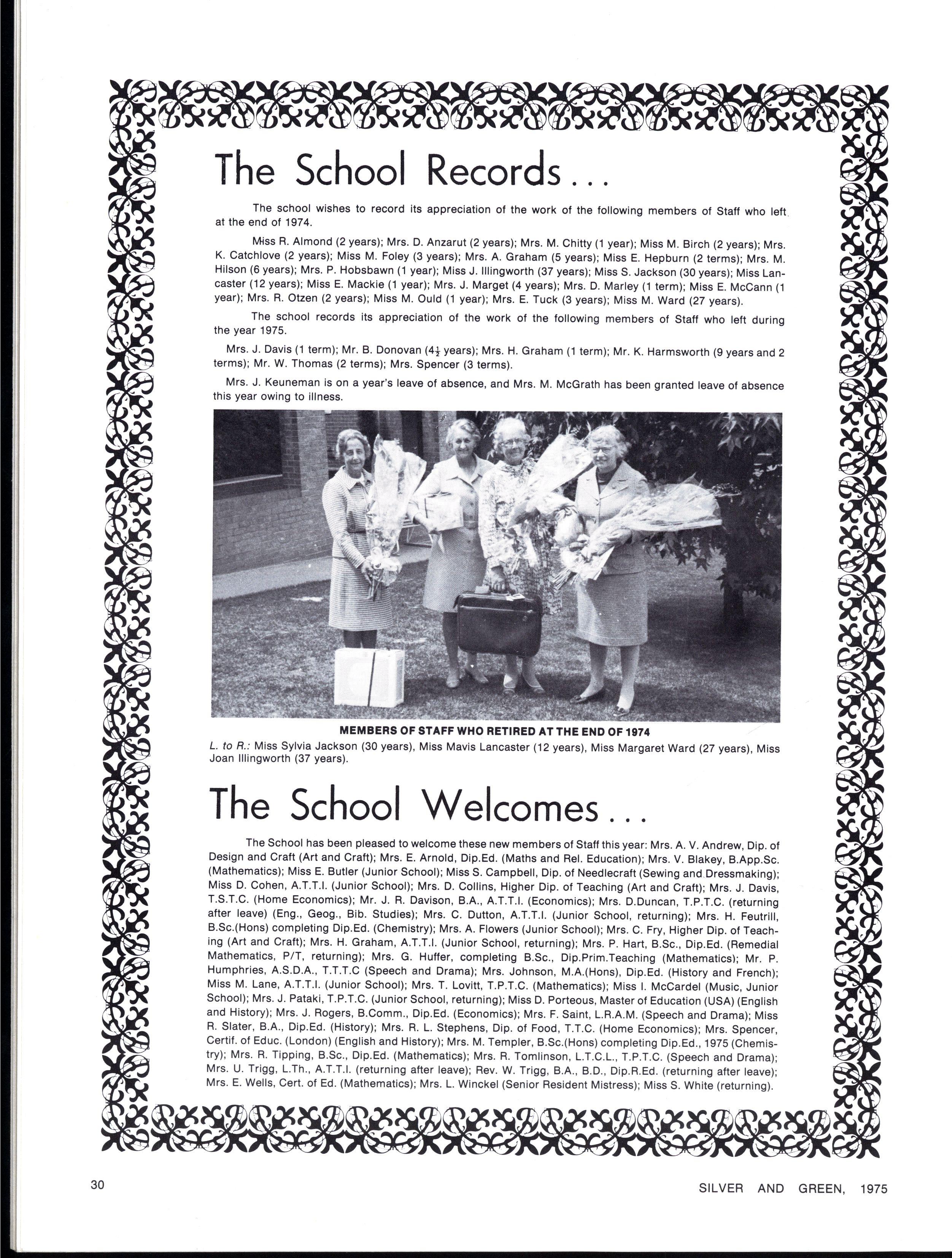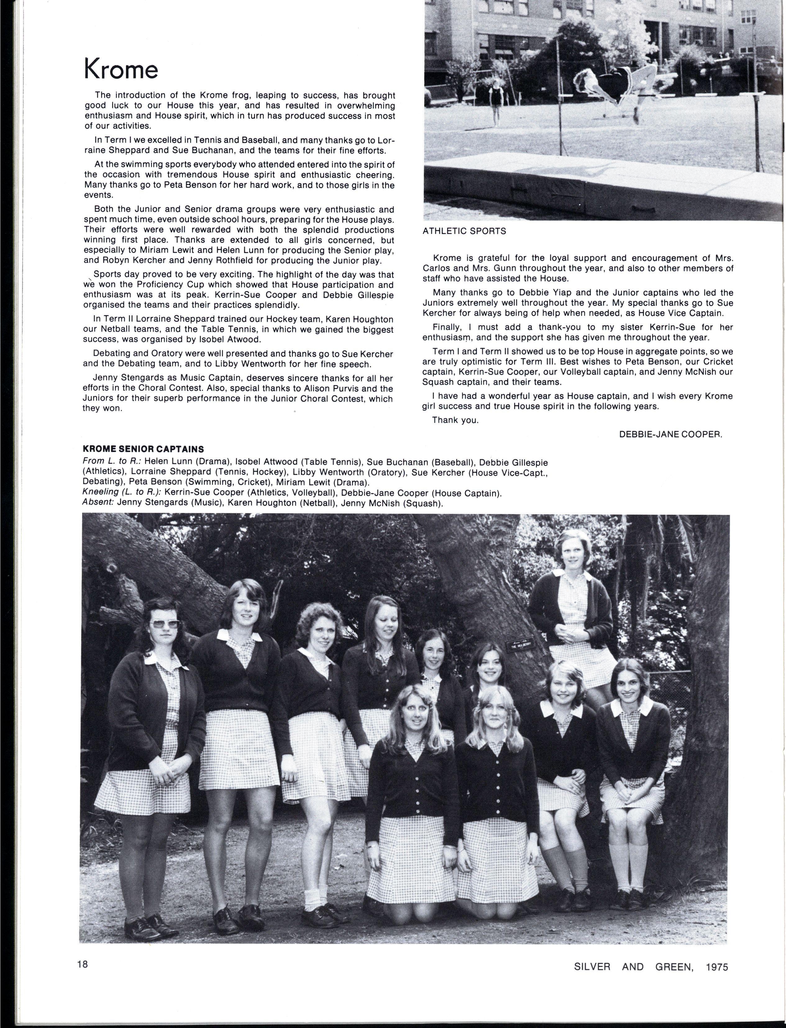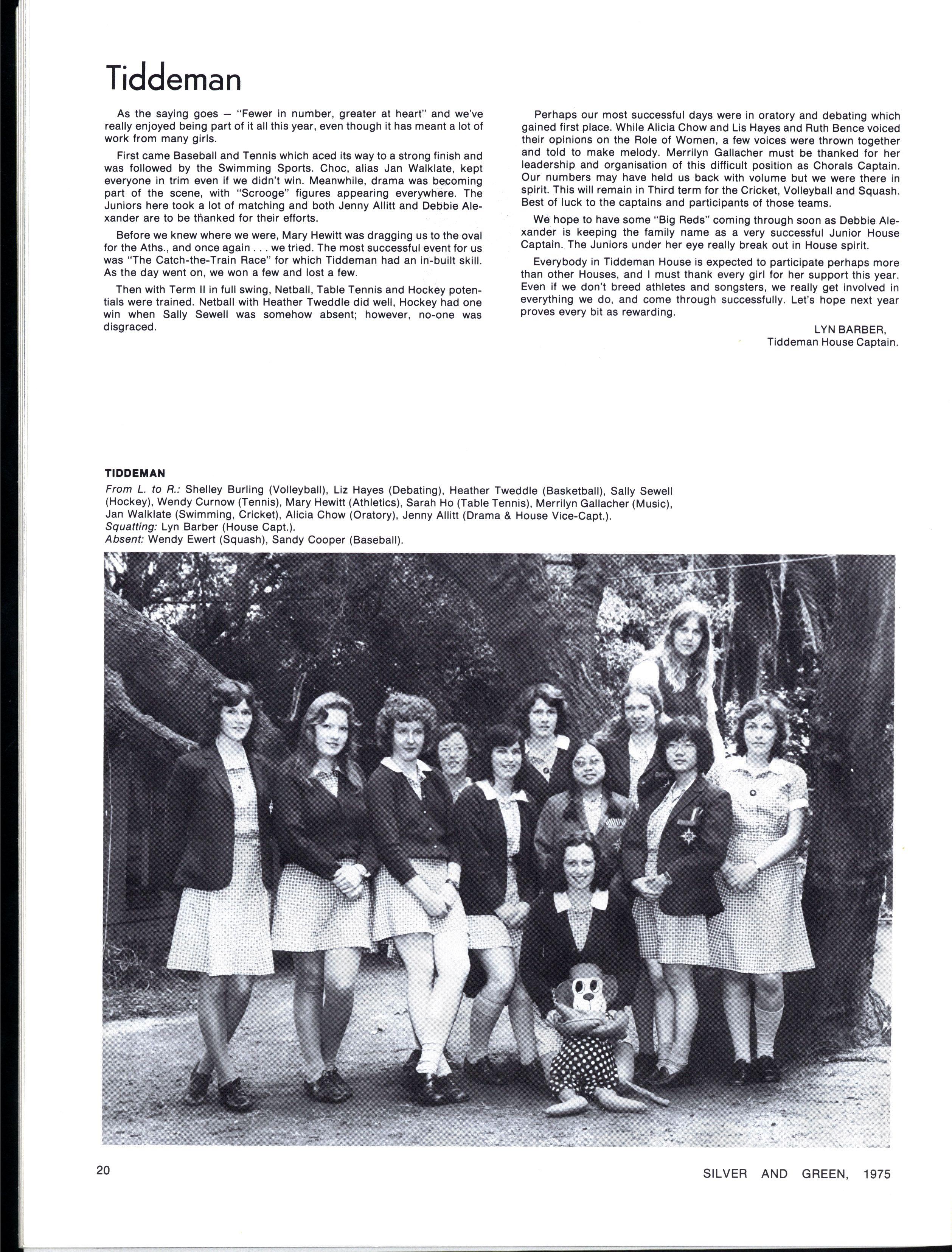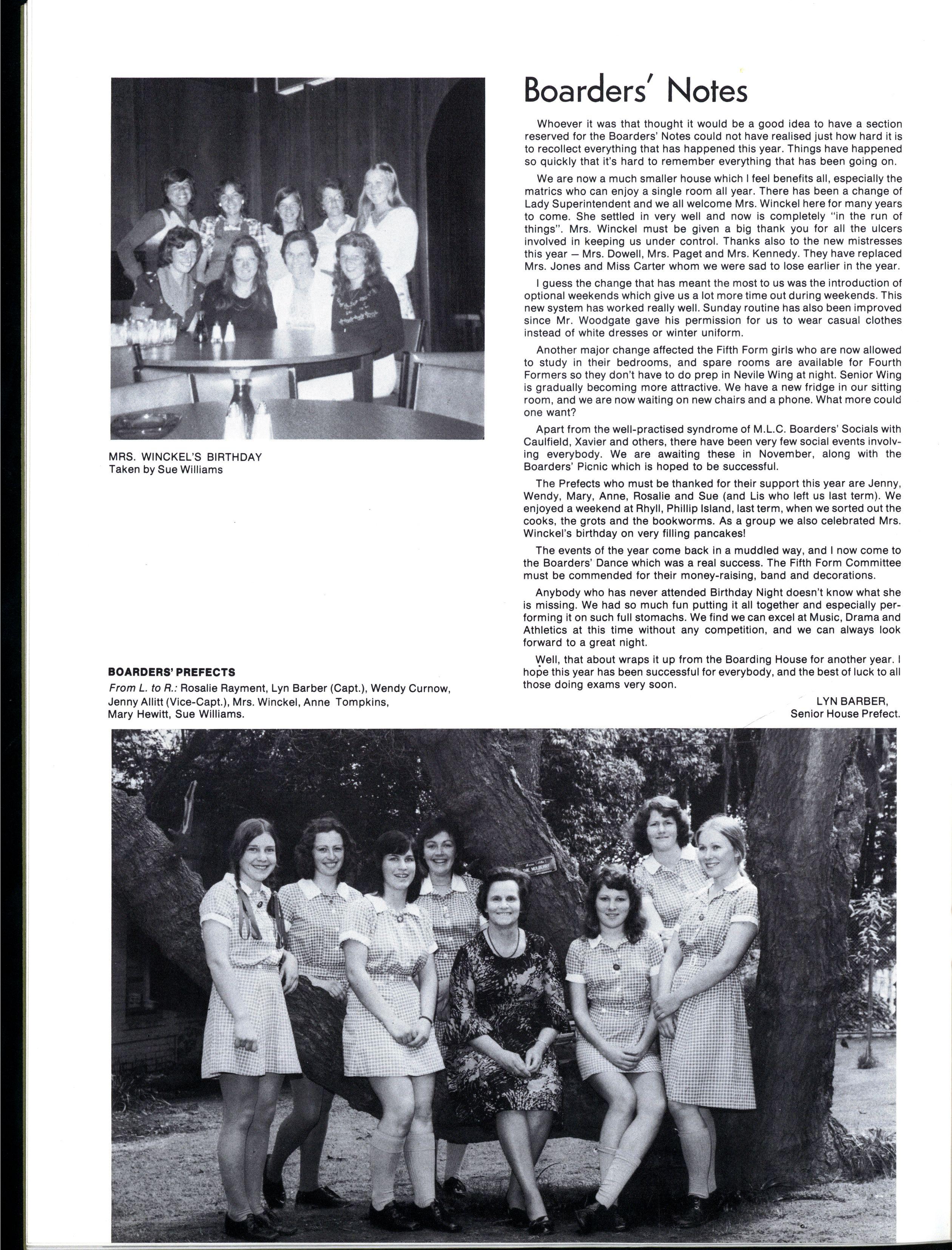 We early realised that without working together nothing could be accomplished, and our load was considerably lightened by both the tireless support of the unified prefect body and the guidance and encouragement of Miss Jackson