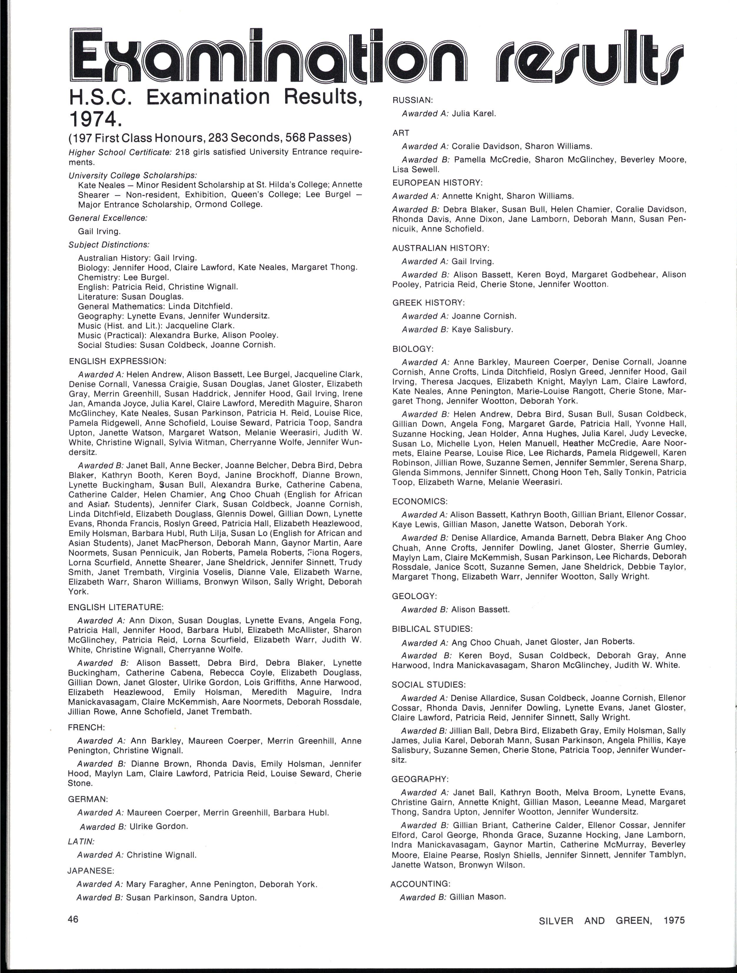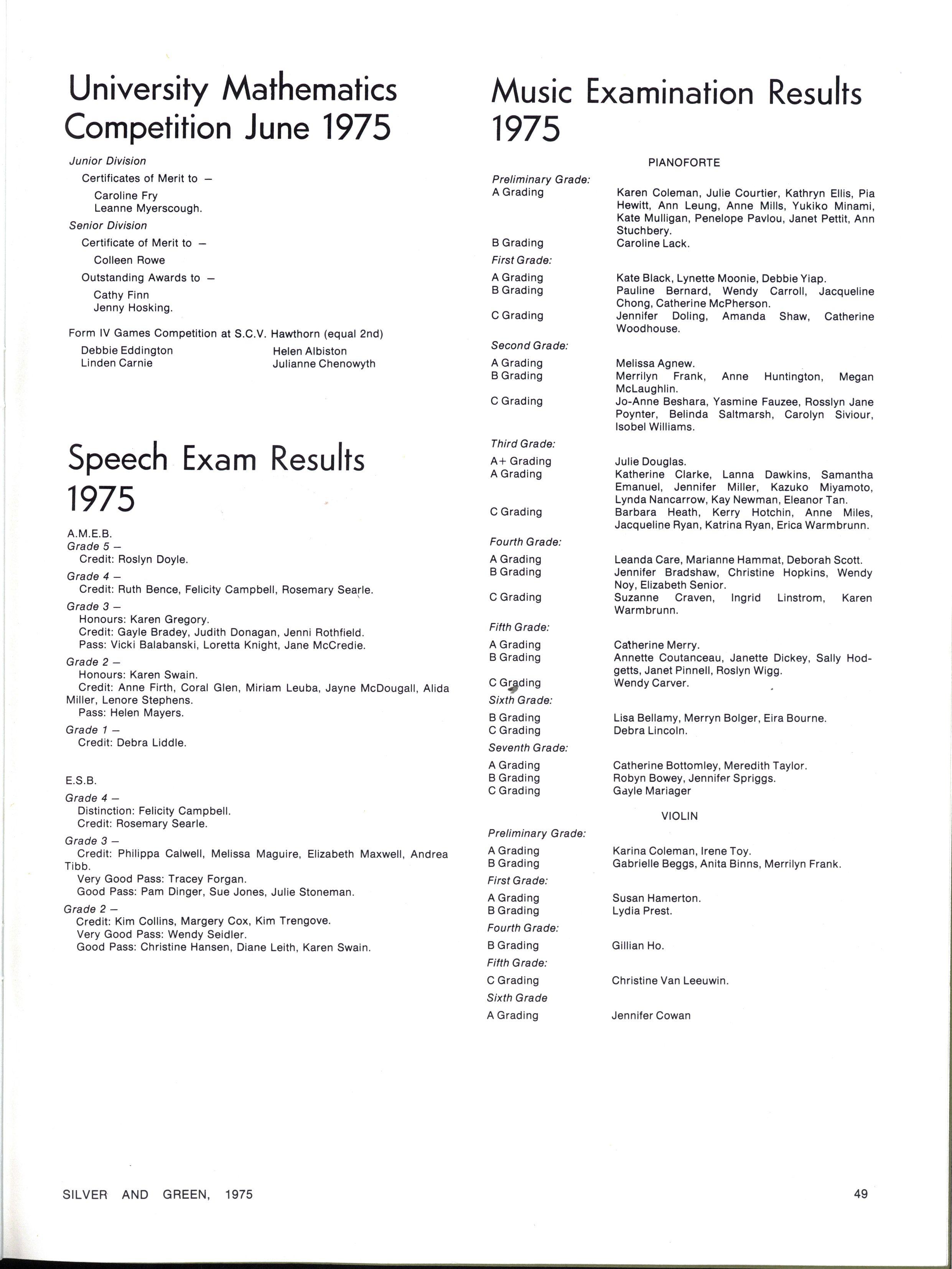 Second Grade: Honours: Pauline Bernard Veda Chang Robyn Clark Katherine Clarke