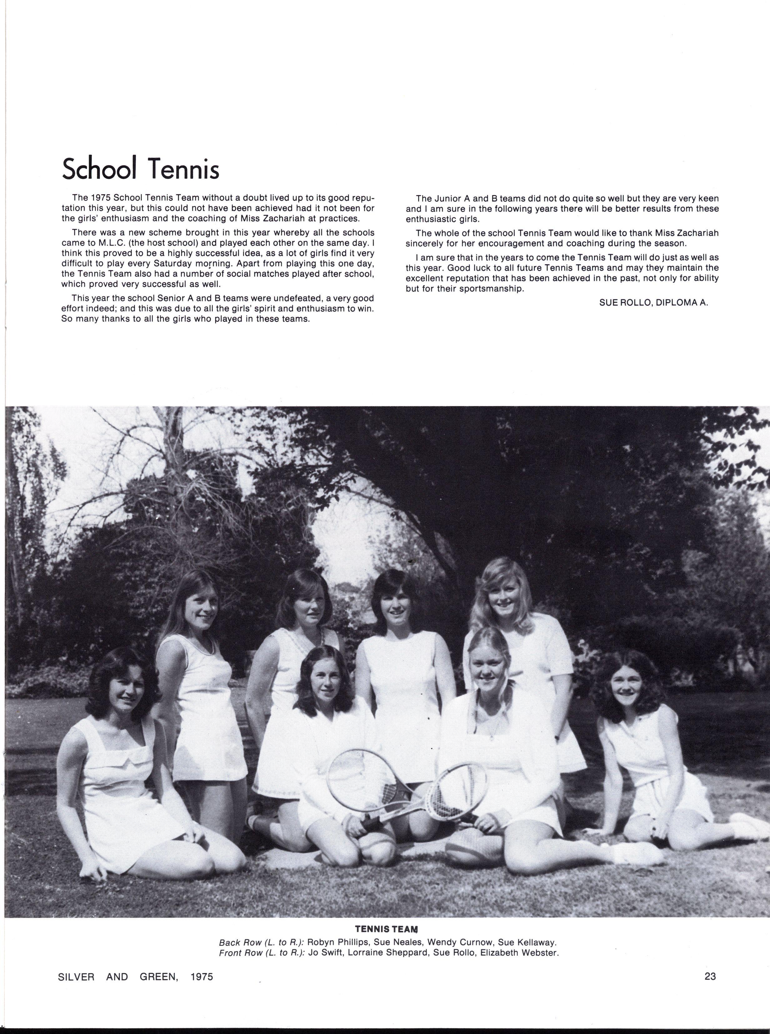 Girls who volunteered to help in the Library and have assisted most consistently during the year - Sally Anne Bennett, Gabrielle Coyle, Joanne Dawson, Andrea Deany, Tracy Hunt, Jennifer Kertes, Andrea McDiarmid, Susie Ng, Katherine Robertson, Christine Thevathasan, Marian Warner, Susan Young