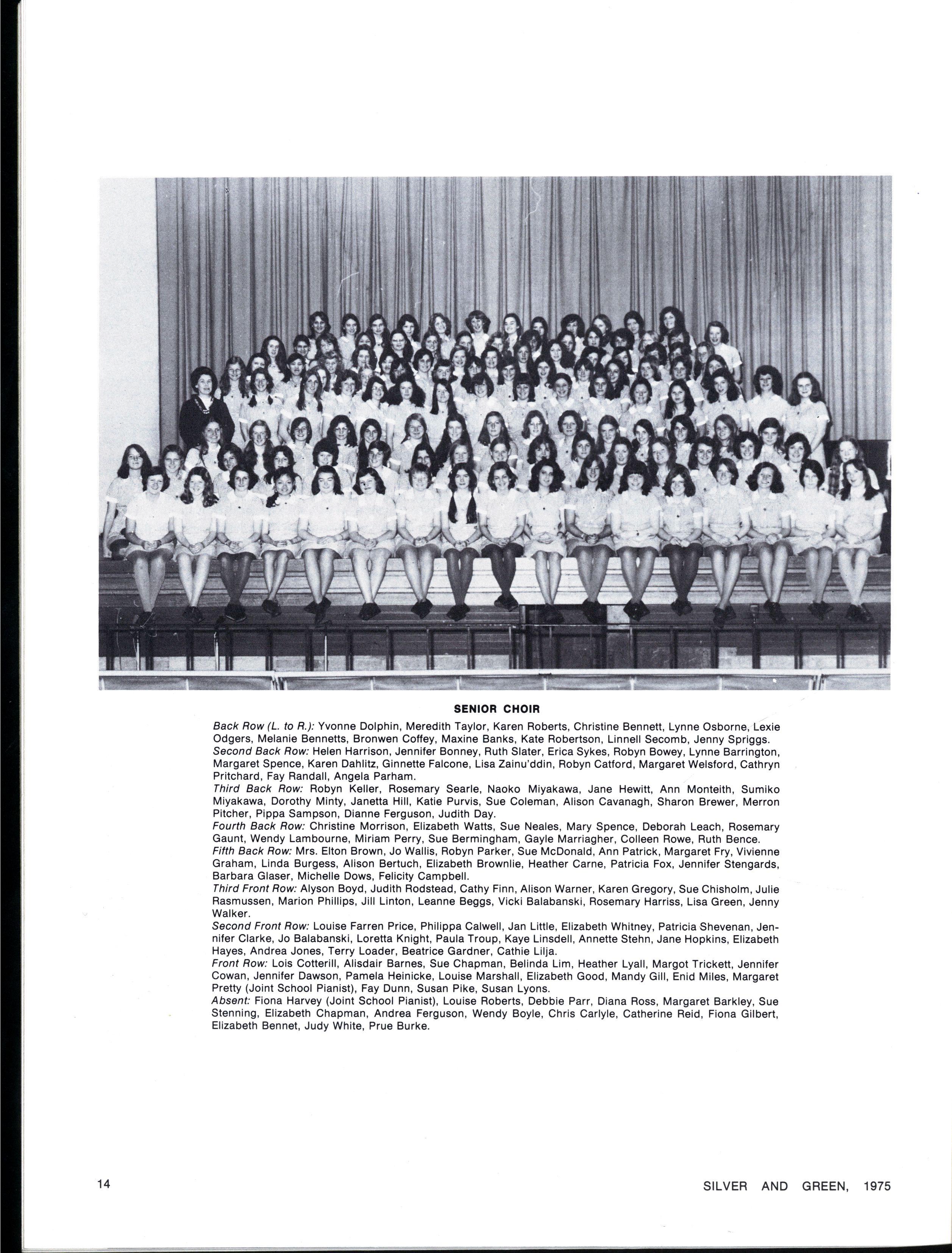 Where else could one do both Physics and Music History and Literature, or Geology and Russian, together? And surely there is no-one who can't find a niche for herself, be it in the Jazz ballet club, debating team, or broom-riding relay How many schools offer two orchestras, four full size choirs and madrigal groups, annual Senior and Middle School drama festivals, as well as a full range of sporting activities? And this year new clubs, such as the fitness, drawing, pottery and cassette clubs, have had their birth through the S.R.C.