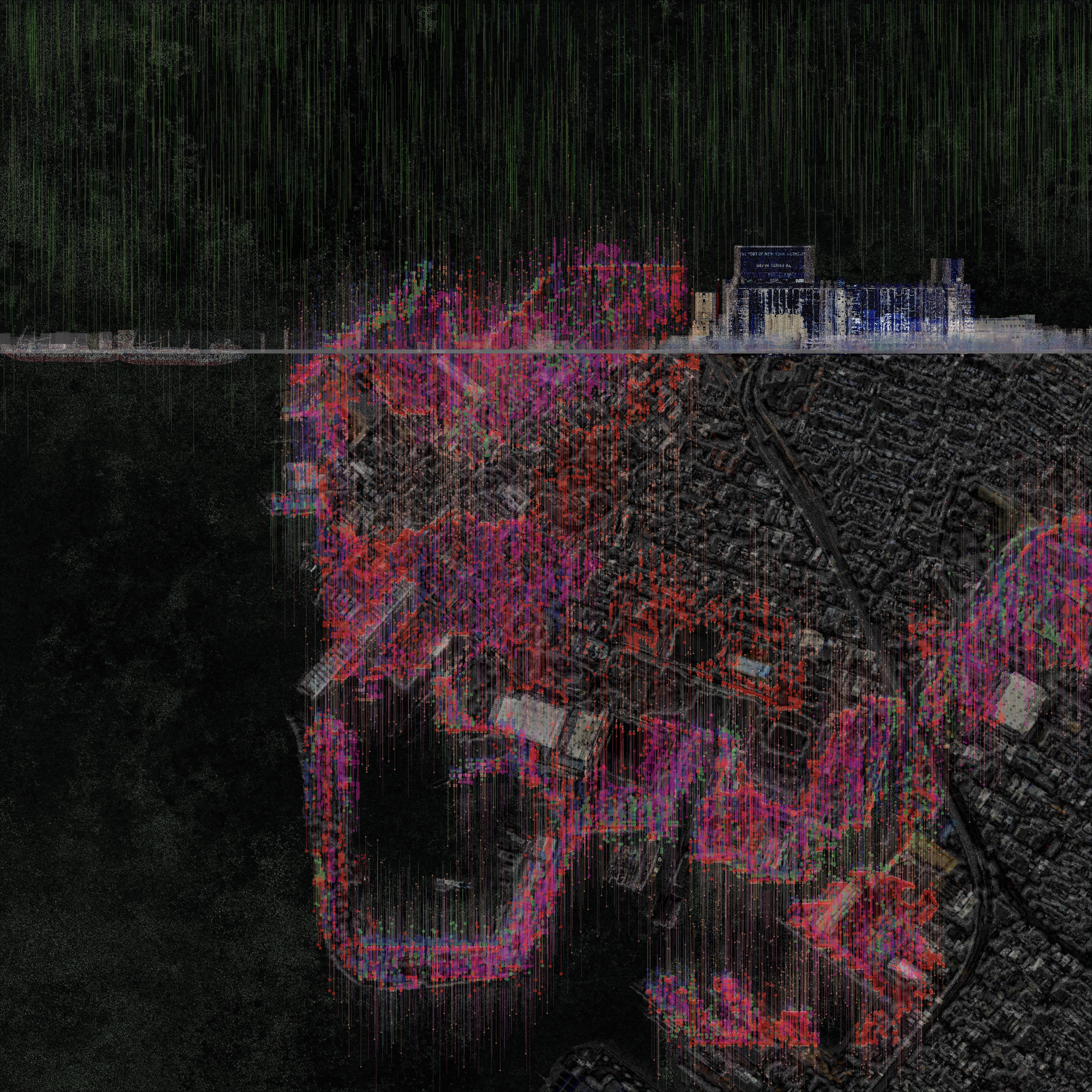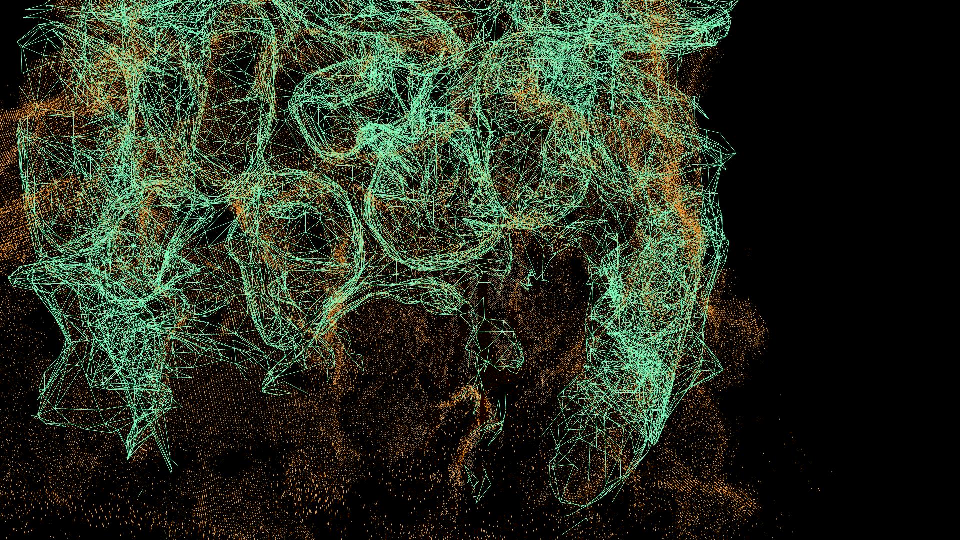 Point field generated from how heat generated from the data center to farming area. Thicker pipes are used to pump