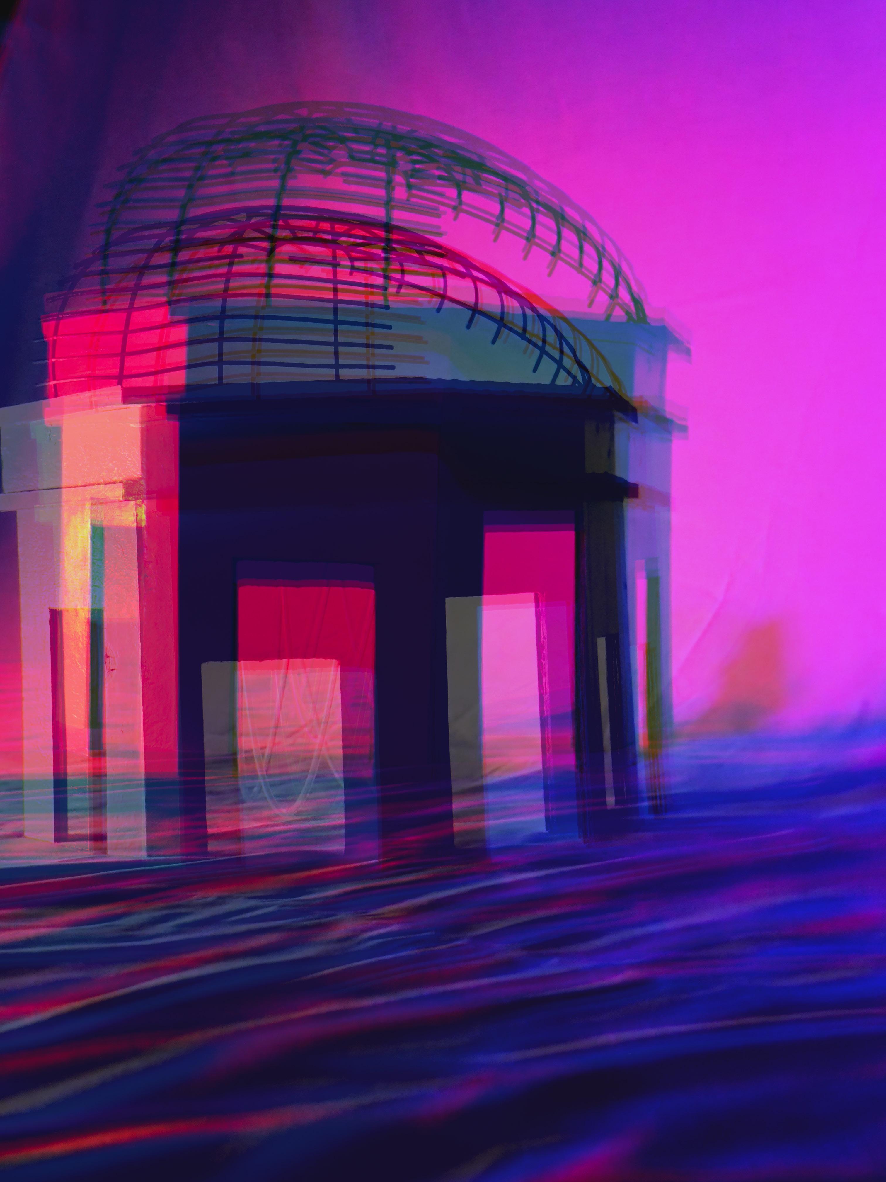 The project explores how emotions can be translated into architectural form. The first four images use film as a medium through which emotionally charged objects and spaces are extracted, manipulated, and distorted. Elements associated with the main characters in La La Land are reinterpreted through cinematic transformation, drawing in part on the spatial distortions of Inception. The bottom image combines these conditions into a scene inspired by Tokyo Drifter by Seijun Suzuki, using light and atmosphere to represent emotional emptiness, ambiguity, and instability. These ideas are later extended through physical models under related lighting conditions.