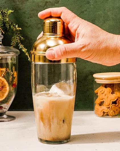 • In a cocktail shaker filled with ice, combine ice cream, Baileys, vodka, Kahlúa, and 1/2 shot gingerbread syrup. Cover and vigorously shake until outside of shaker is very frosty, about 20 seconds. Strain into prepared glass. Garnish with a generous dollop of whipped cream and sprinkle with cinnamon. Gently place a gingerbread person/Tiny Teddy in cocktail.