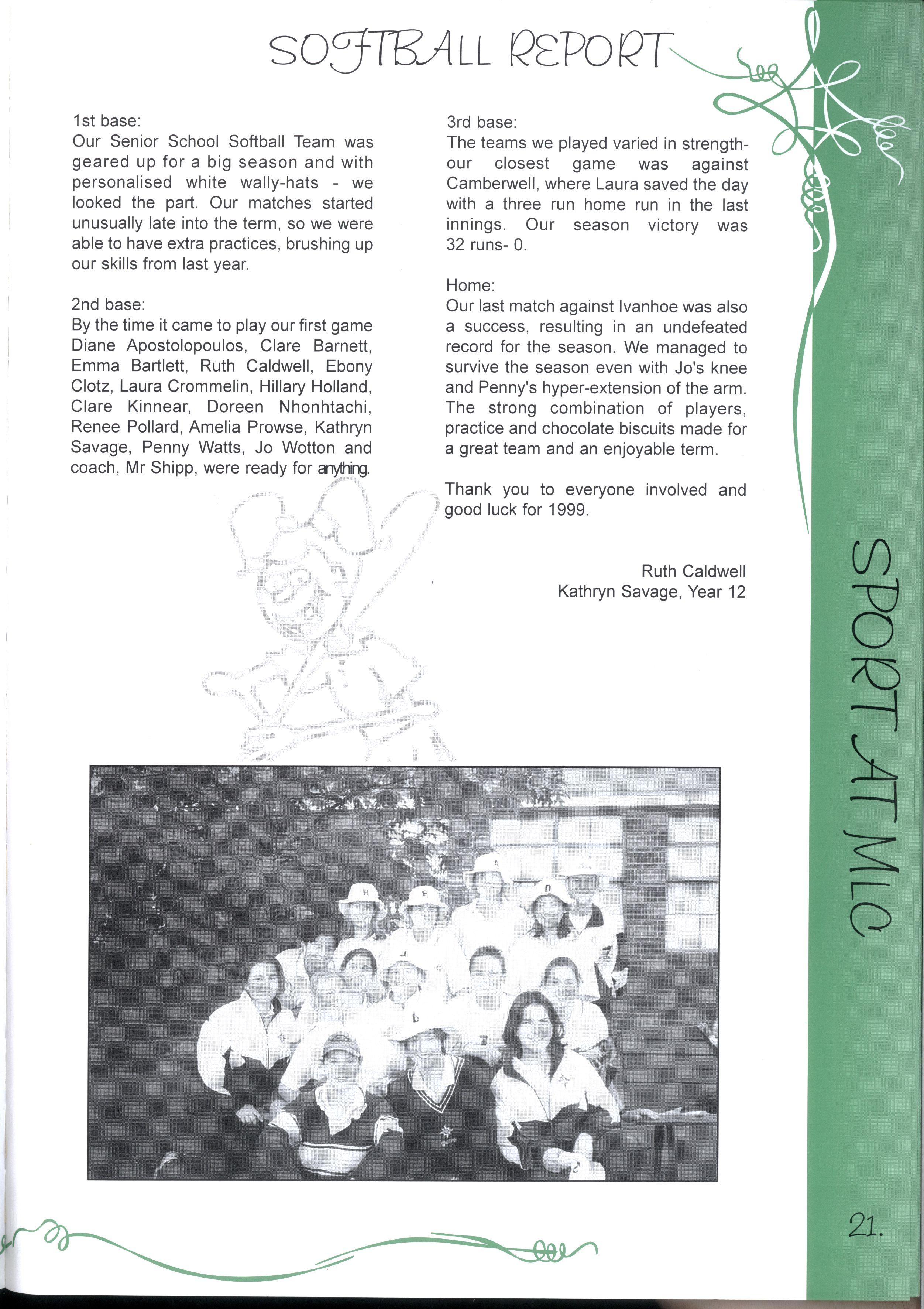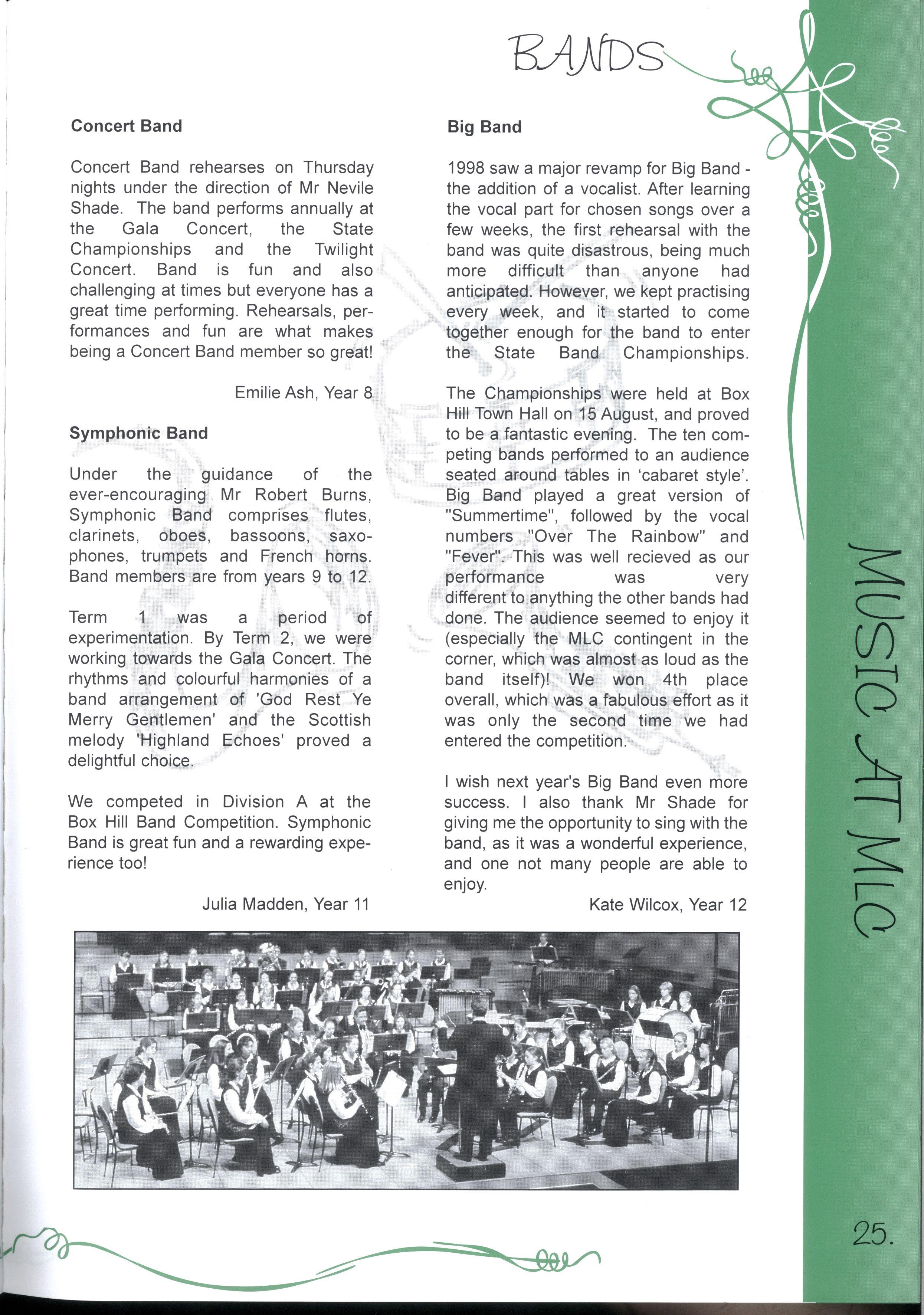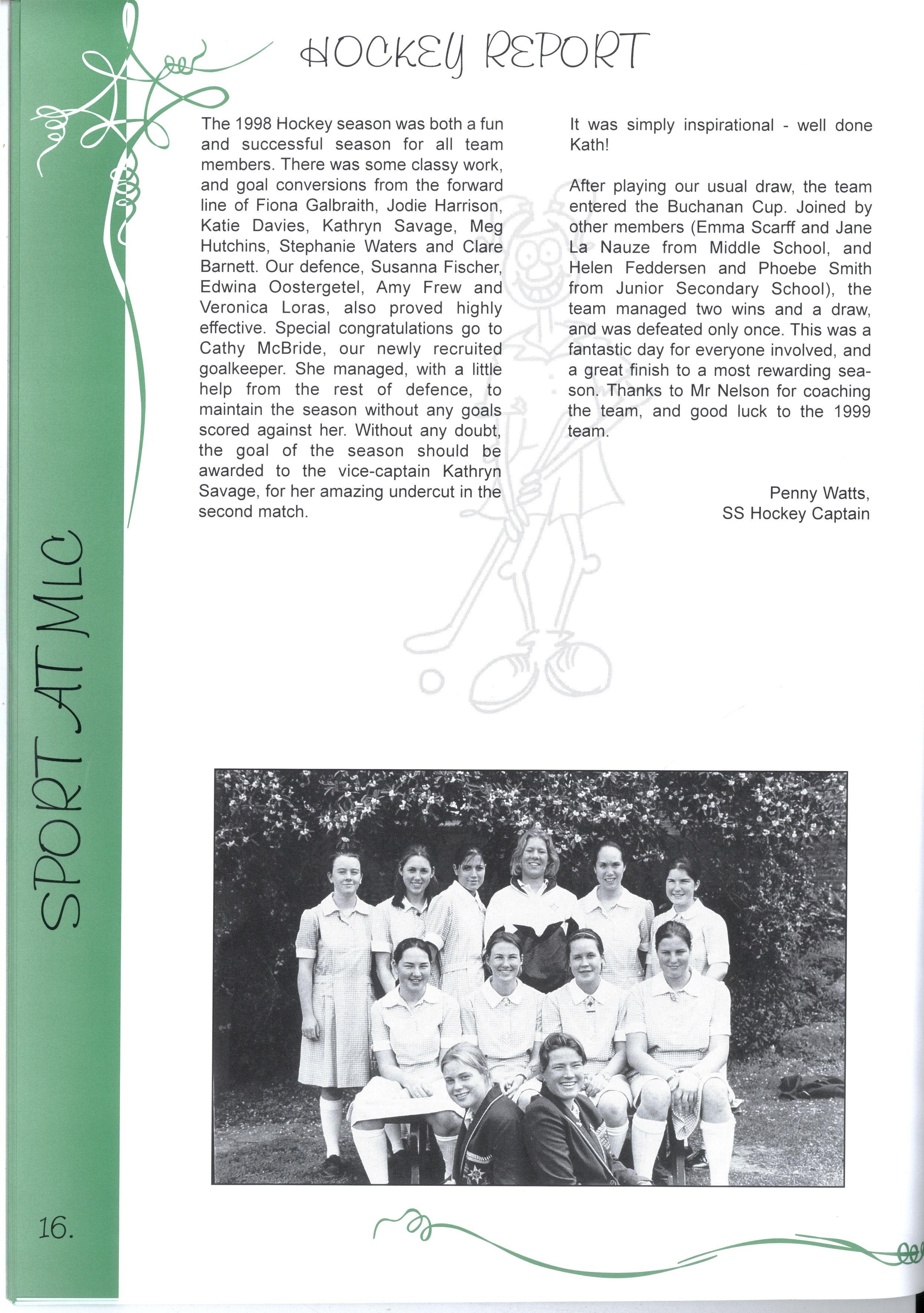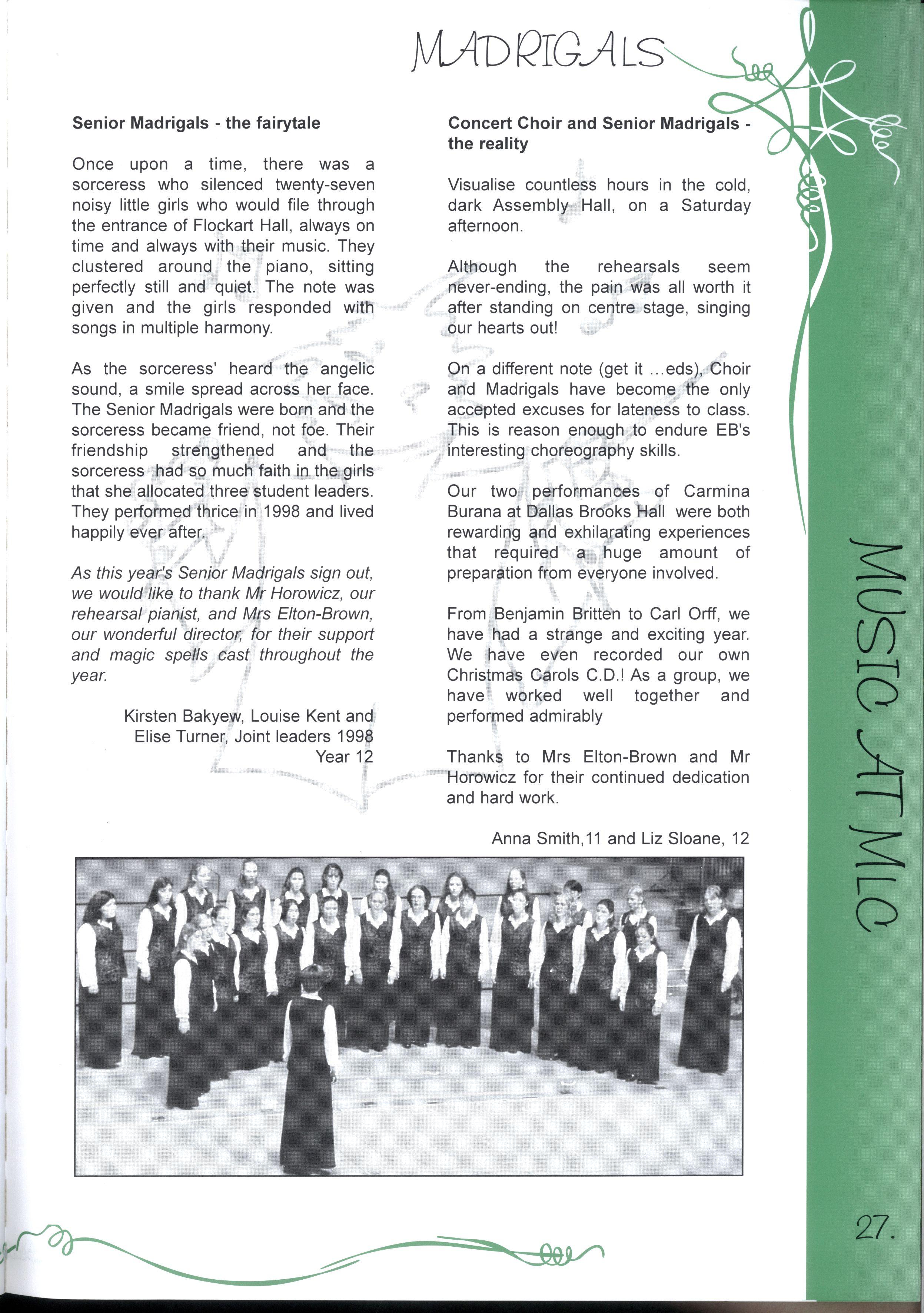 The Year 12's of 1998 are now the 'senior citizens' of the MLC community For many years, MLC has been their home and has provided support and friendship Whilst it is challenging to move to new and unfamiliar places, we know that we have been equipped with the skills to do our best, and face any challenges that we encounter in life Thank you to our year level and MLC for the opportunities we have had to discover ourselves, and all our best wishes for the future